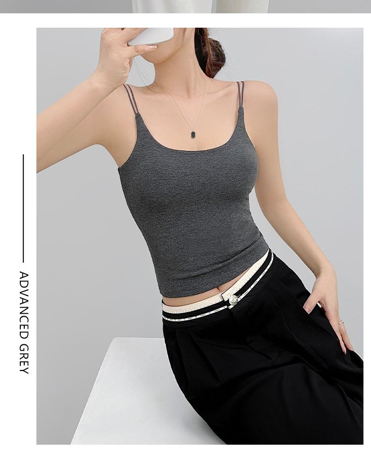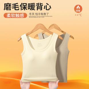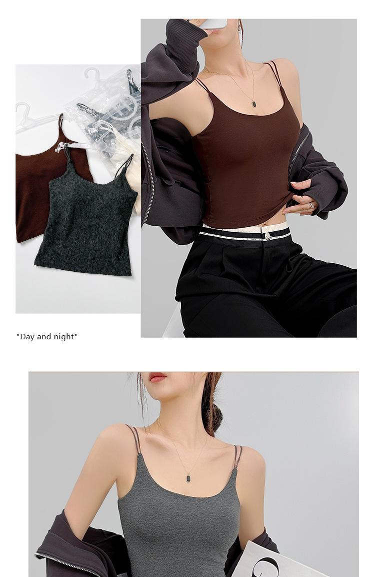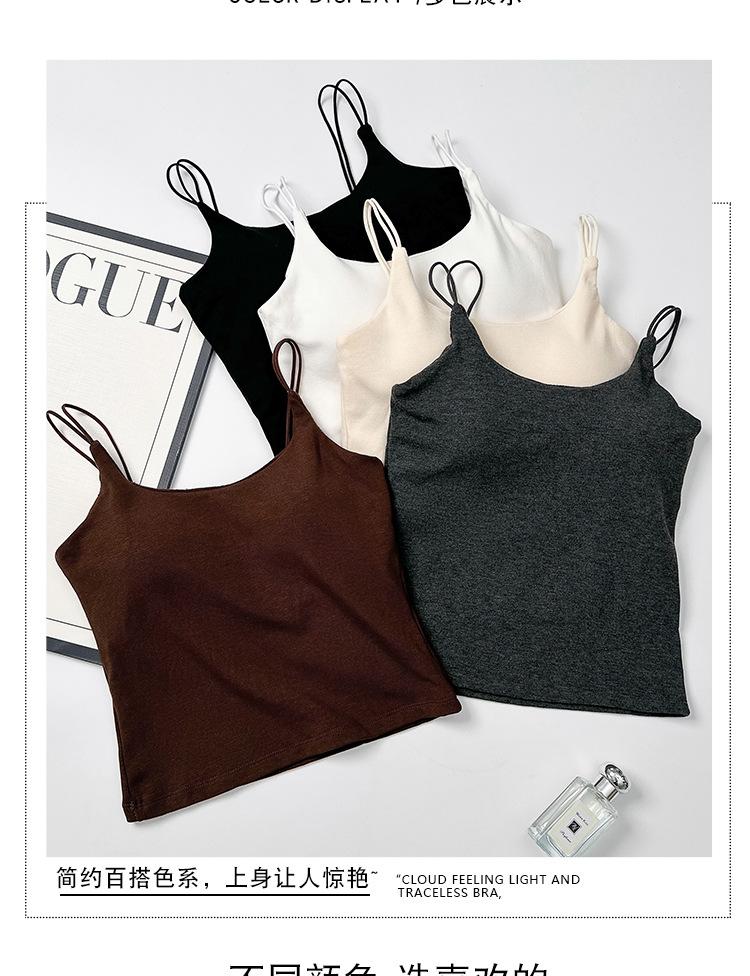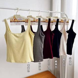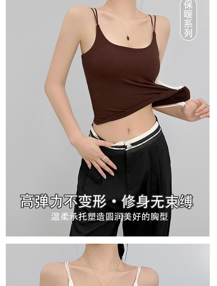 Nueva Camiseta Base de Felpa Lijada Interior Ajustada Adelgazante Chaleco Sling con Almohadilla en el Pecho Otoño e Invierno Chaleco Cálido para Mujer