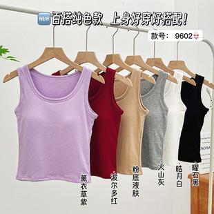 Nuevo Chaleco Térmico de Cuello Cuadrado Pequeño con Copa Integrada para Niña, Cálido y Cómodo, Chaleco Básico de Color Sólido con Temperamento