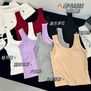 Nuevo Otoño e Invierno Copa de Látex Cepillado Forrado de Vellón Una Pieza Almohadilla de Pecho Fija Color Base Piel Chaleco Cálido Capa Base