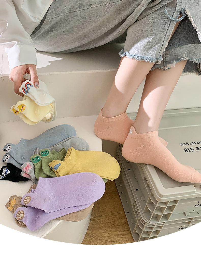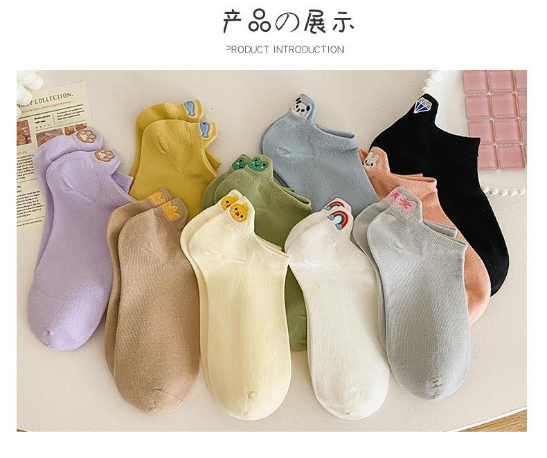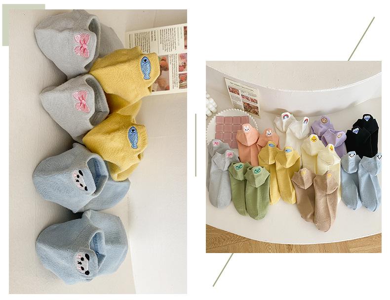 Calcetines Cortos para Niños Primavera y Verano Delgados Ins Modernos Estilo Japonés Bordado de Dibujos Animados Calcetines de Barco Lindos de Lado Bajo Boca Baja Calcetines Invisibles