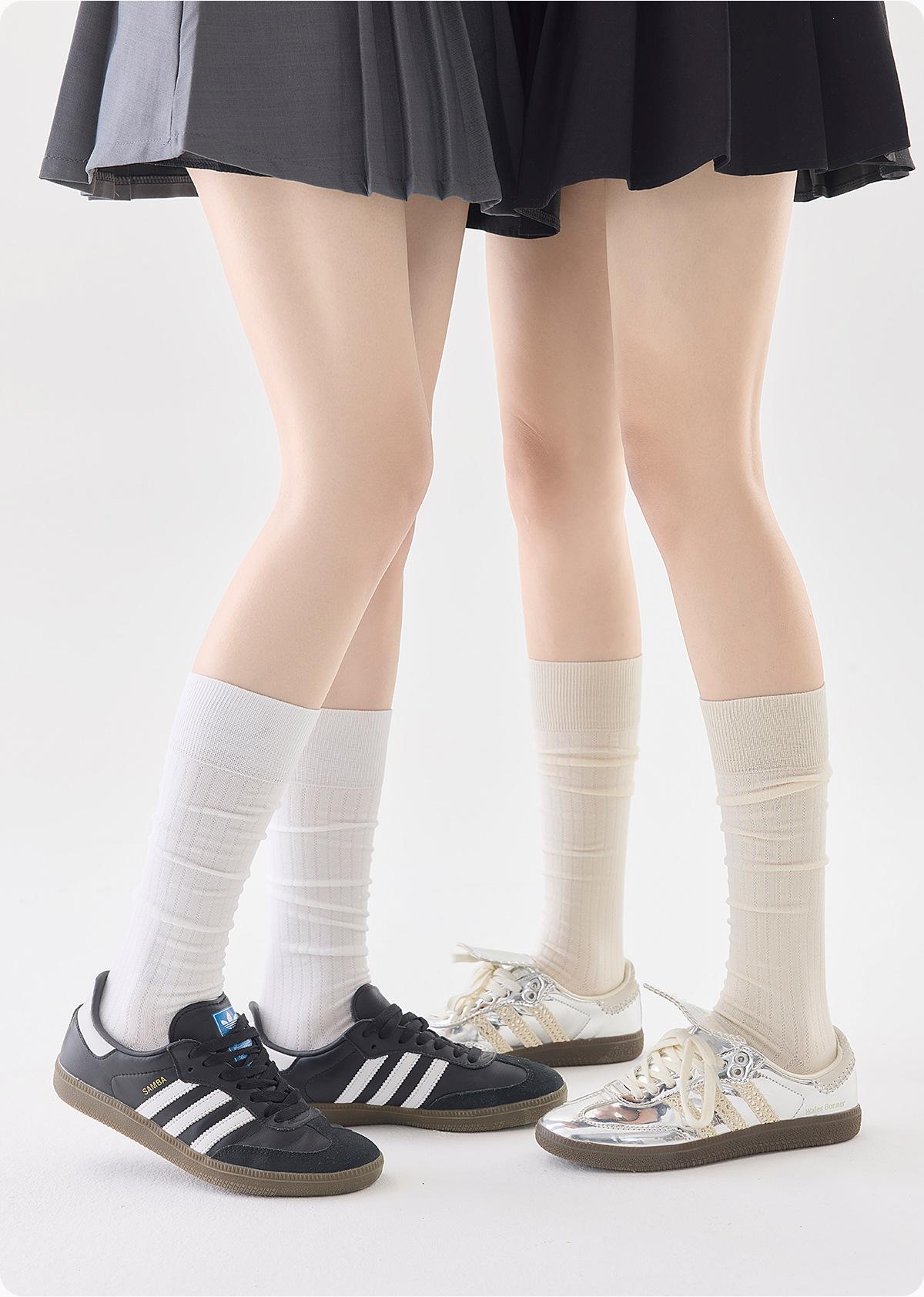 Calcetines de pantorrilla de algodón puro para mujer, primavera y verano, malla fina blanca, calcetines jk desodorantes, absorbentes de sudor, antideslizantes, de felpa para mujer