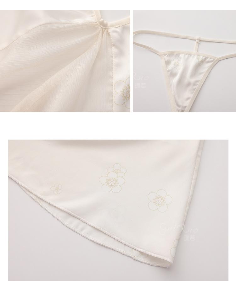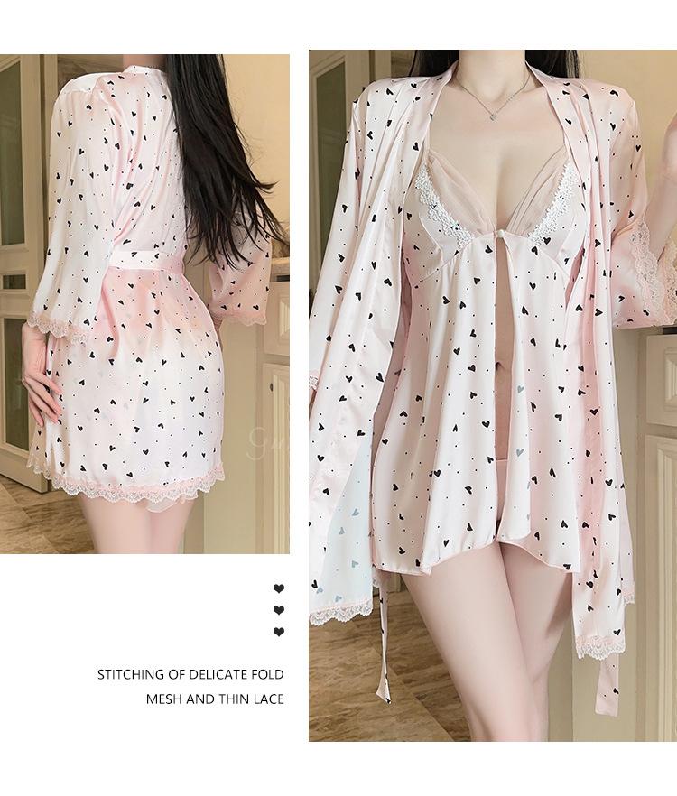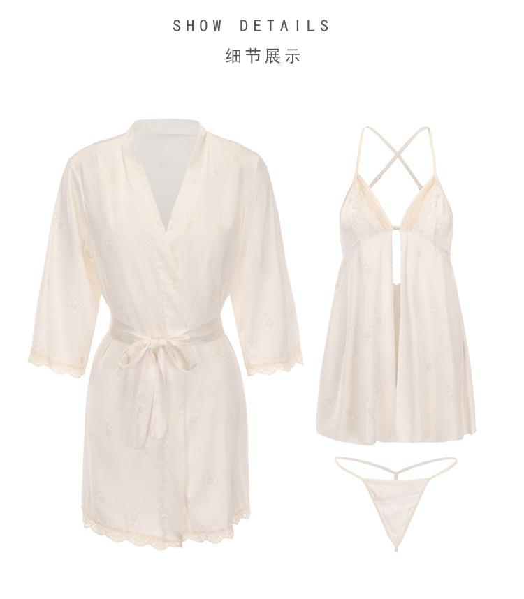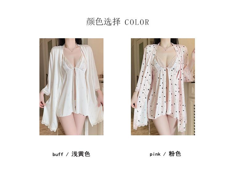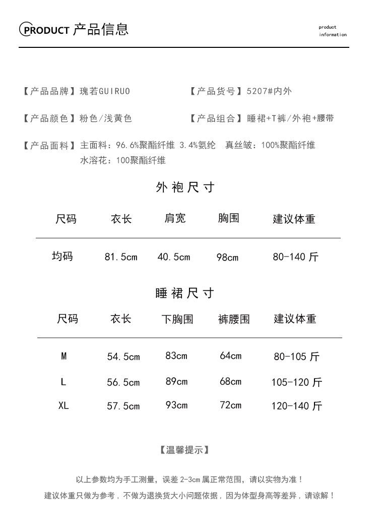 Pink (nightgown + t pants), Pink (robe + belt), Light yellow (nightgown + t pants), Light yellow (robe + belt)
