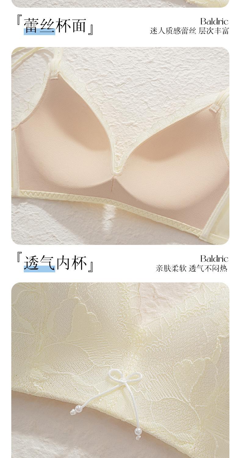 Conjunto de Brasier de Encaje de Soporte Suave Inalámbrico, Cómodo, Transpirable, Sexy y Hermoso Brasier Push-Up de Espalda