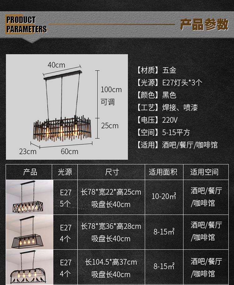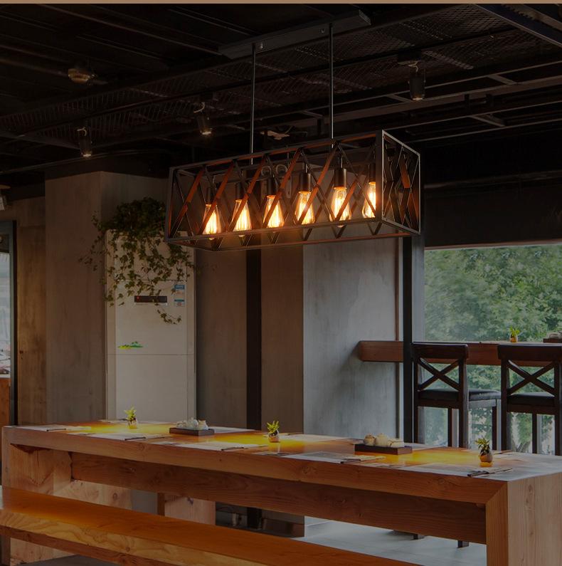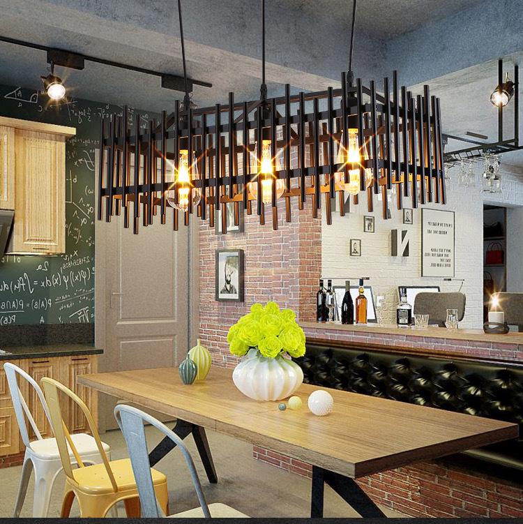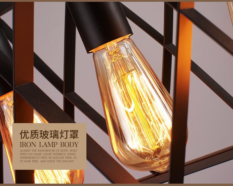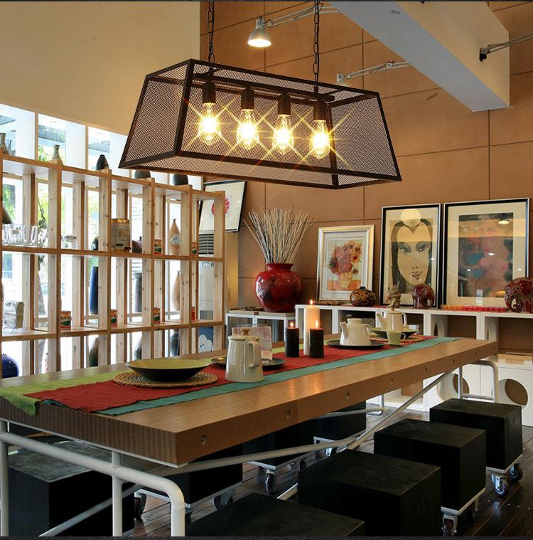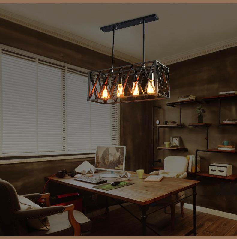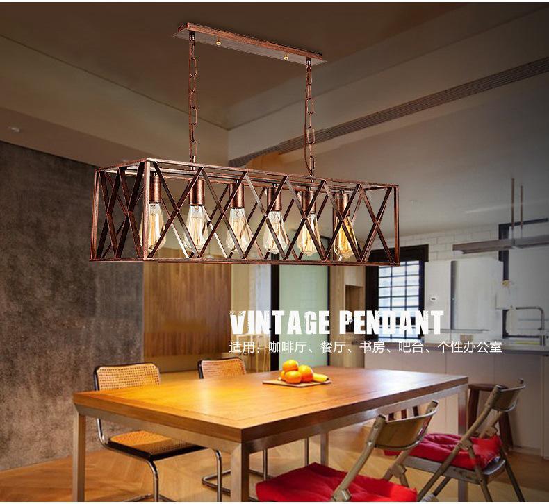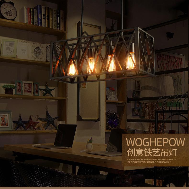 Lámparas de Estilo Industrial Retro Americano de Hierro para Restaurante Bar Lámpara de Araña Rectangular Creativa Personalizada para Tienda Cafetería Internet