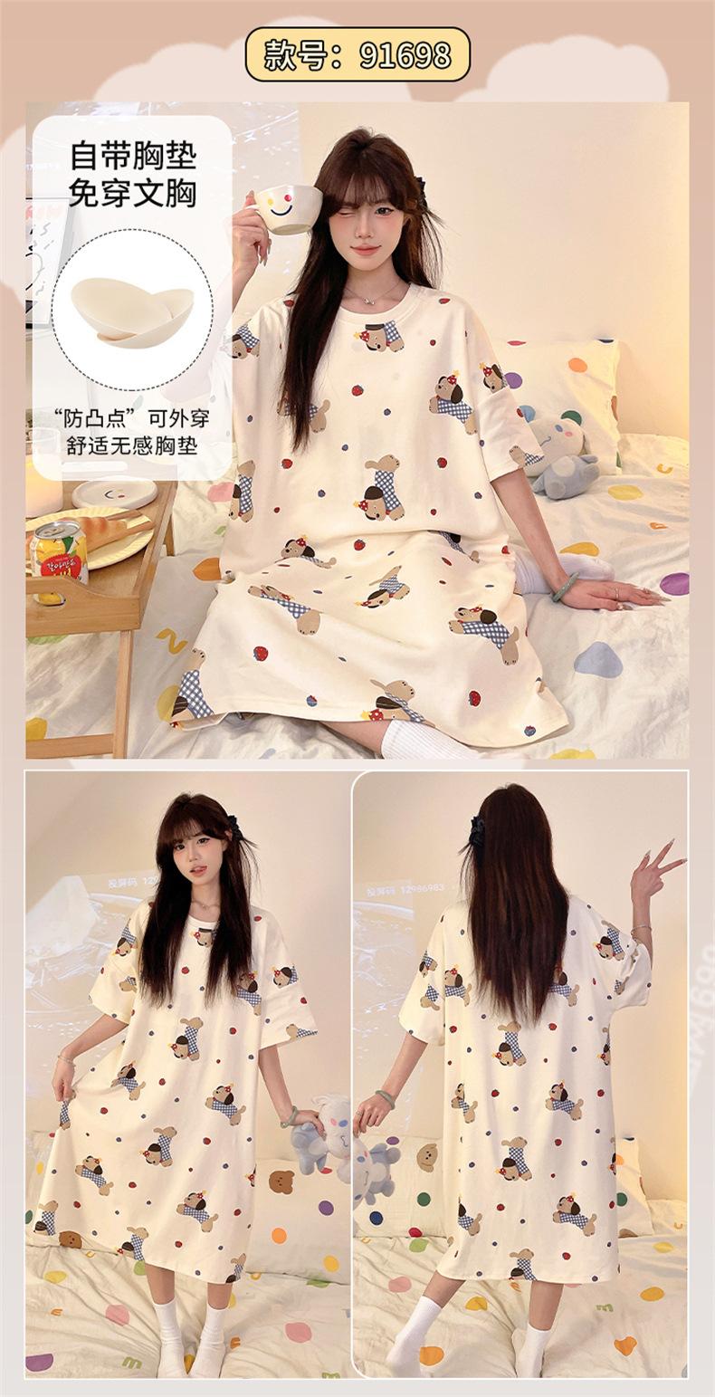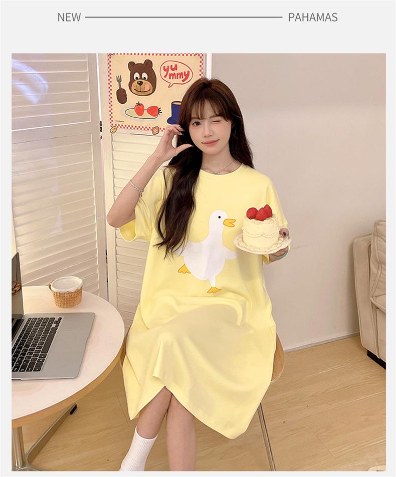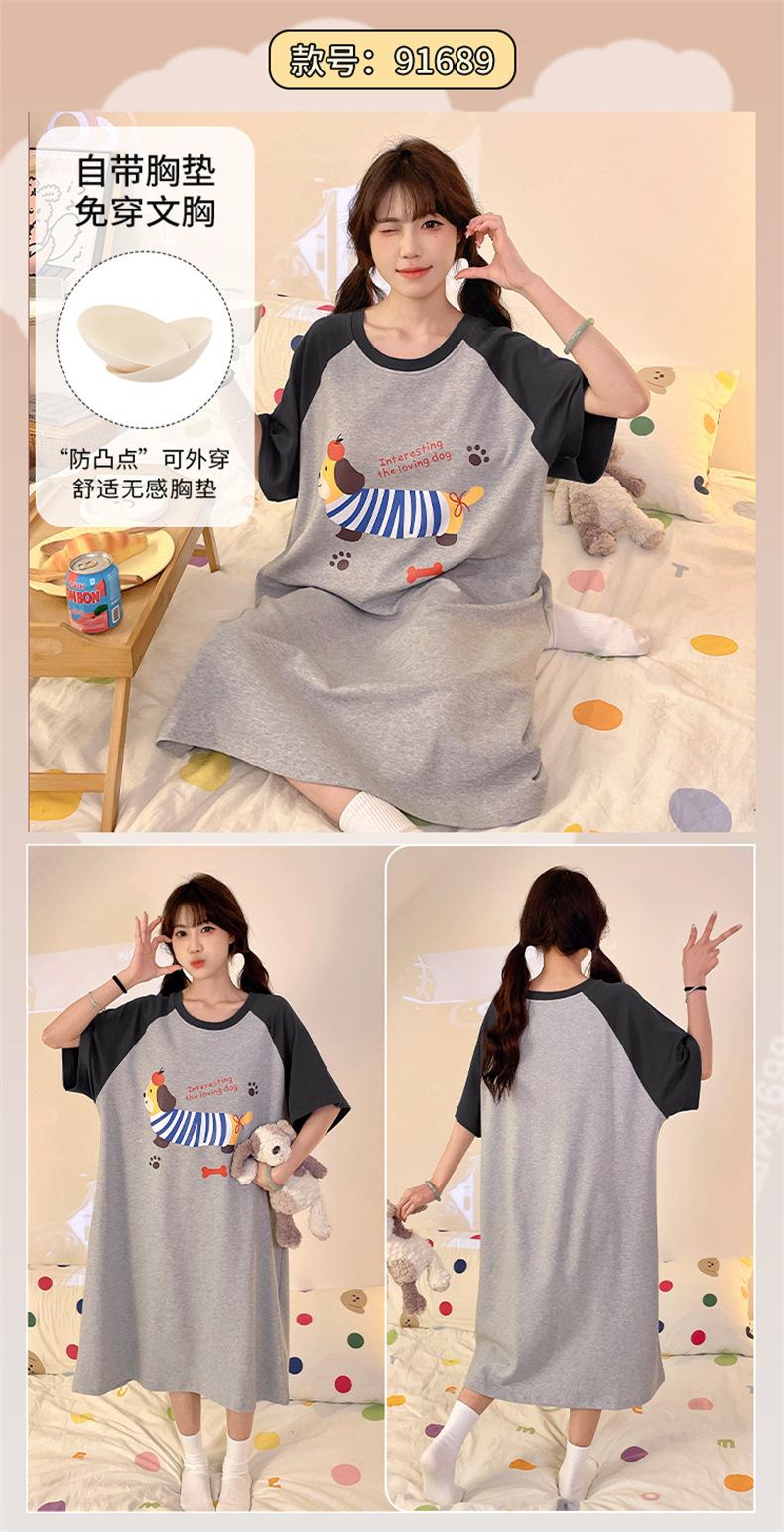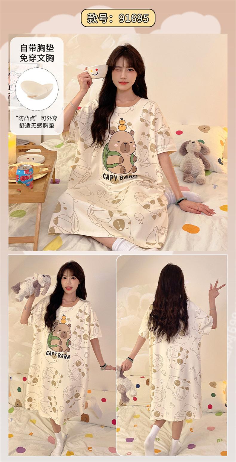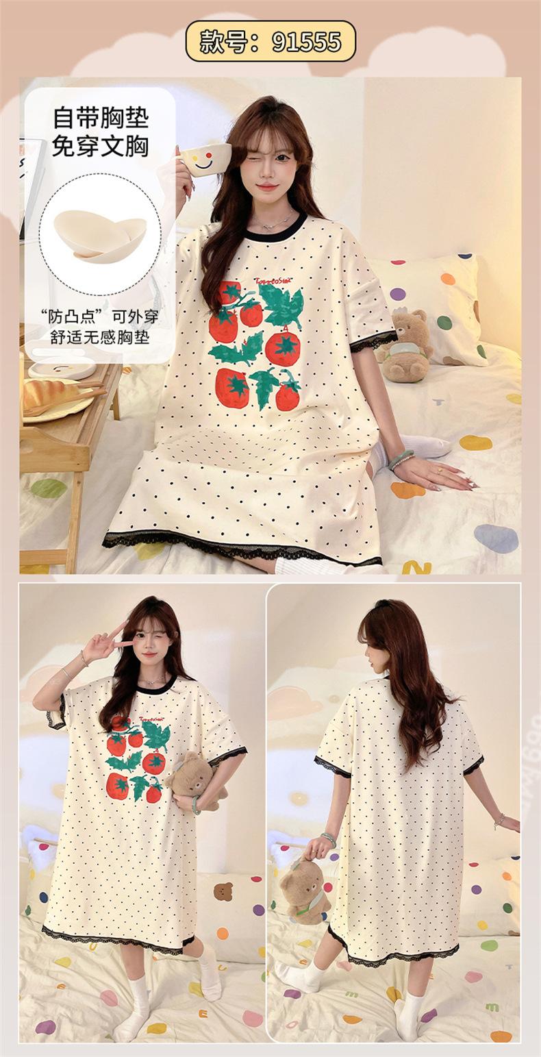 Camisón de Verano con Almohadillas para el Busto, Manga Corta, Pijama Lindo de Dibujos Animados de Celebridad de Internet para Mujer, Verano Talla Grande Mujer Puede Usar Ropa de Casa