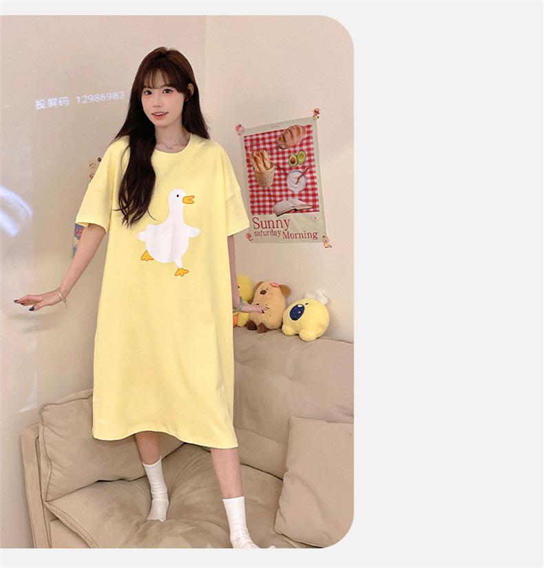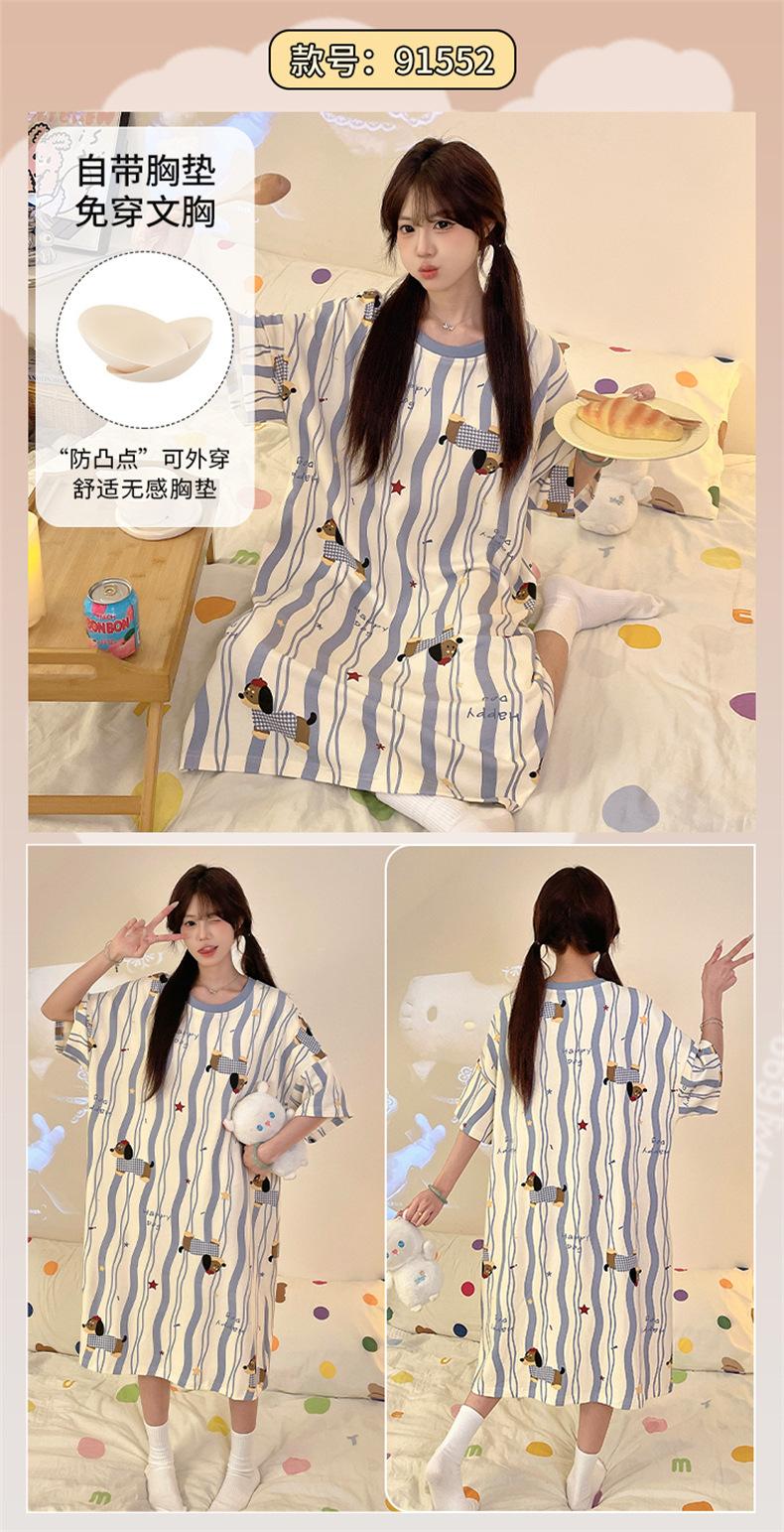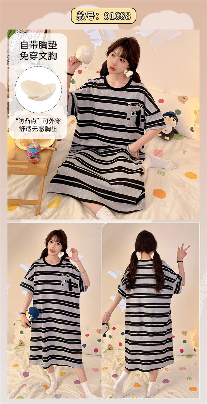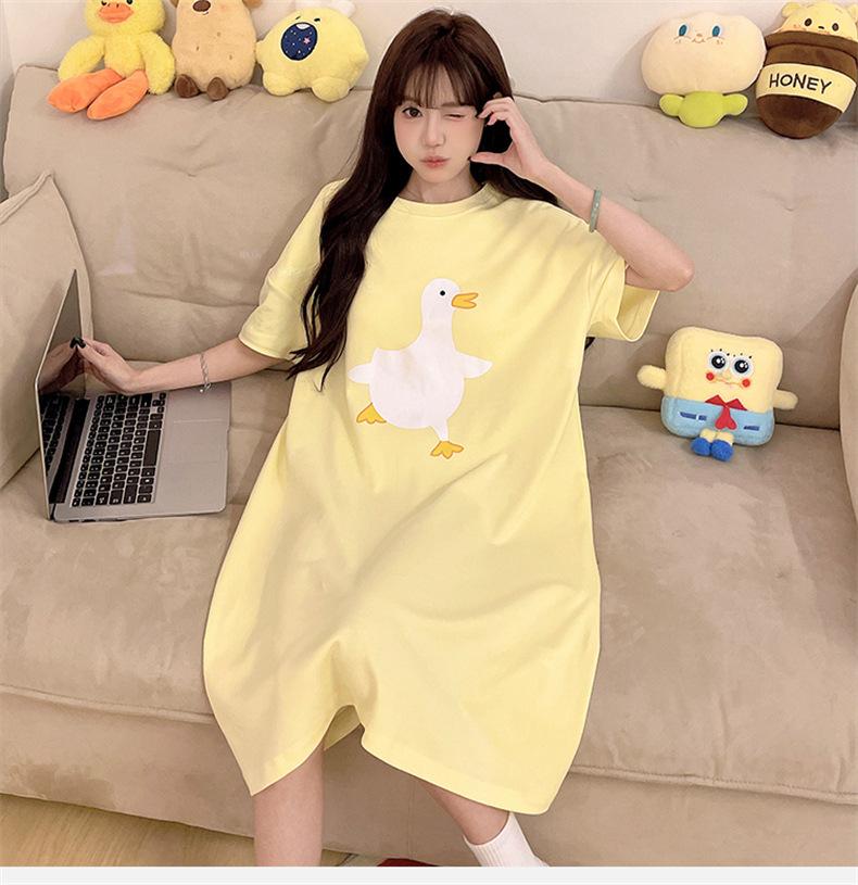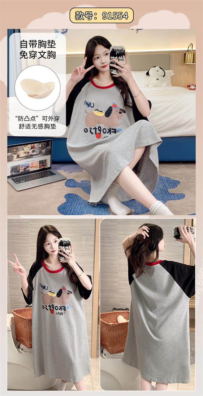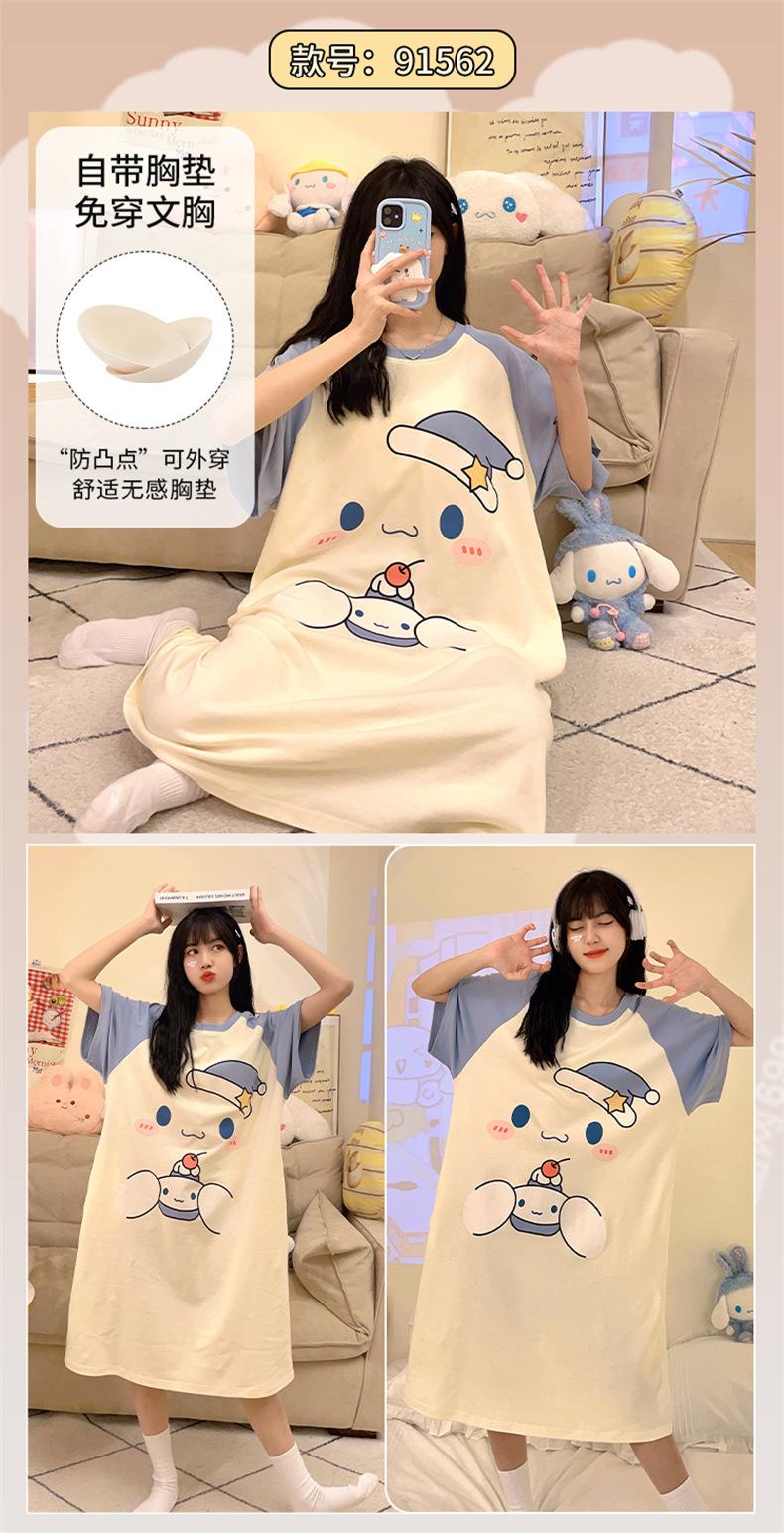 Camisón de Verano con Almohadillas para el Busto, Manga Corta, Pijama Lindo de Dibujos Animados de Celebridad de Internet para Mujer, Verano Talla Grande Mujer Puede Usar Ropa de Casa