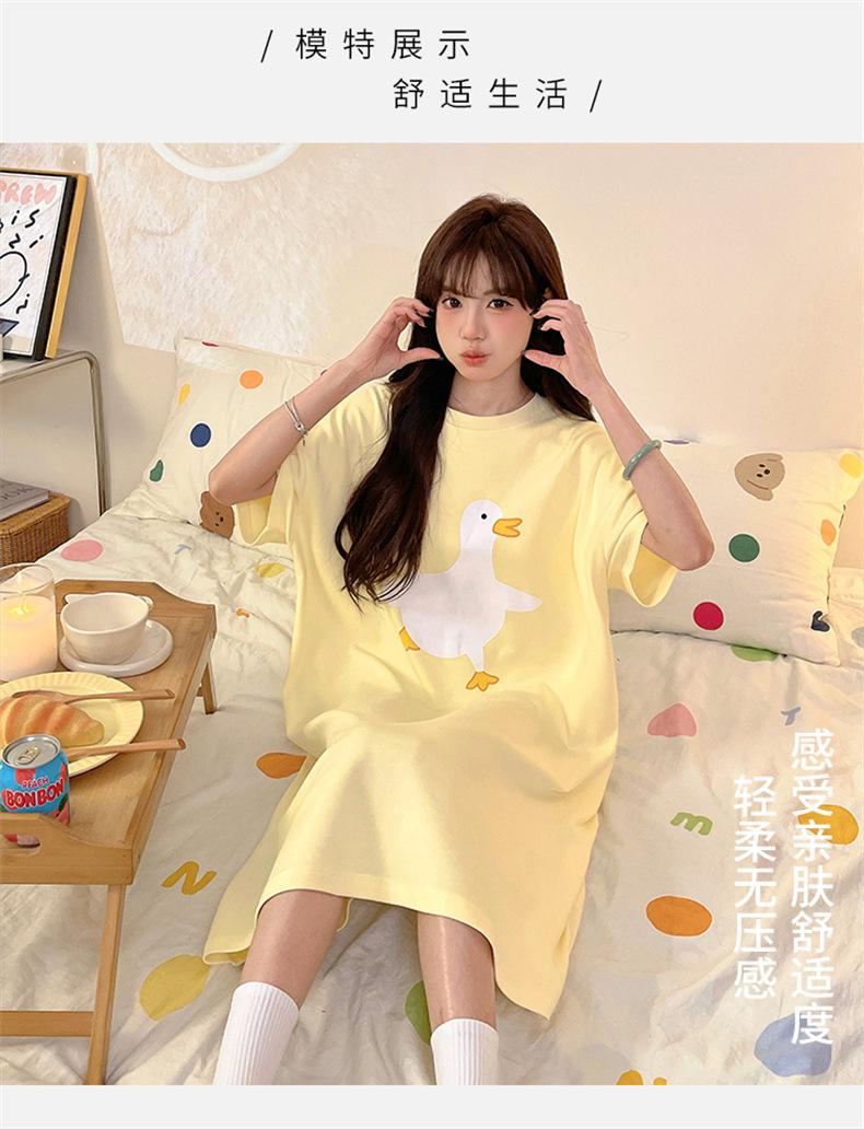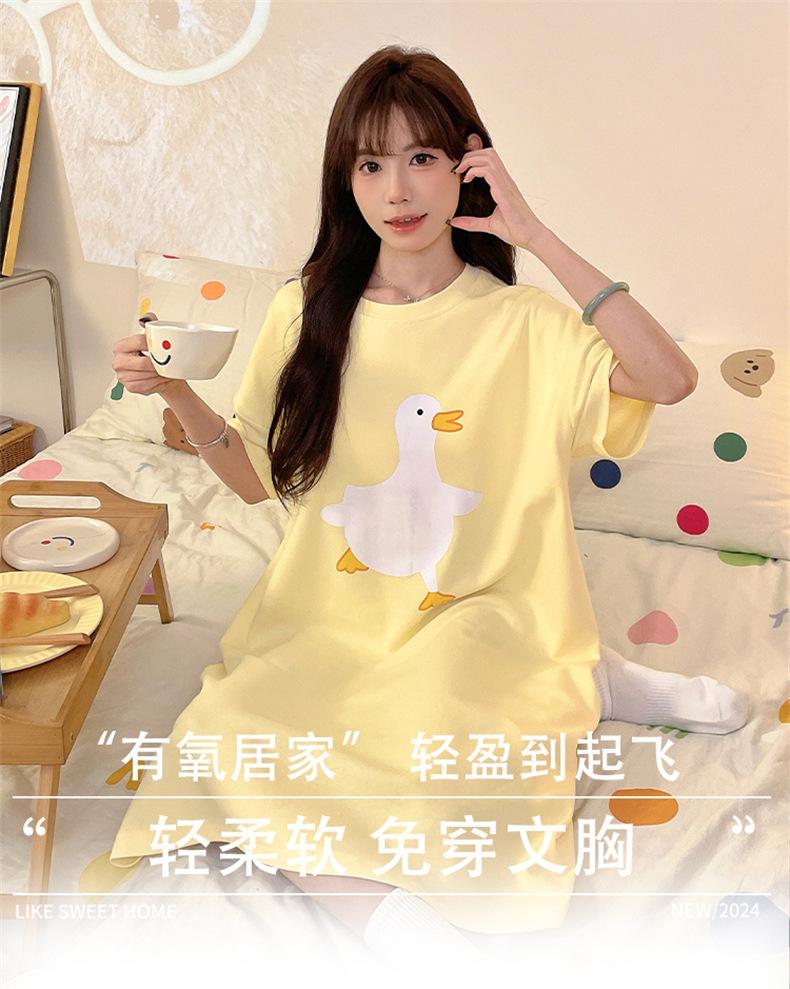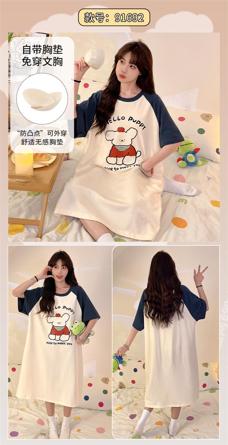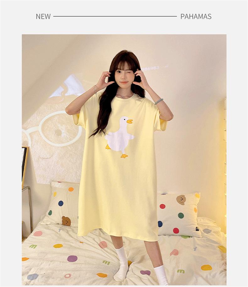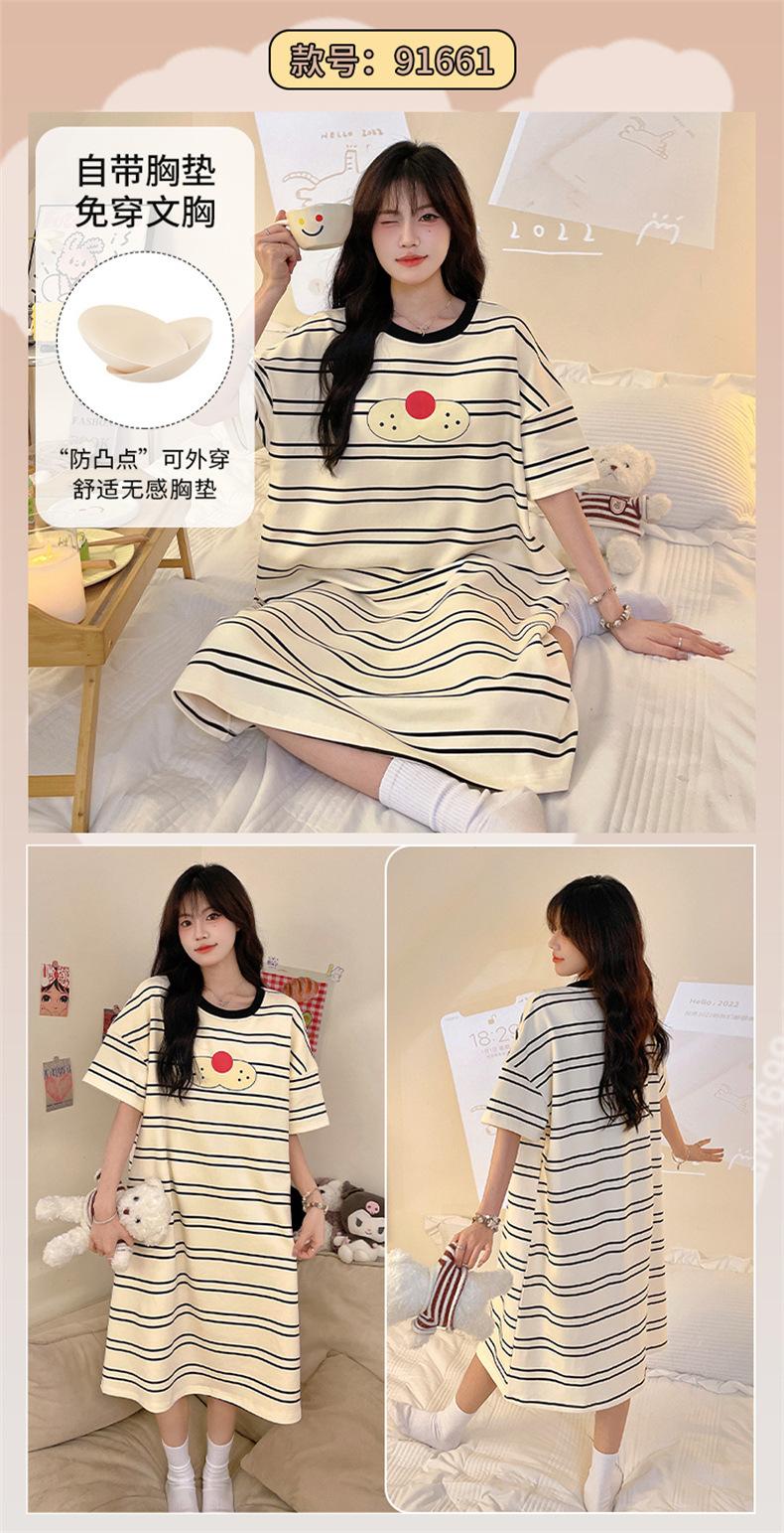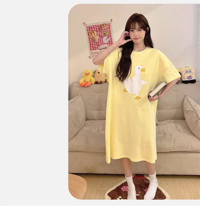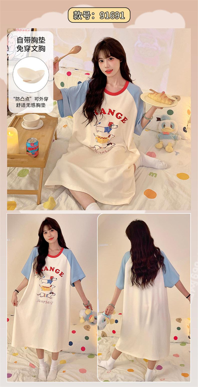 Camisón de Verano con Almohadillas para el Busto, Manga Corta, Pijama Lindo de Dibujos Animados de Celebridad de Internet para Mujer, Verano Talla Grande Mujer Puede Usar Ropa de Casa