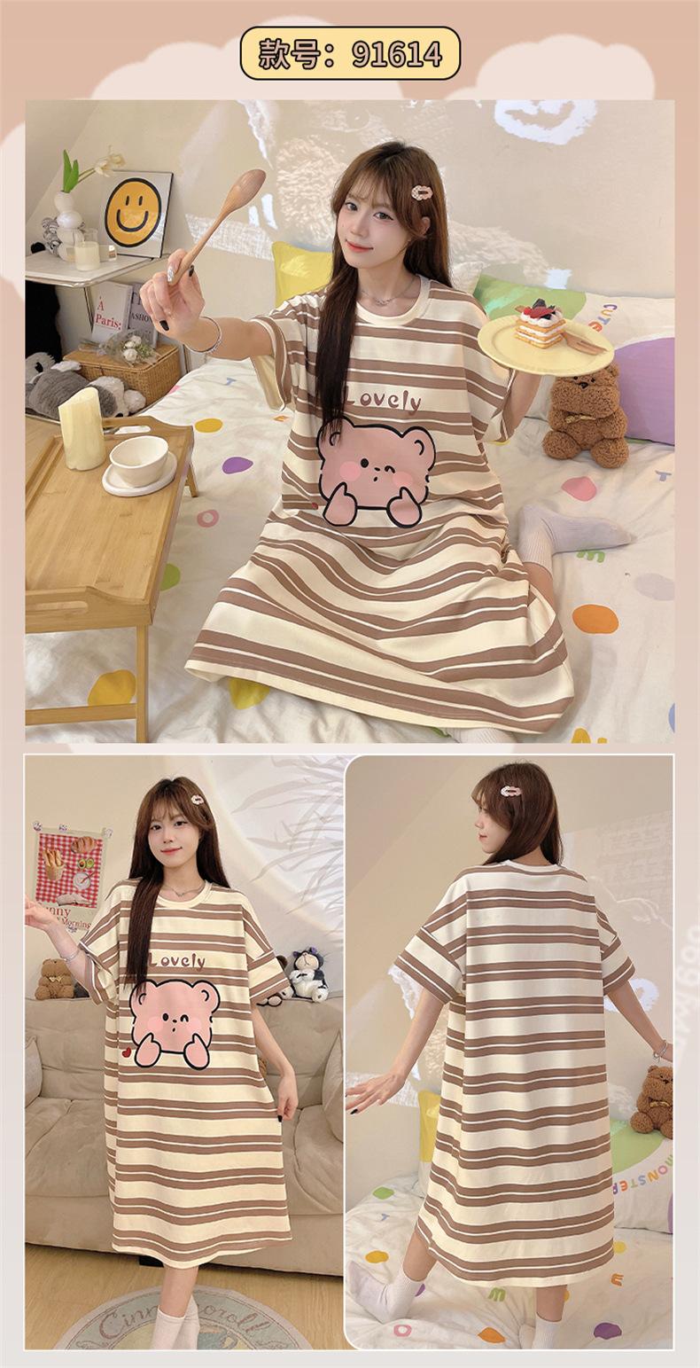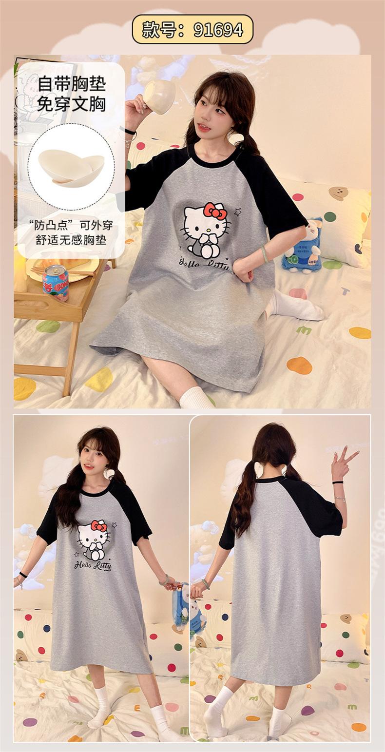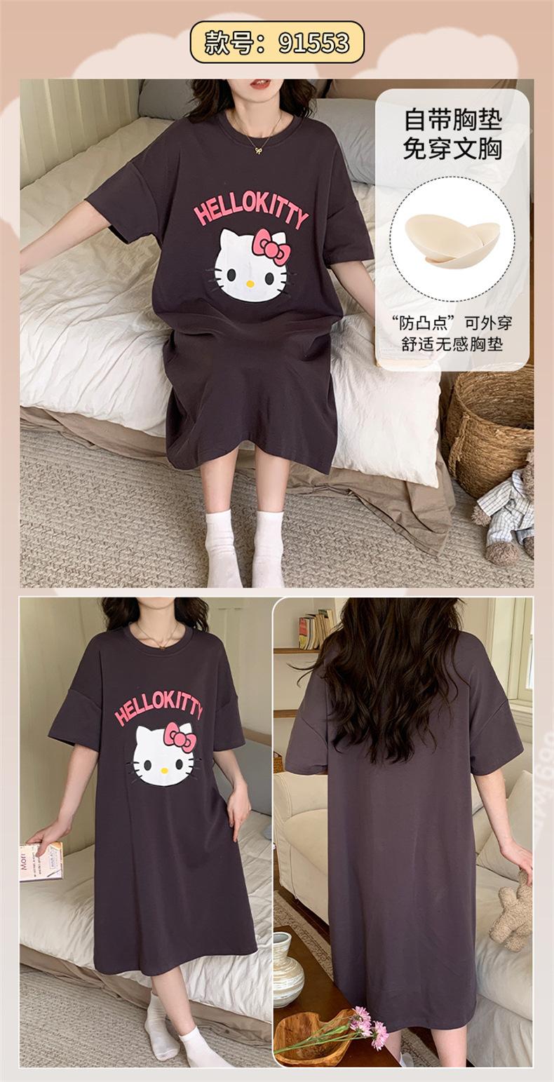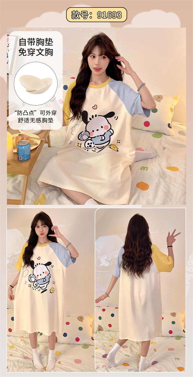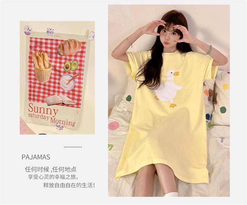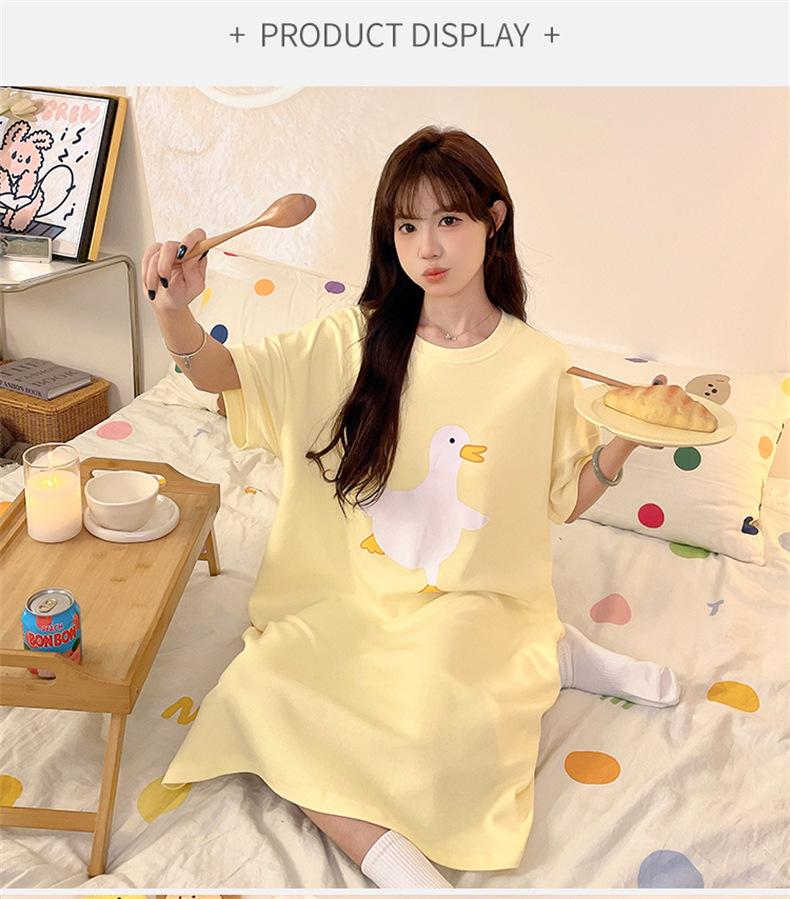 Camisón de Verano con Almohadillas para el Busto, Manga Corta, Pijama Lindo de Dibujos Animados de Celebridad de Internet para Mujer, Verano Talla Grande Mujer Puede Usar Ropa de Casa