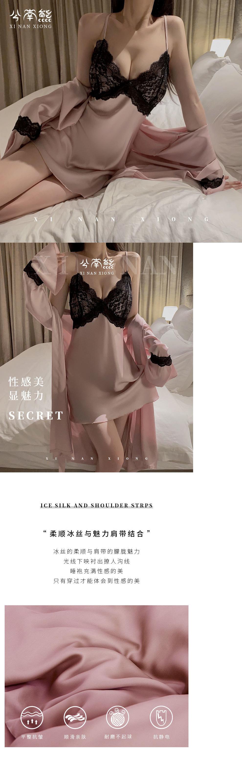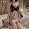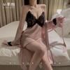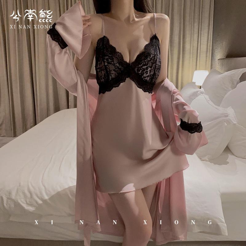 Camisón Sexy Francés de Seda de Hielo con Tirantes Encaje Almohadilla para el Busto Pijama Tentación Ropa para el Hogar Nuevo Estilo Lujuria Pura Verano
