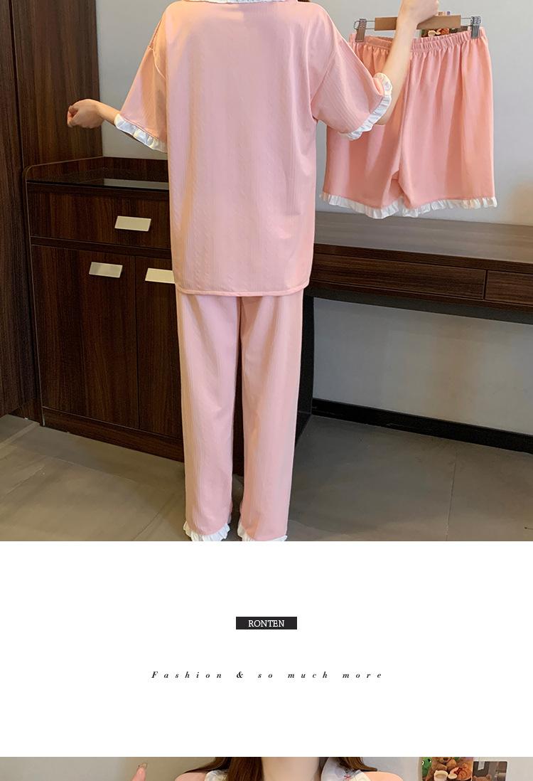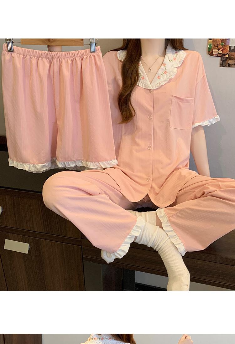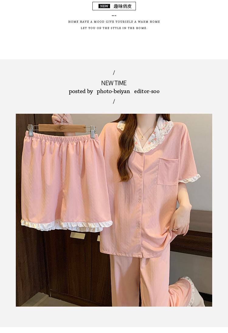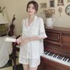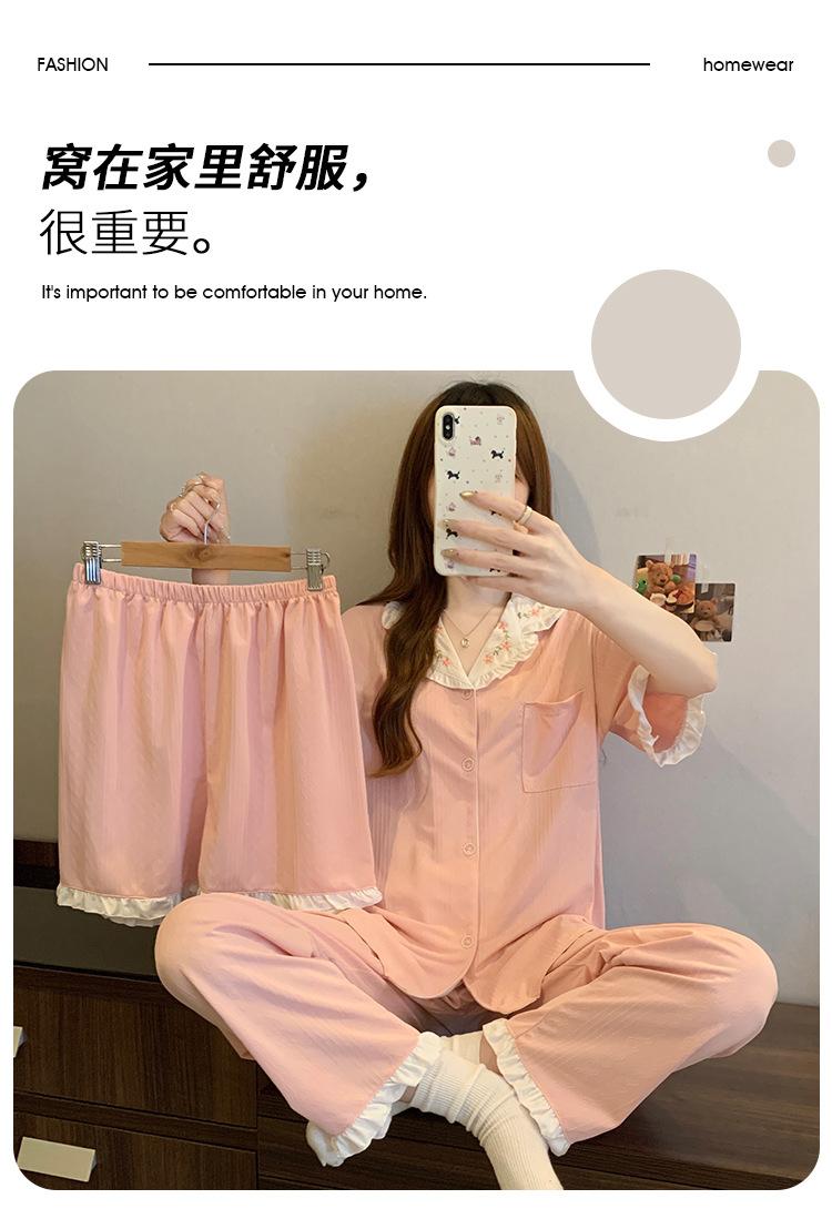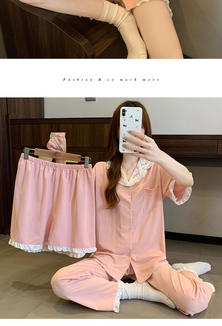 Pijama de encaje de algodón de imitación simple estilo bosque de alto valor estilo ins para damas verano manga corta dulce traje de tres piezas al por mayor