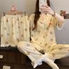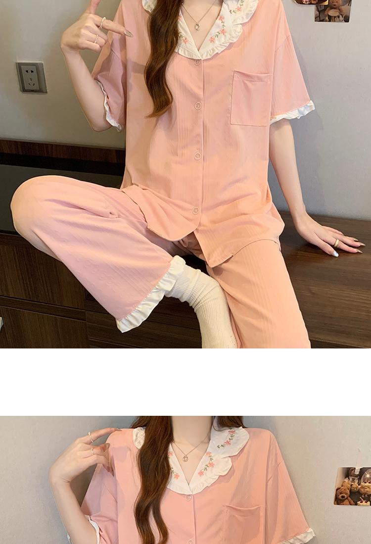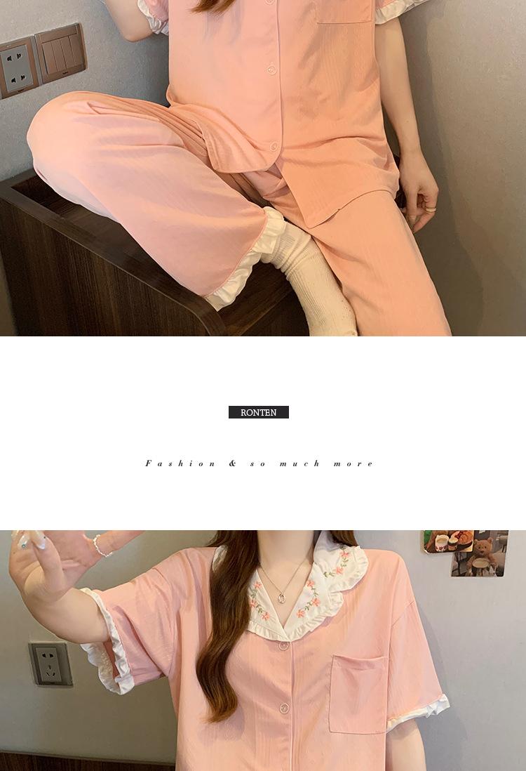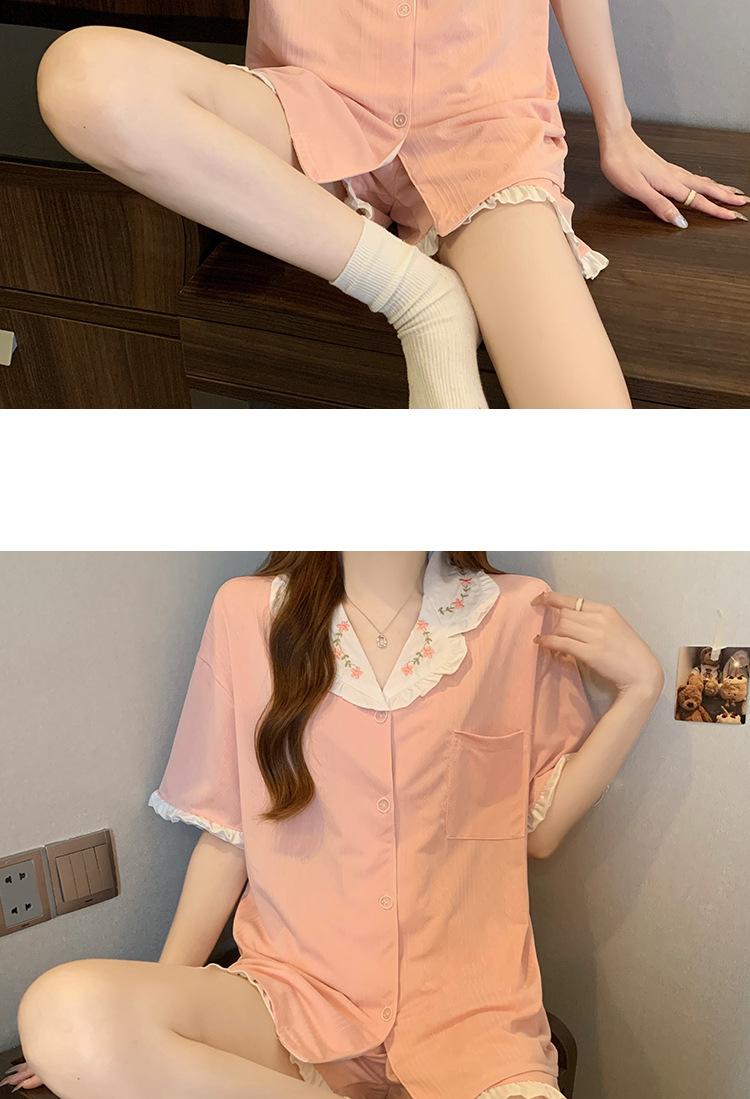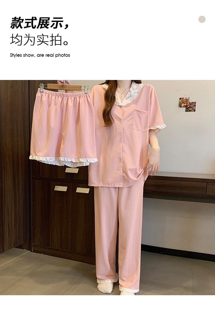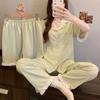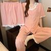 Pijama de encaje de algodón de imitación simple estilo bosque de alto valor estilo ins para damas verano manga corta dulce traje de tres piezas al por mayor