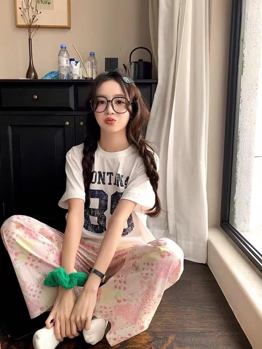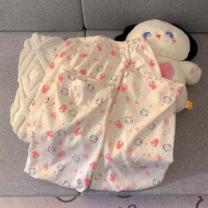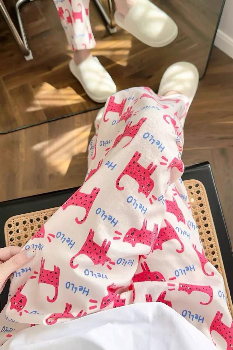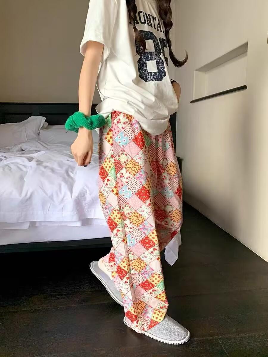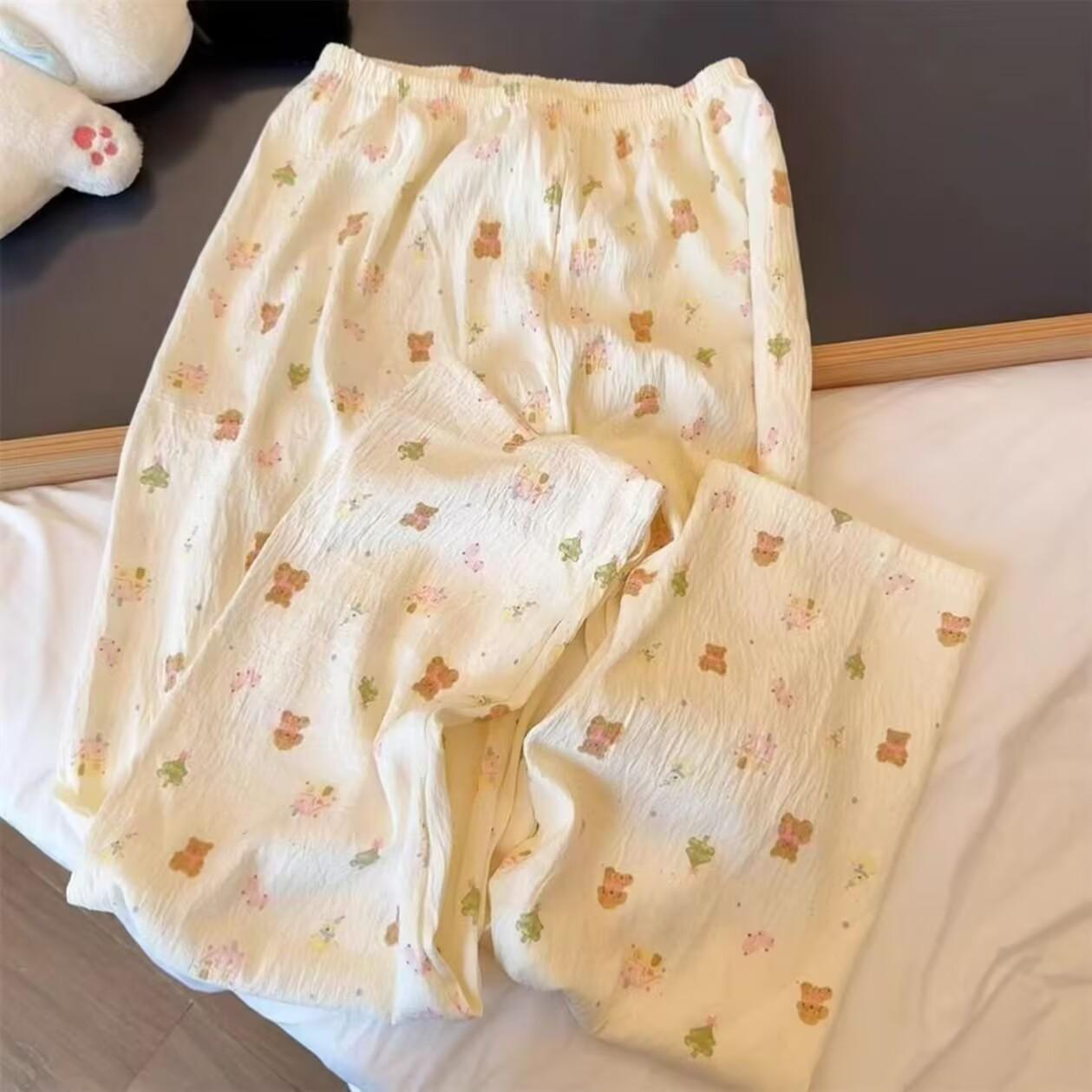 Pantalones de Pijama de Mujer de Estilo Nuevo Verano Sueltos Coreanos Algodón Nube Pantalones de Descanso Ropa de Dormir para el Hogar Se Pueden Usar Afuera