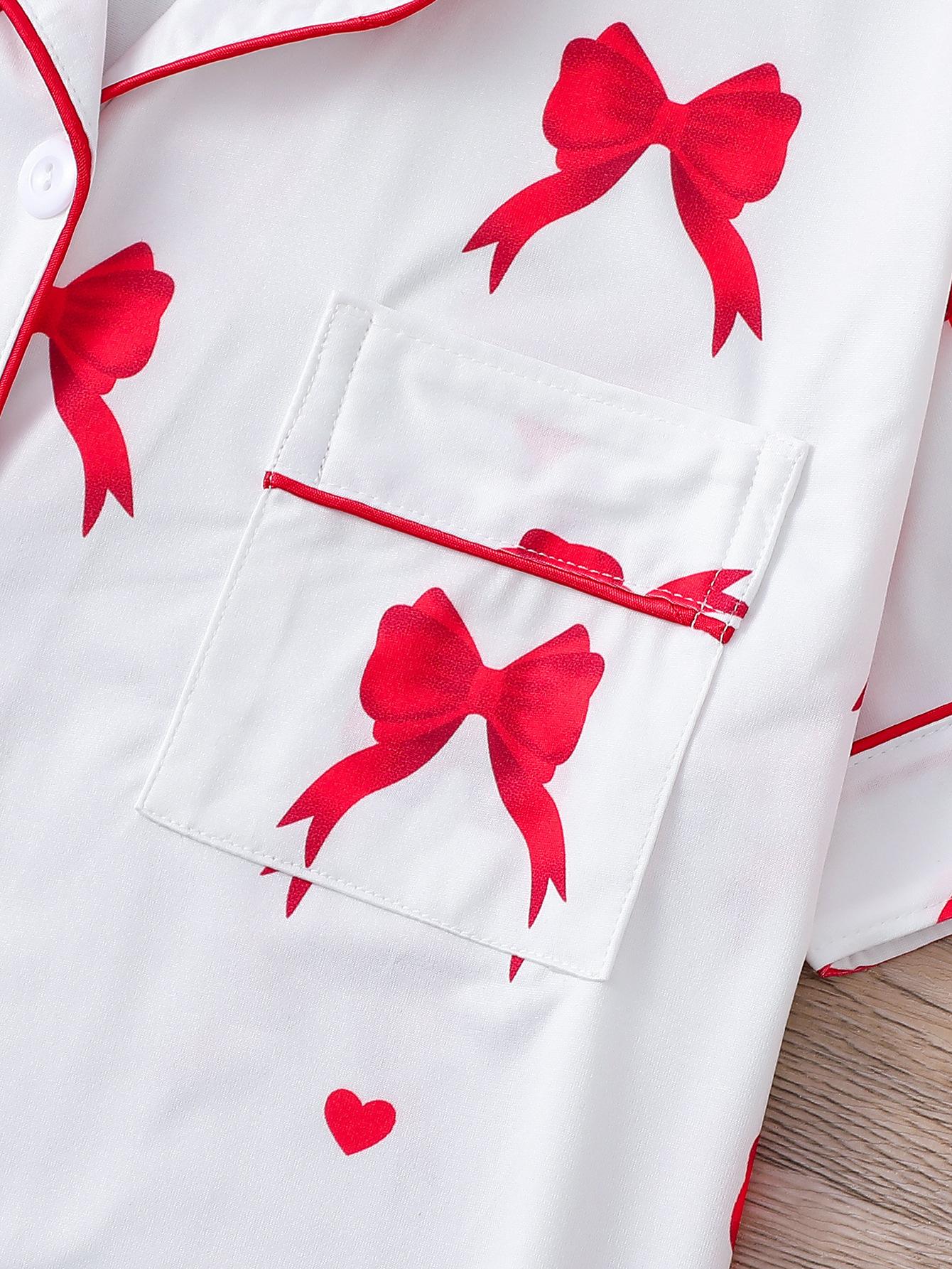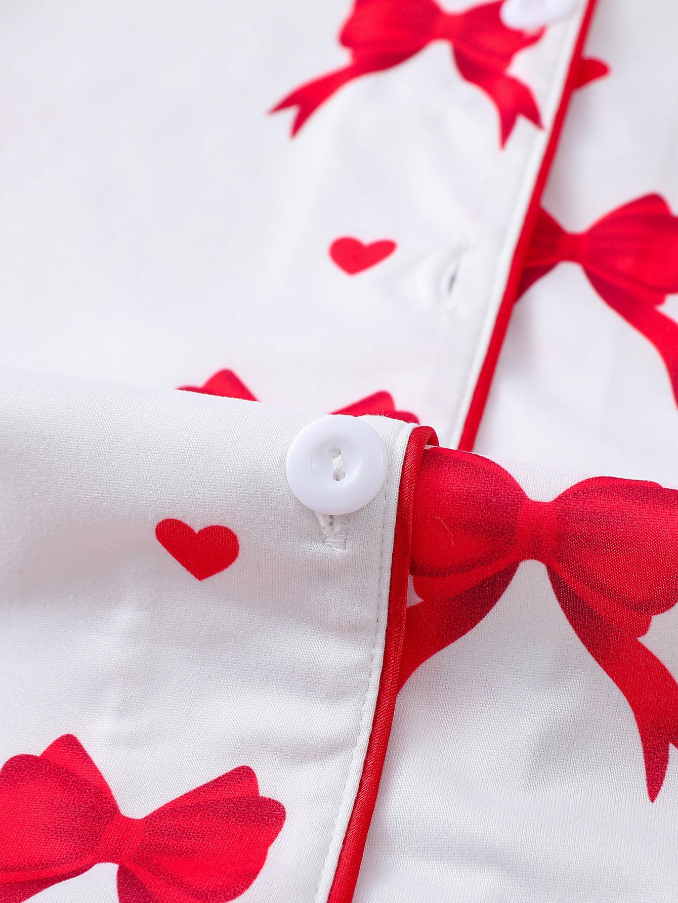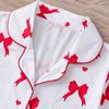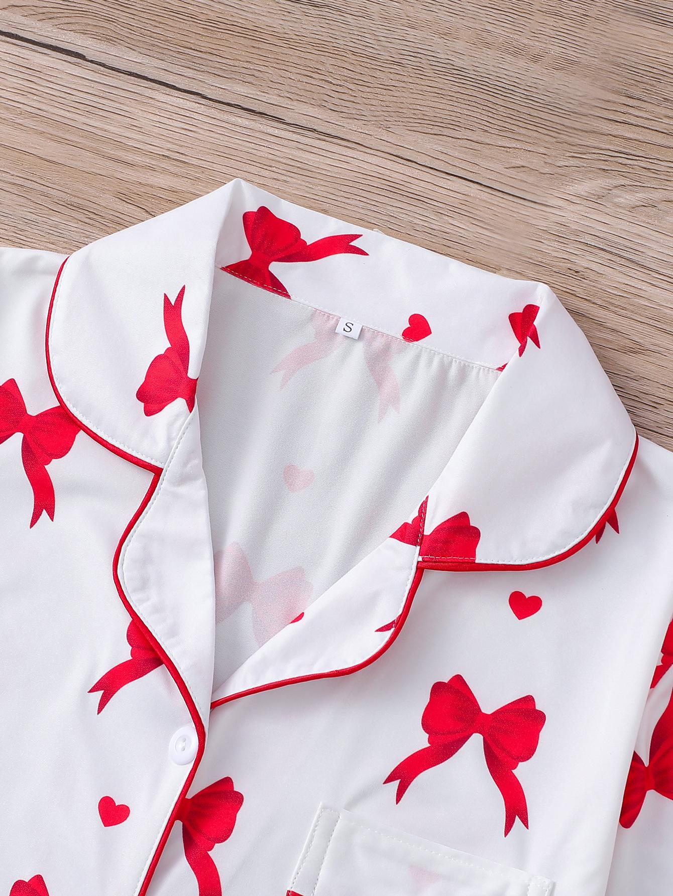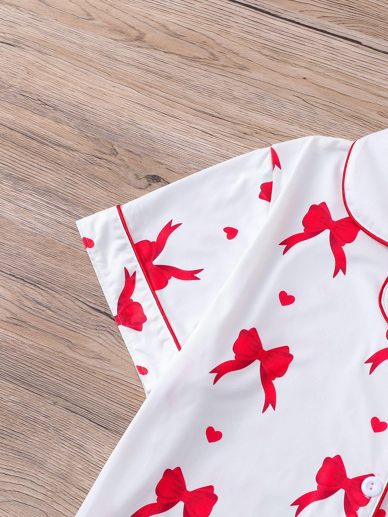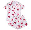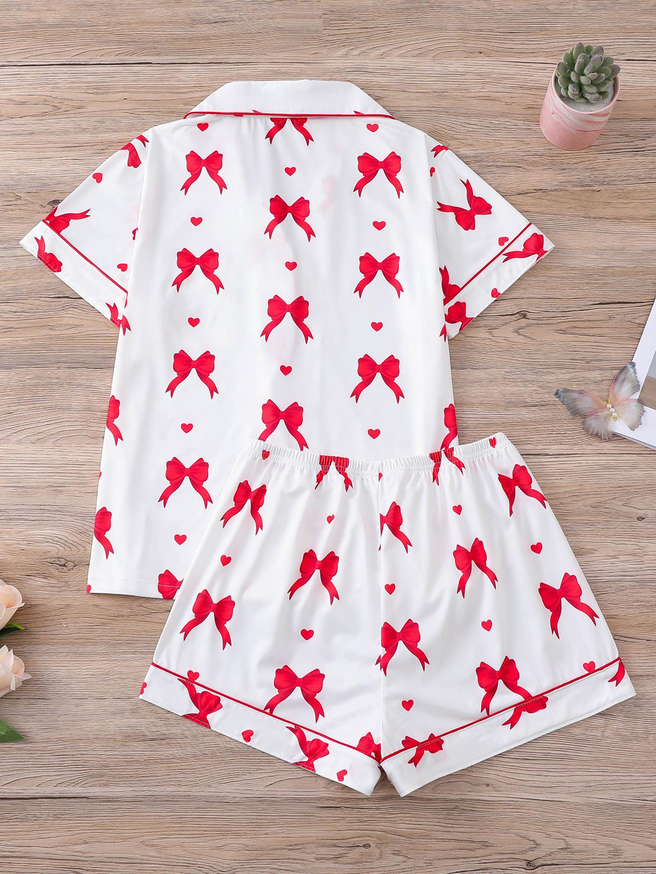 Pijama de Mujer Europea y Americana al por Mayor de Comercio Exterior Transfronterizo con Estampado de Lazo, Solapa, Manga Corta y Shorts, Trajes Europeos y Americanos para Estar en Casa