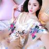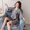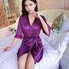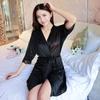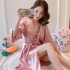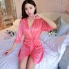 Camisón de Seda de Hielo Talla Grande para Mujer Verano Pijama Sexy Encaje Primavera y Otoño Bata de Encaje de Manga Larga con Cordones Bata para Mujer Pieza Única