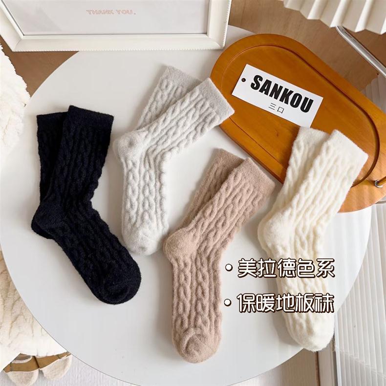 Otoño e Invierno nuevos calcetines de terciopelo calcetines de media pantorrilla para mujer calcetines cálidos de terciopelo grueso calcetines cálidos para dormir calcetines gruesos para confinamiento a prueba de frío para piso