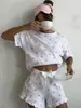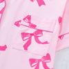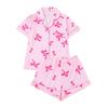 Pijama Nuevo para Mujer de Verano con Estampado de Lazo de Solapa y Manga Corta con Shorts Conjunto de Ropa de Casa para Mujer Europeo y Americano