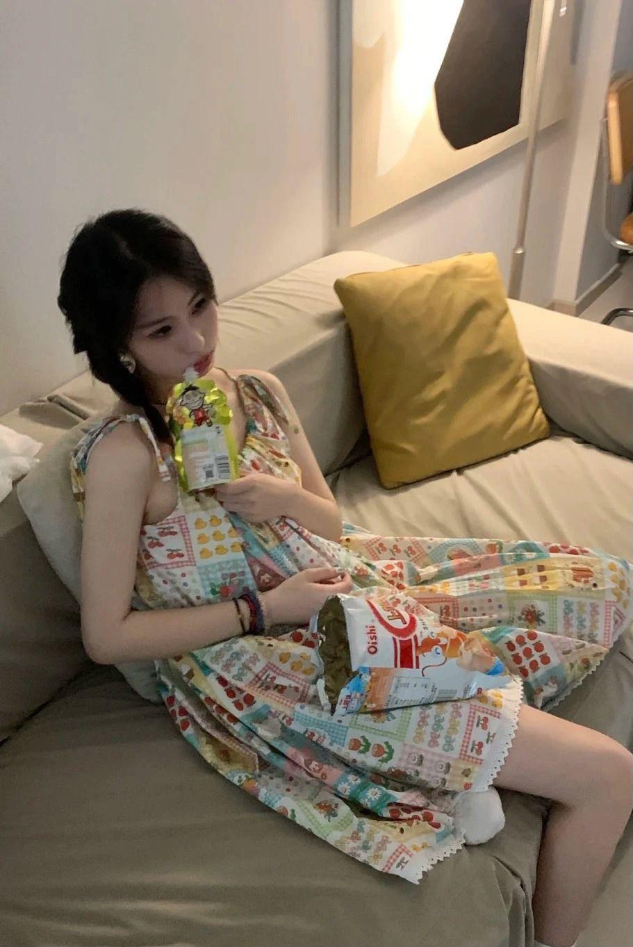 Pijamas, Faldas de Verano para Mujer, Chicas Dopamina, Camisones de Estilo Francés Relajado, Tirantes, Pijamas Holgados que se Pueden Usar Fuera Ropa de Casa