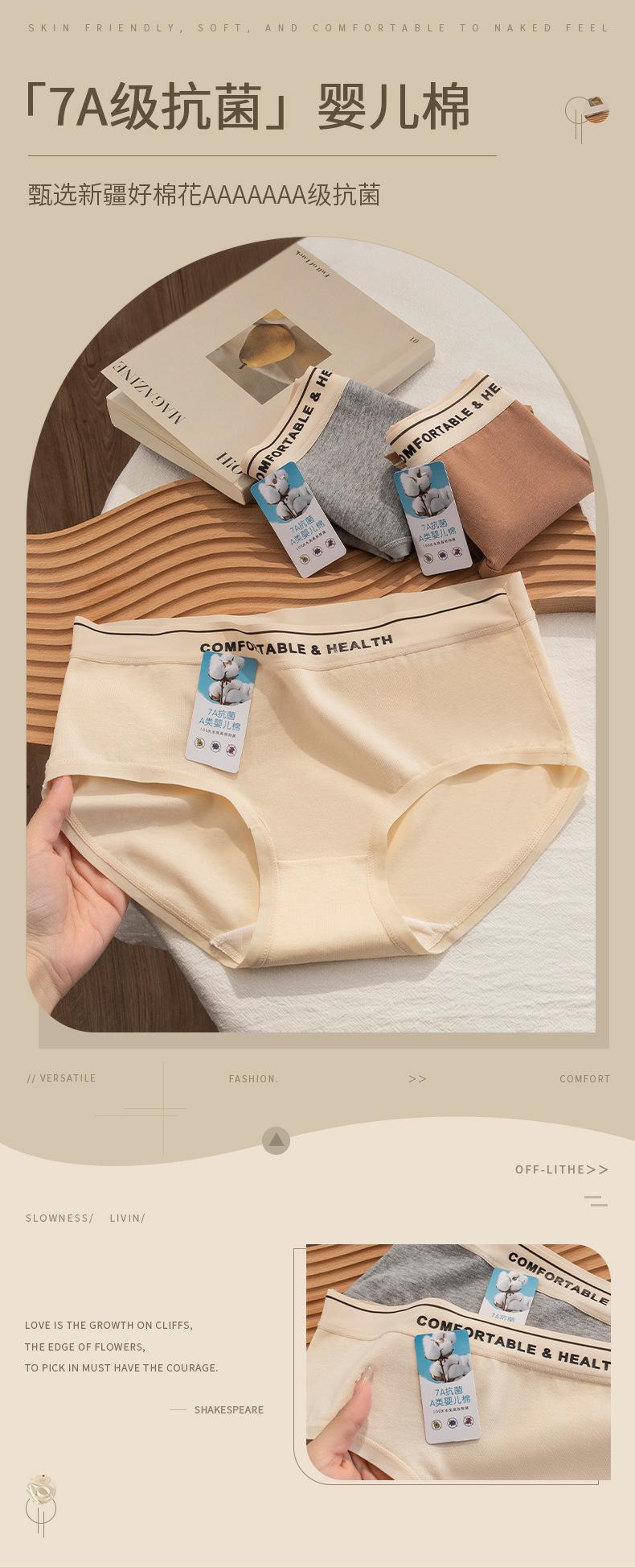 Algodón 7A antibacteriano para mujer clase A Algodón para bebé Ropa interior de algodón para niñas Ropa interior para mujer de cintura media para mujer Estilo japonés para mujer Venta al por mayor para mujer