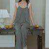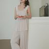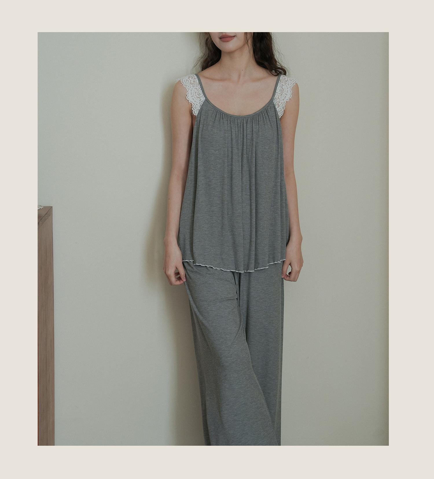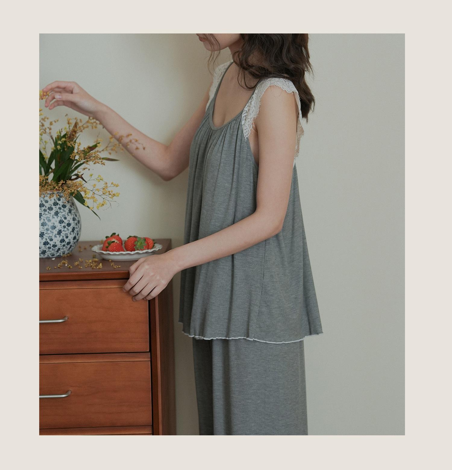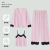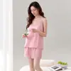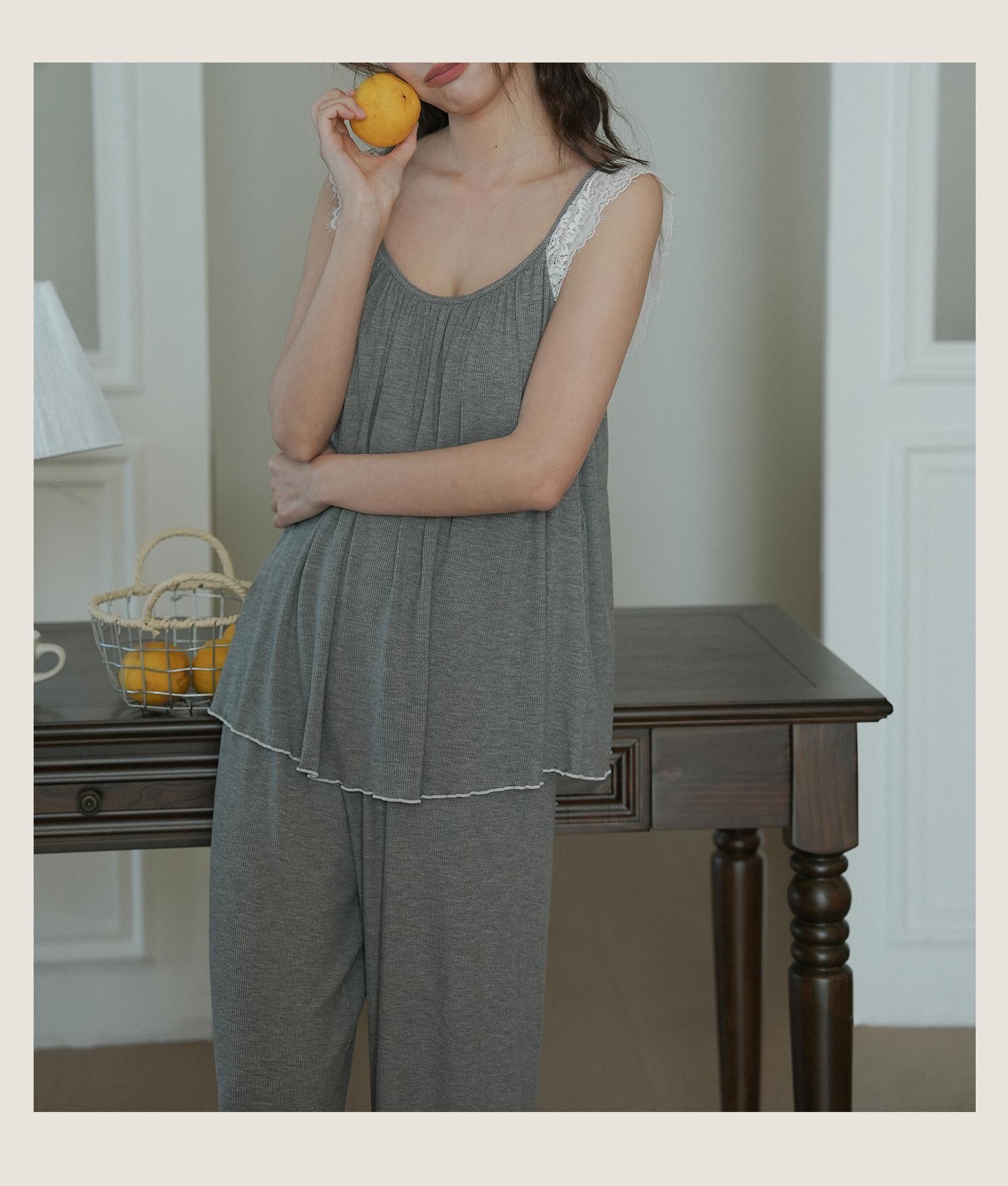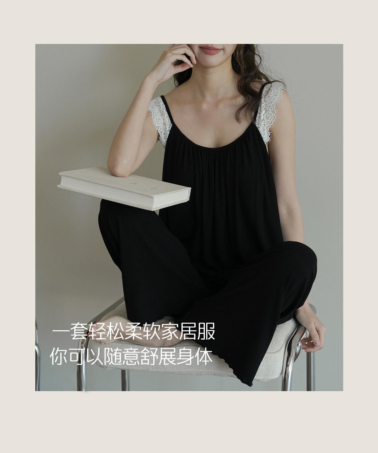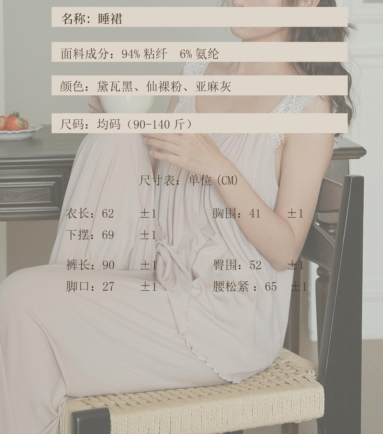 Pijama de Verano para Mujer con Encaje, Almohadilla en el Pecho, Delgada, Color Sólido, Camisola, Pantalones, Conjunto de Dos Piezas, Ropa para el Hogar