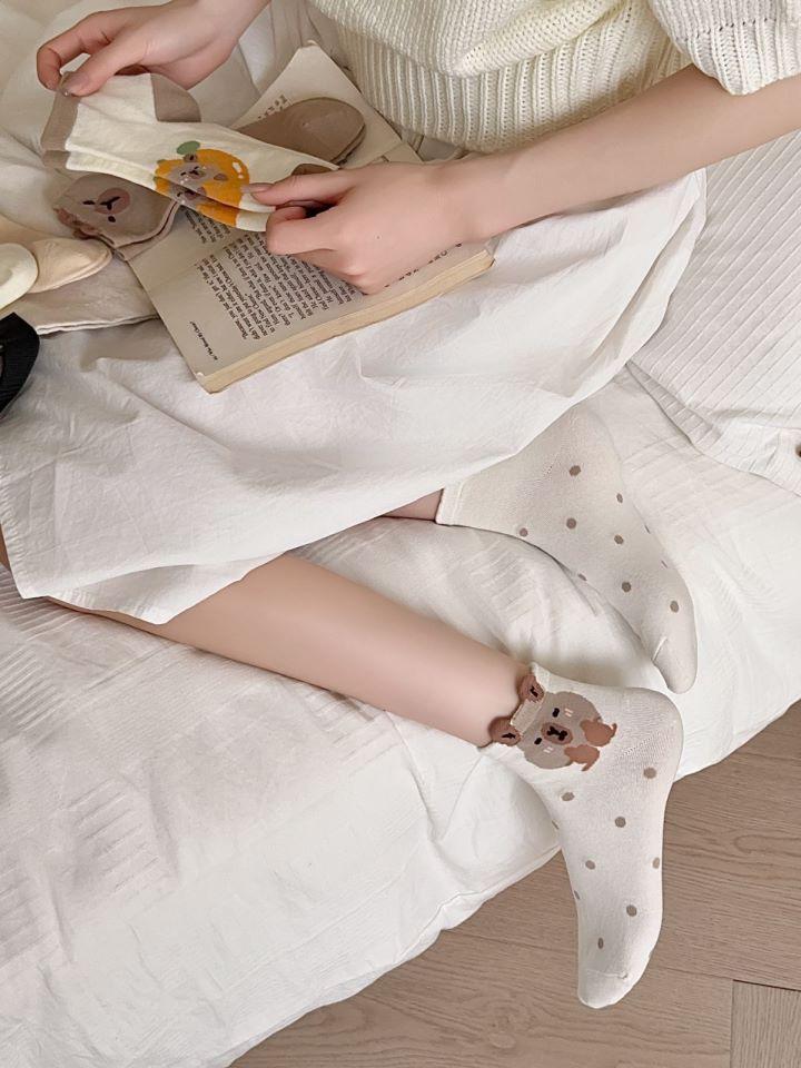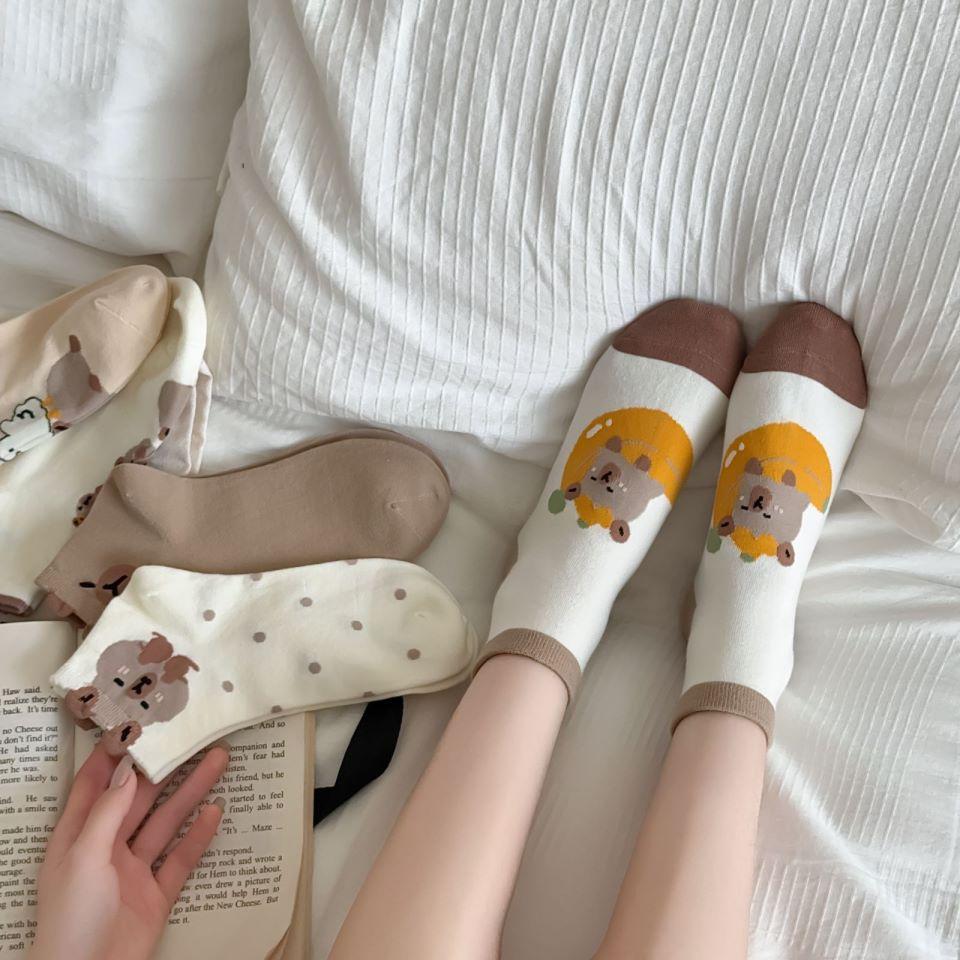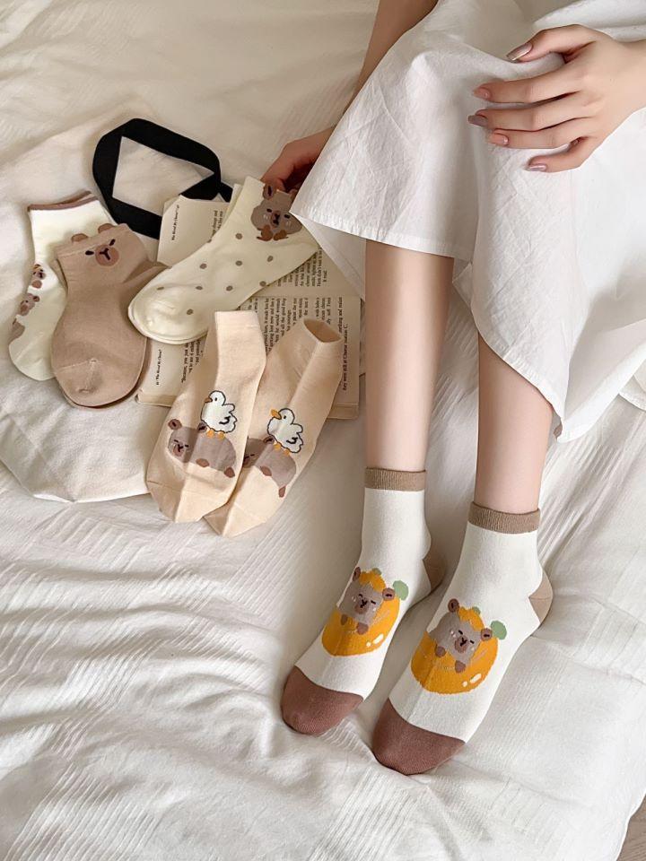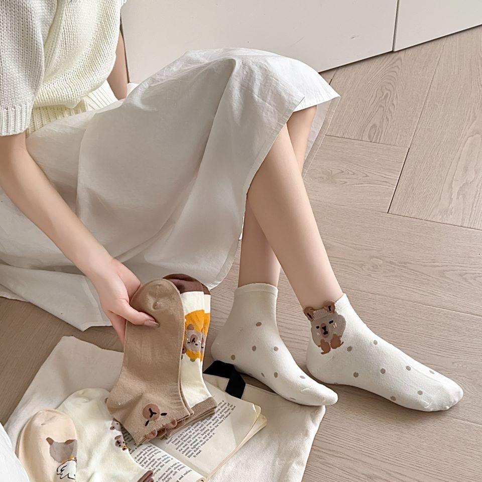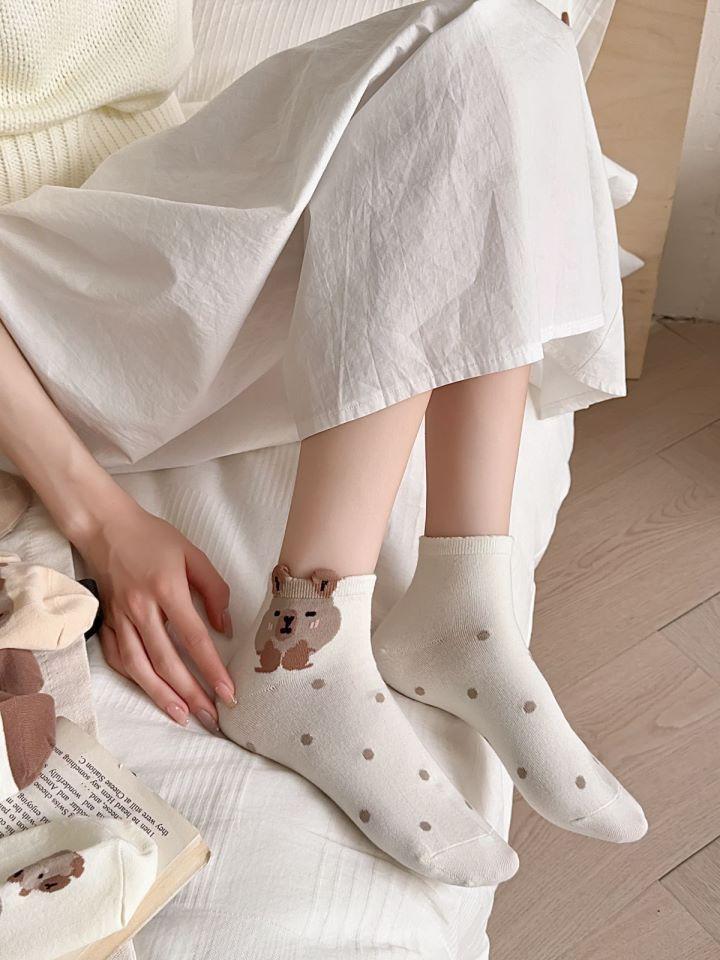 Calcetines de Oso de Primavera y Verano de Dibujos Animados Lindo Japonés Calcetines Cortos para Estudiantes Calcetines de Barco de Corte Bajo Delgados Combinan con Todo Calcetines de Tubo Bajo