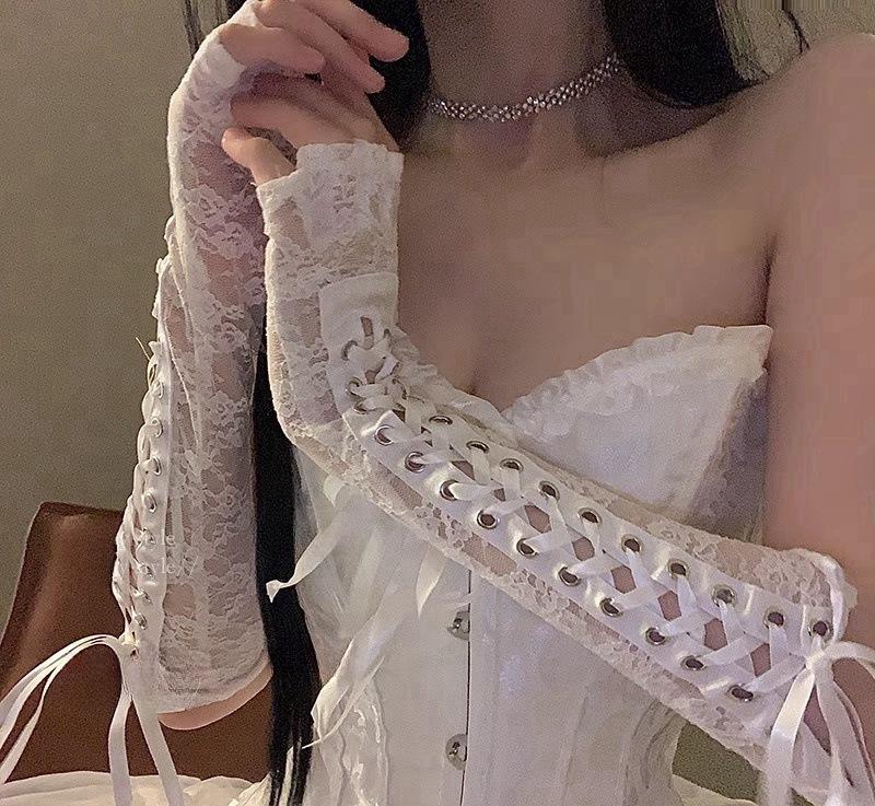 Nube Rosa Lencería Sexy Sexy Encaje Tirantes Guantes Largos Tentación Guantes de Medio Dedo Cos Uniforme Femenino Qqn