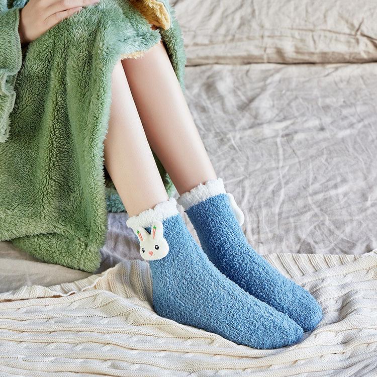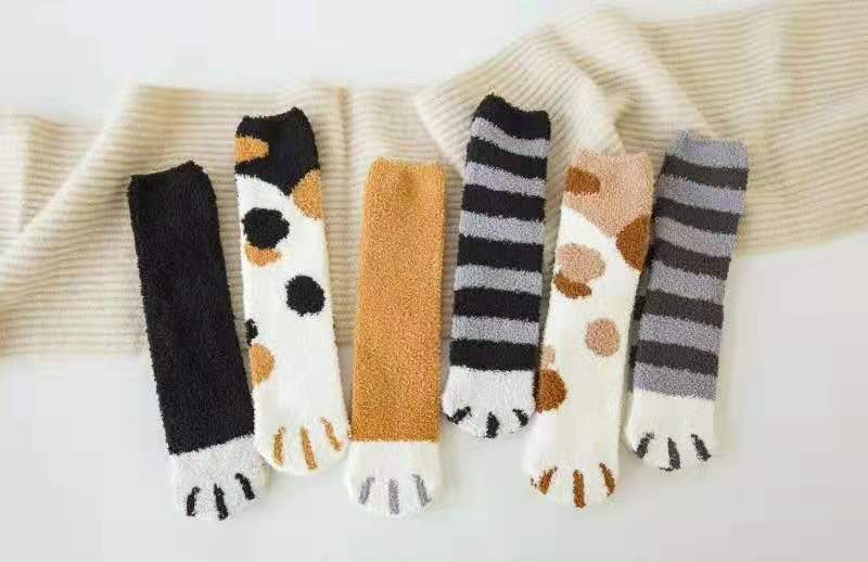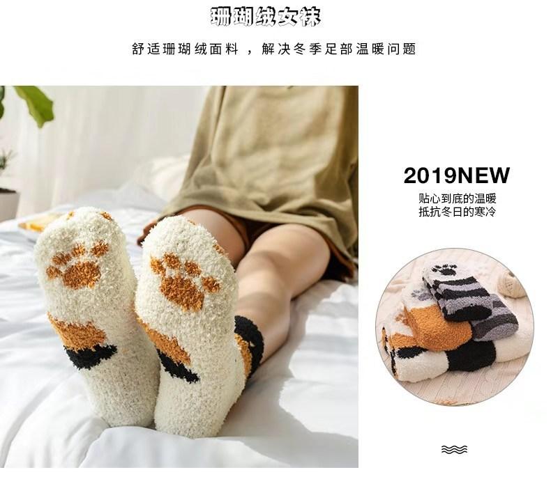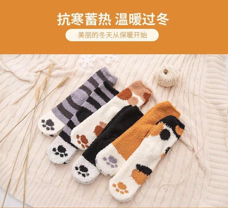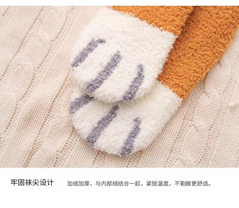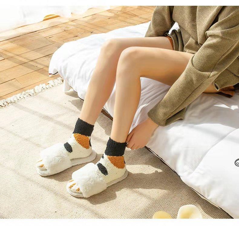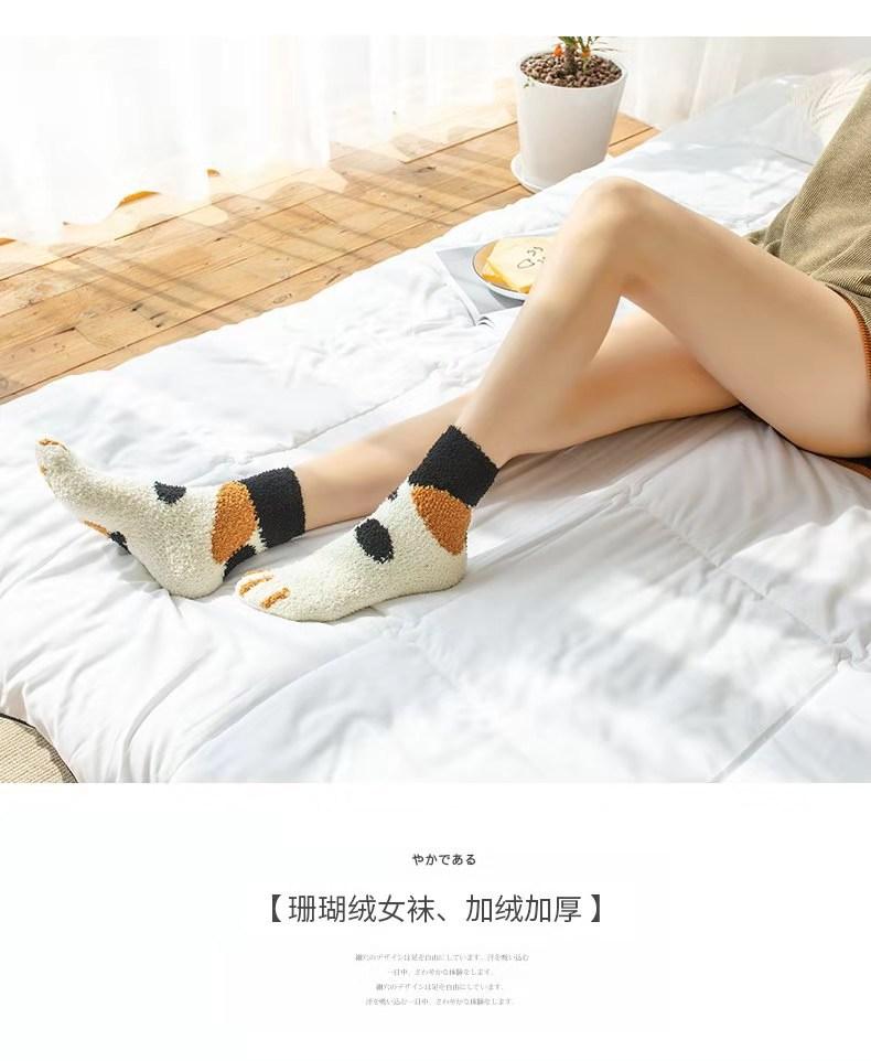 Calcetines para Dormir de Otoño e Invierno, Calcetines Cálidos para Piso para el Postparto, Calcetines de Forro Polar Coral con Garra de Gato, Gruesos y Cálidos para el Calor