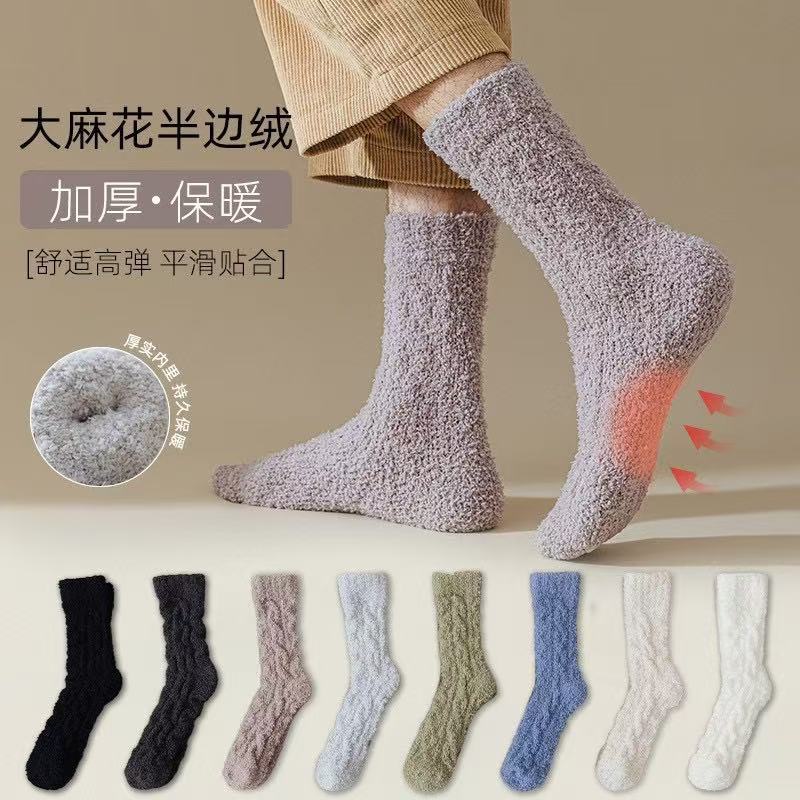 Calcetines de Terciopelo Coral para Hombre y Mujer, Calcetines de Dormir de Media Caña que No Sueltan Pelusa, Calcetines Gruesos Cálidos de Terciopelo para el Hogar para Otoño e Invierno