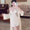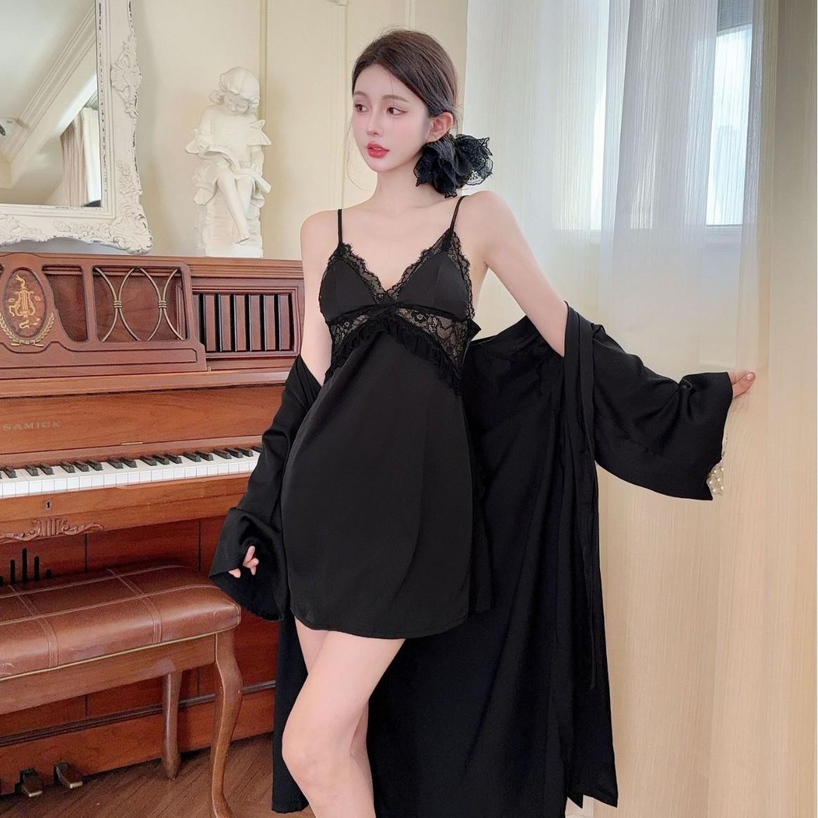 Pijama Nuevo de Seda de Hielo 2025 para Mujer Verano Ropa de Casa de Alta Gama Sexy Espalda Descubierta Tirantes Almohadilla para el Pecho Camisón Conjunto de Dos Piezas