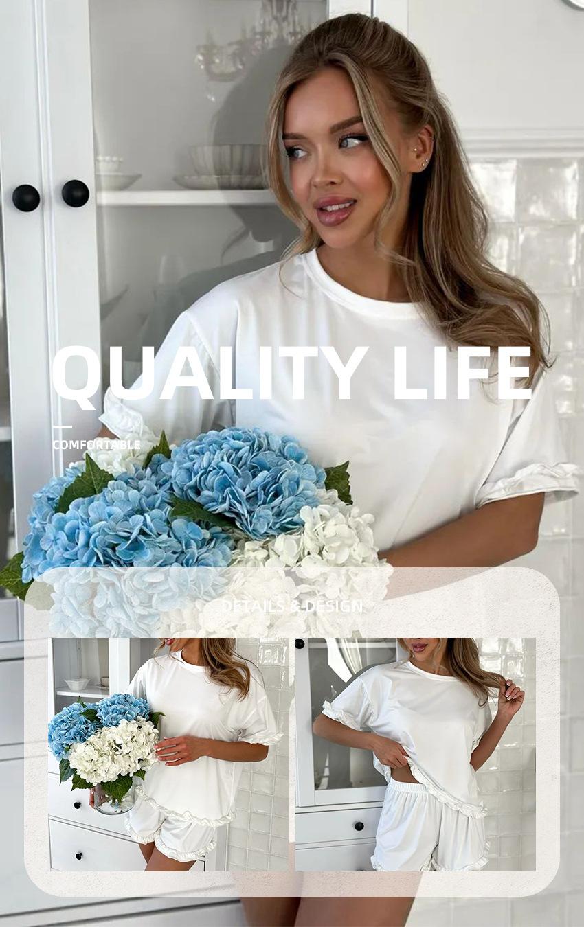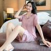 Verano Nuevo Cuello Redondo Seda de Leche Manga Corta Shorts Encaje Conjunto de Pijama 2025 Europeo y Americano Transfronterizo Venta al Por Mayor Ropa para el Hogar