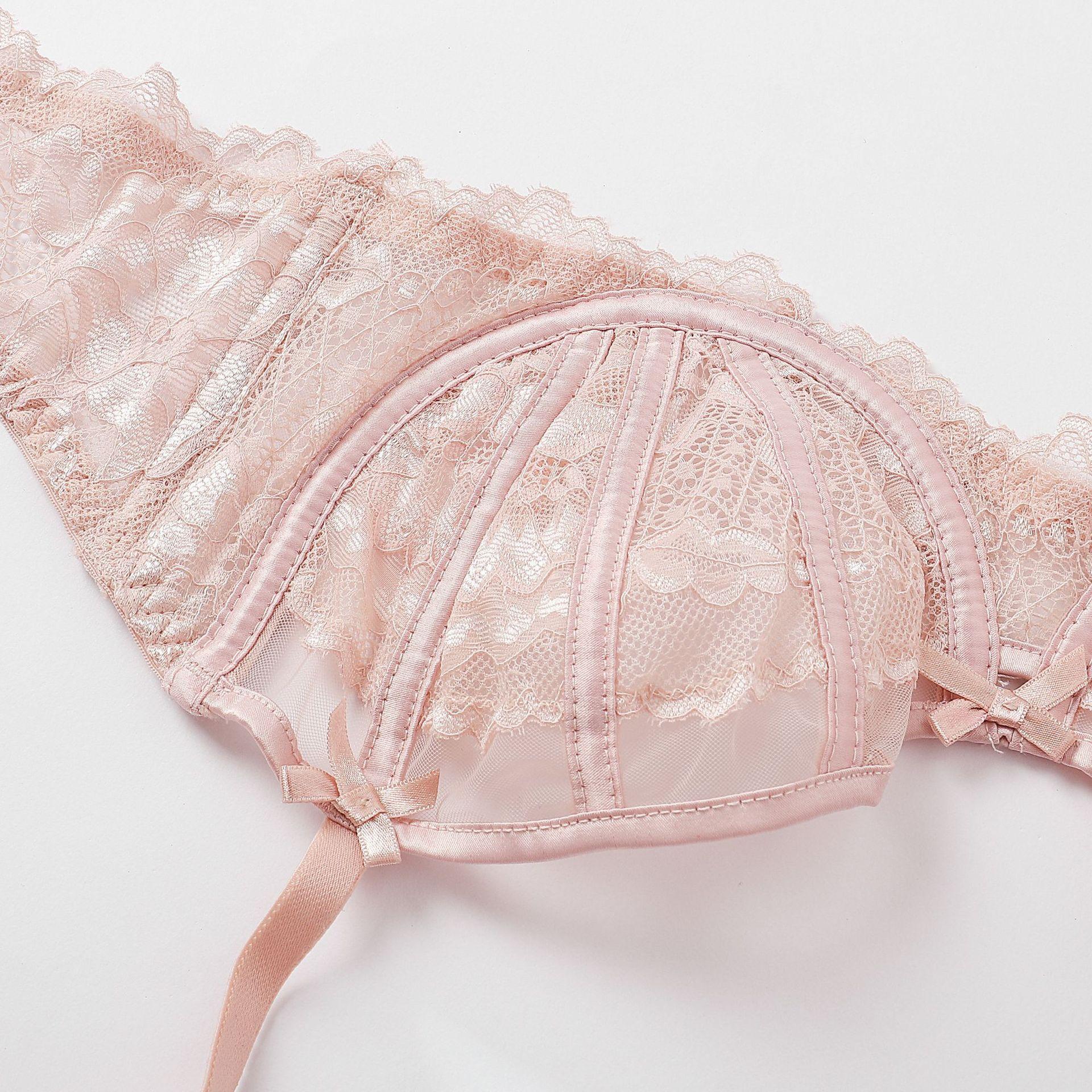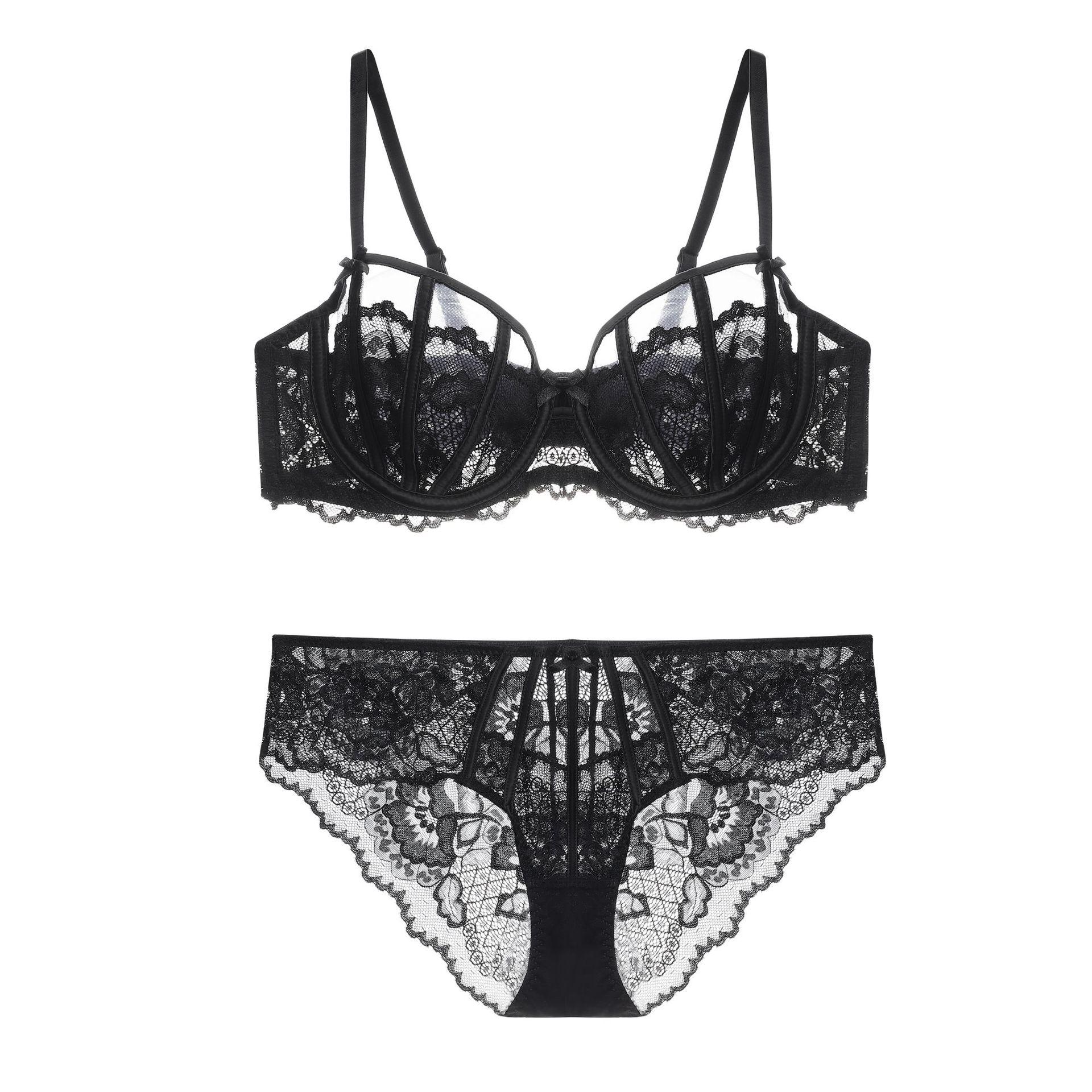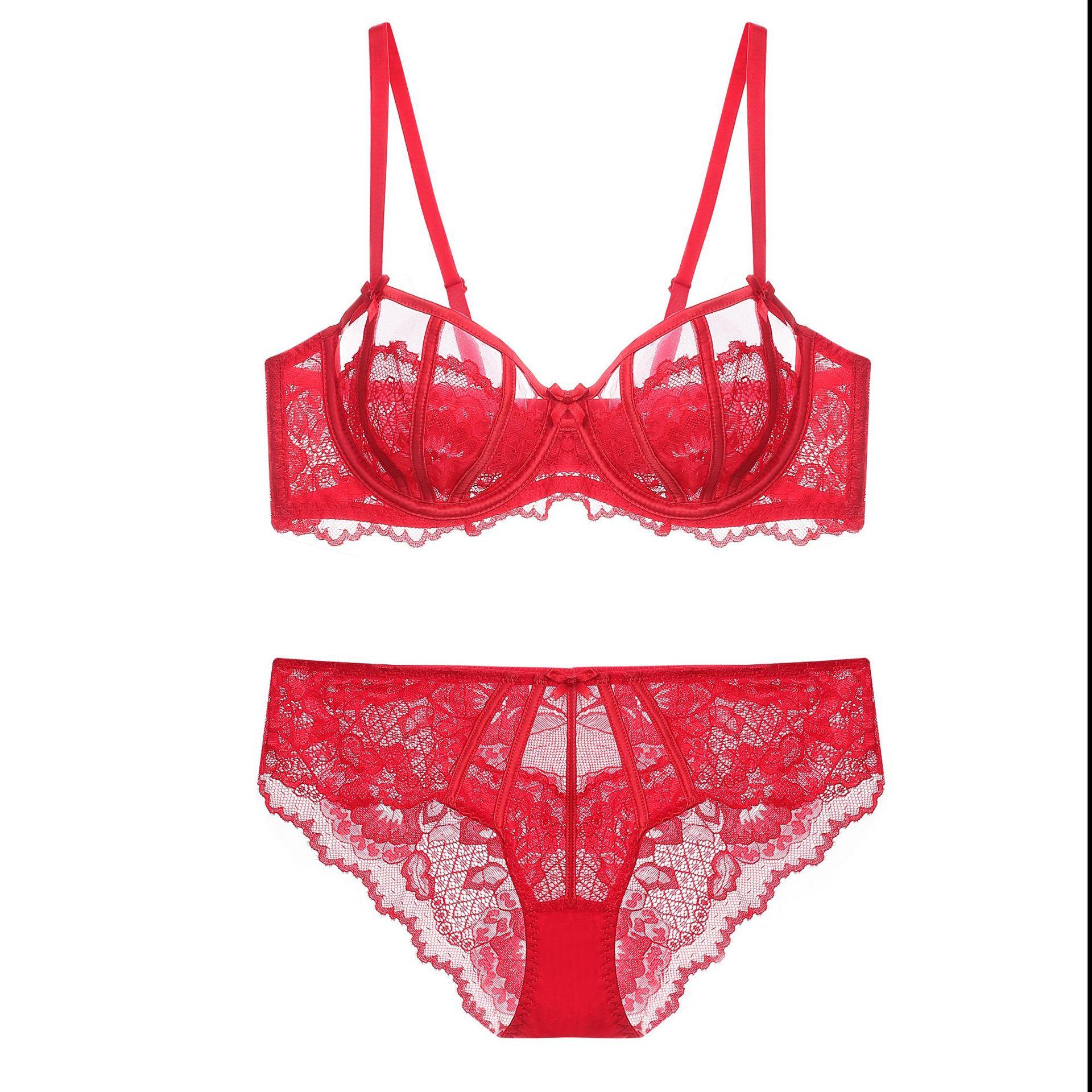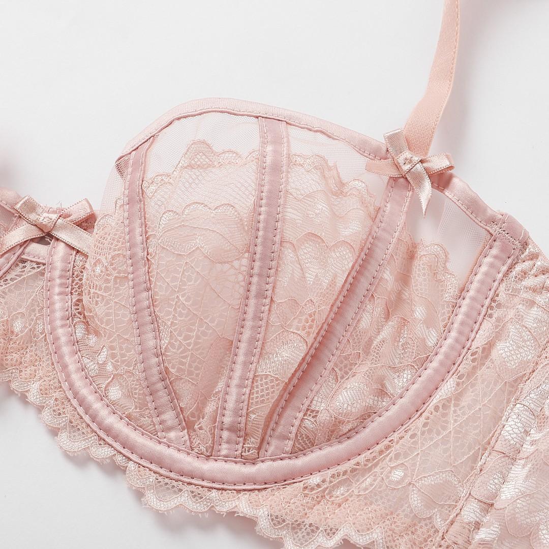 2023 Nuevo Estilo Francés Encaje Lencería Mujer Sexy Ultradelgada Semitransparente Pecho Grande Mostrado Pecho Pequeño Traje de Brasier