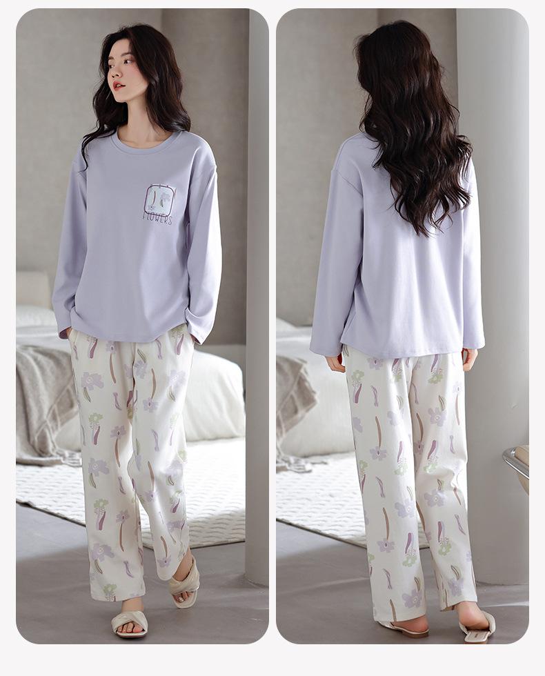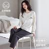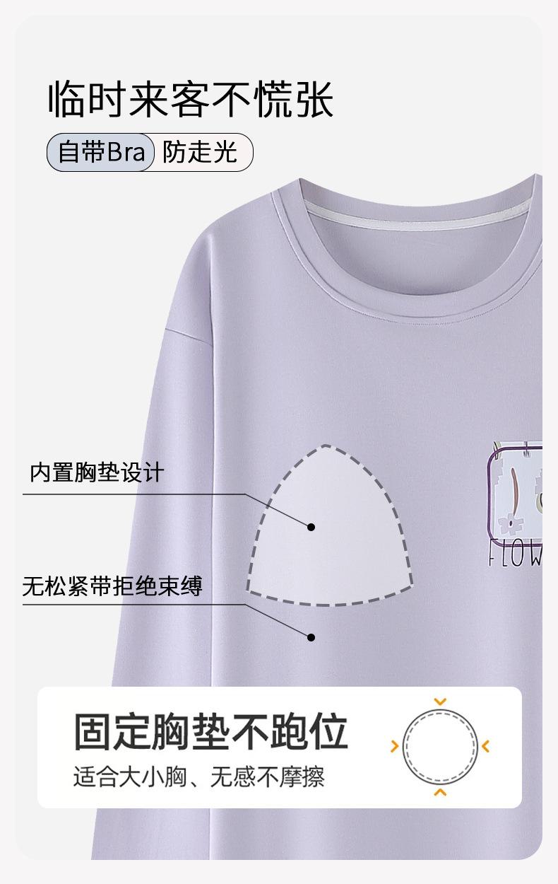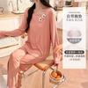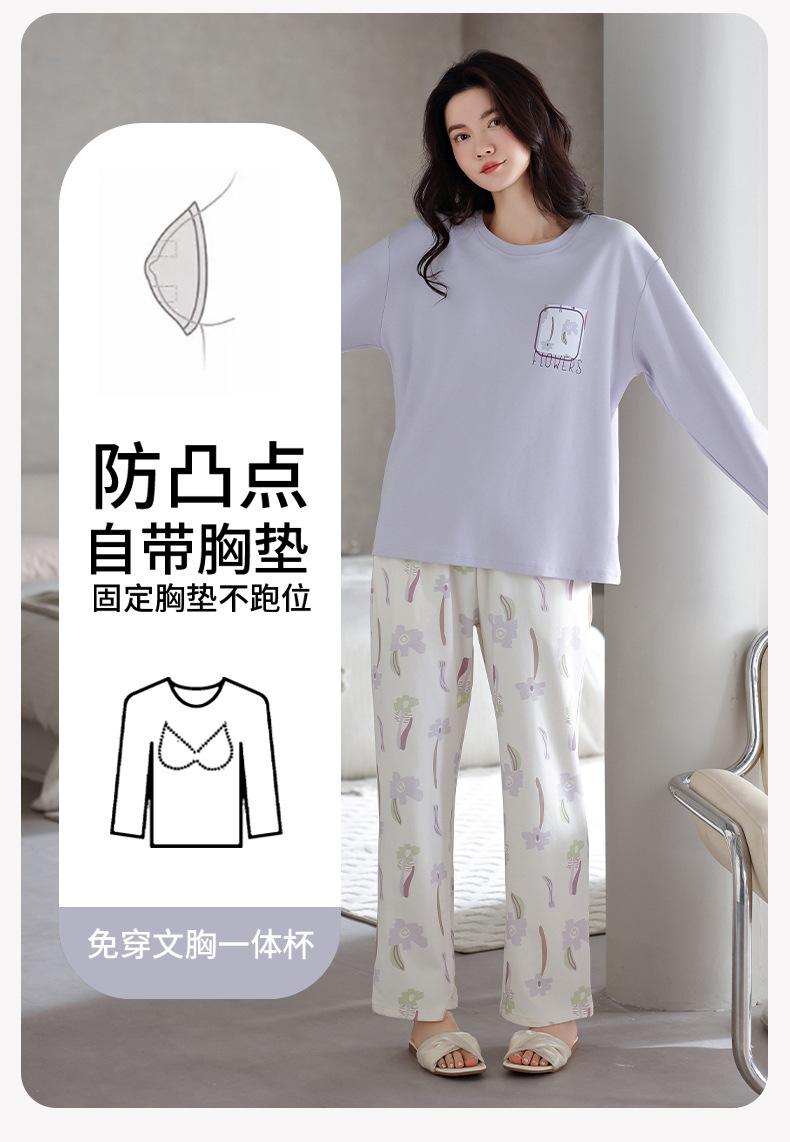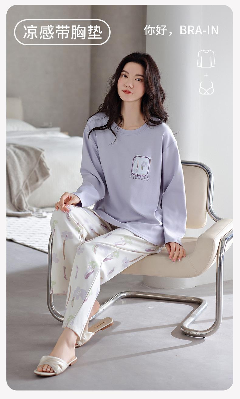 Pijama para Mujer Primavera y Verano Algodón Manga Larga con Almohadilla de Pecho Integrada Ropa de Primavera y Otoño Traje de Ropa Casual para el Hogar para Mujer