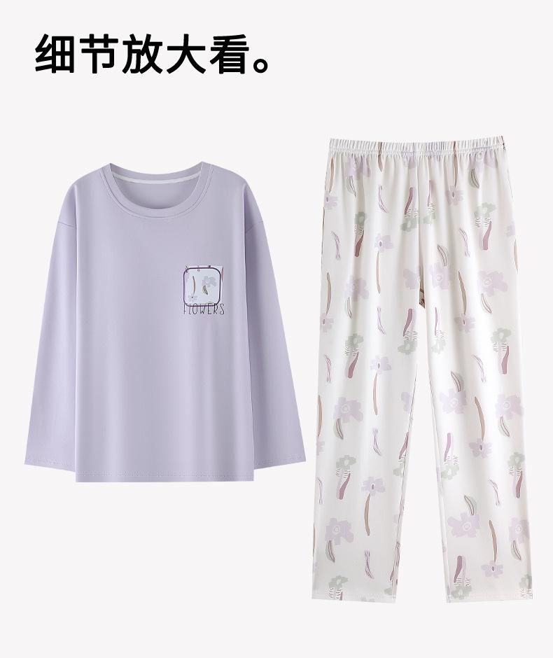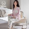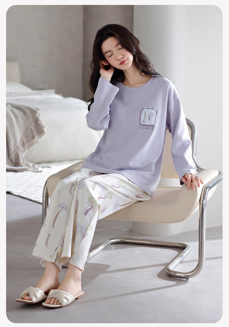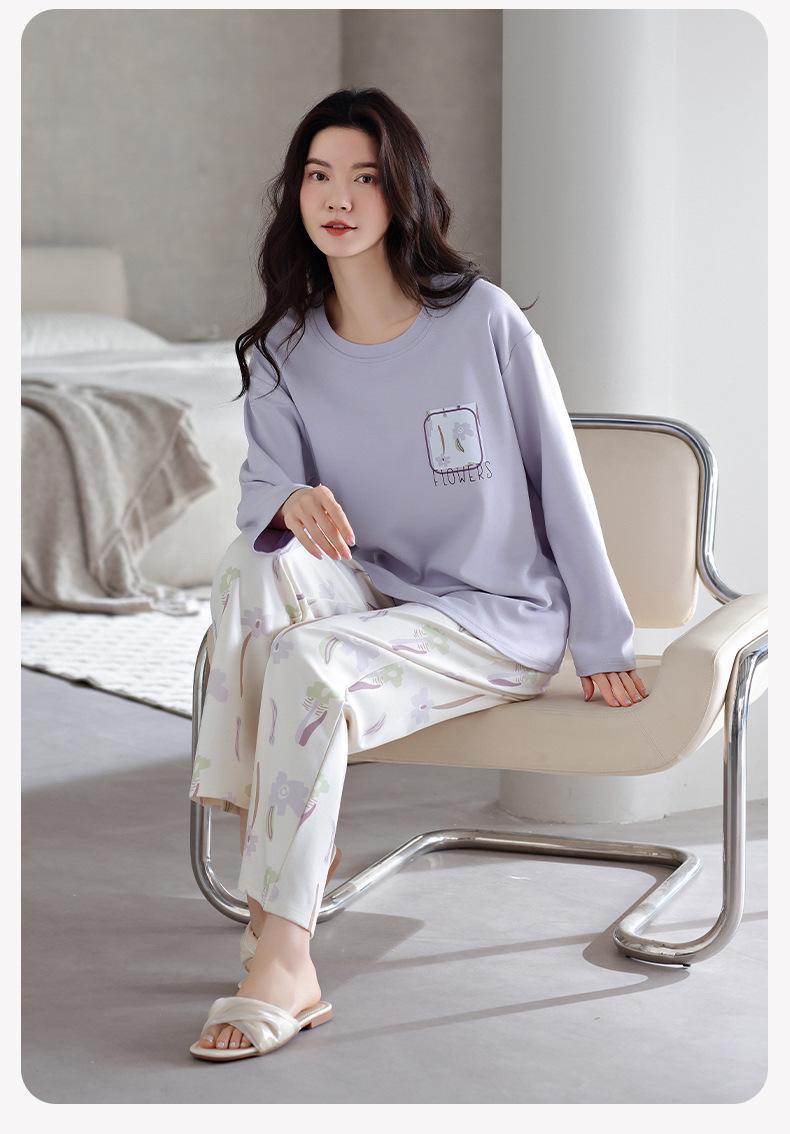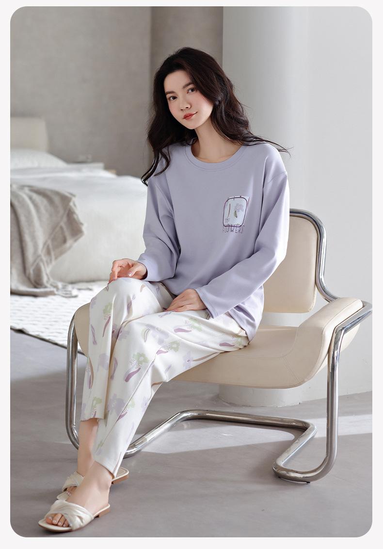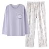 Pijama para Mujer Primavera y Verano Algodón Manga Larga con Almohadilla de Pecho Integrada Ropa de Primavera y Otoño Traje de Ropa Casual para el Hogar para Mujer