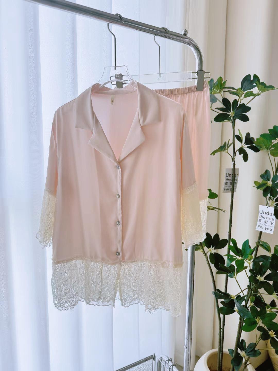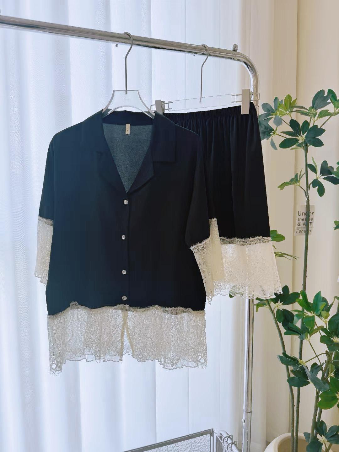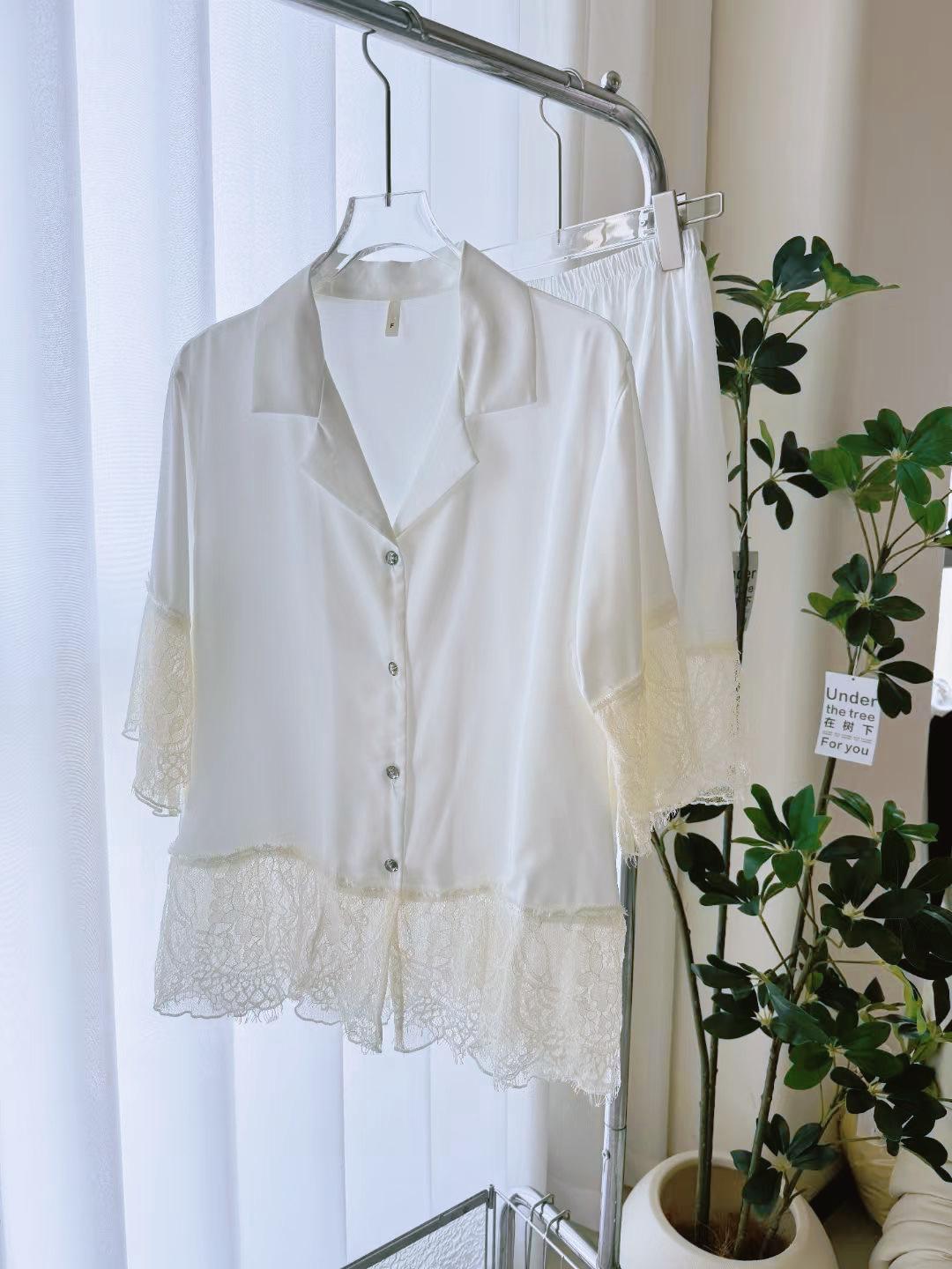 Pijamas franceses para mujer, pantalones cortos de manga corta, estilo princesa dulce, traje de seda helada, pijamas de primavera para niña, ropa para el hogar