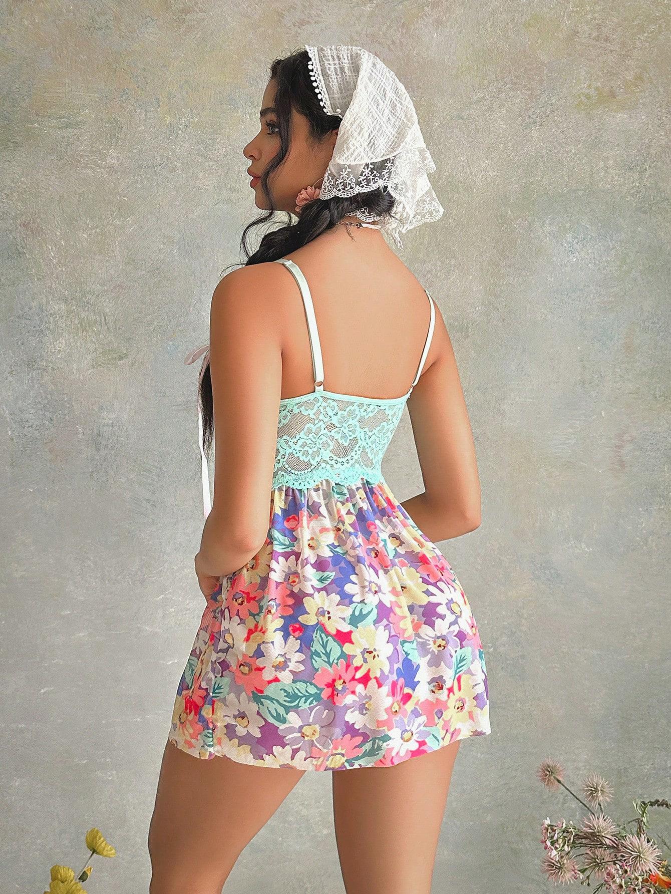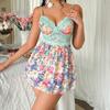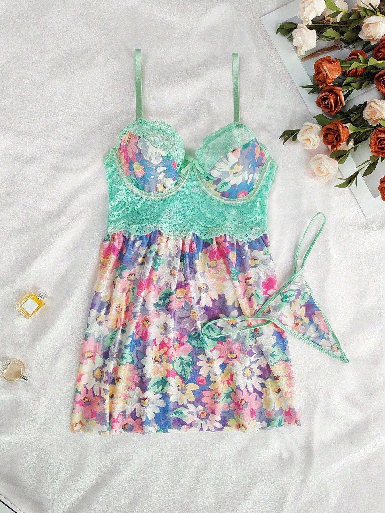 Europa y Estados Unidos comercio exterior transfronterizo traje de lencería sexy encaje perspectiva tentación estampado camisón tanga conjunto de dos piezas