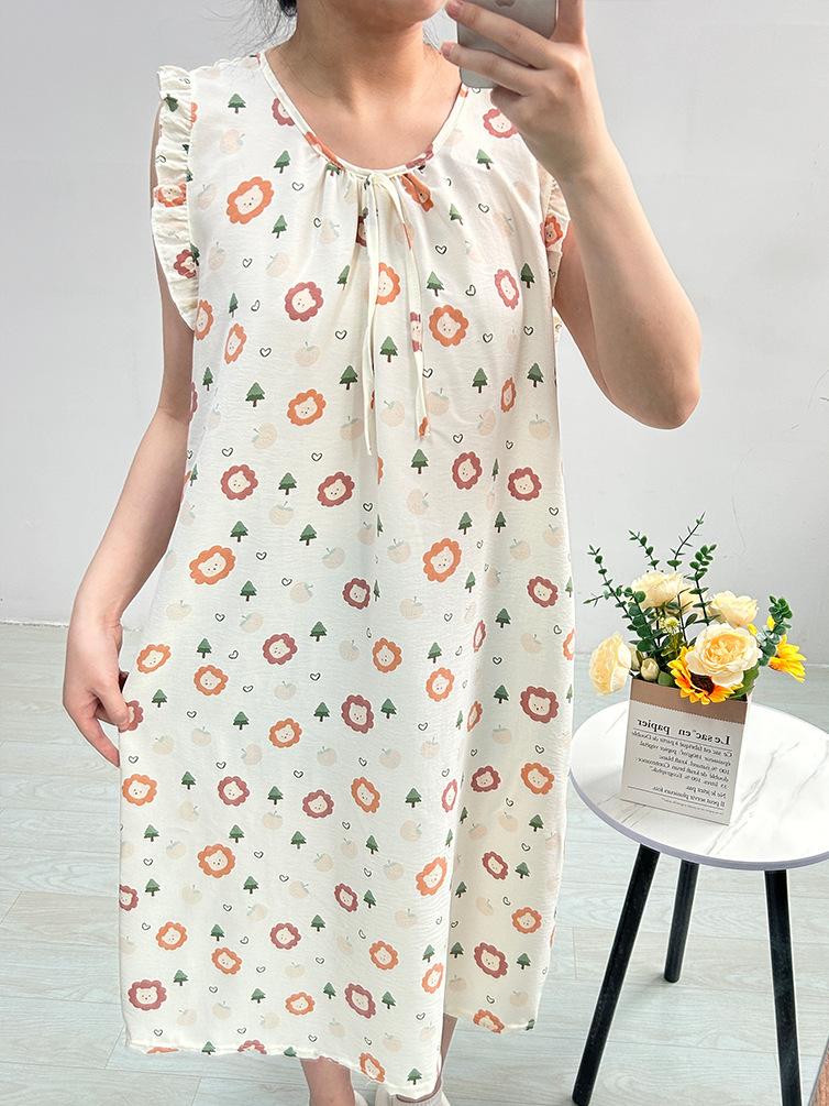 One size fits all qz-(cloud cotton sleeveless floral dress)