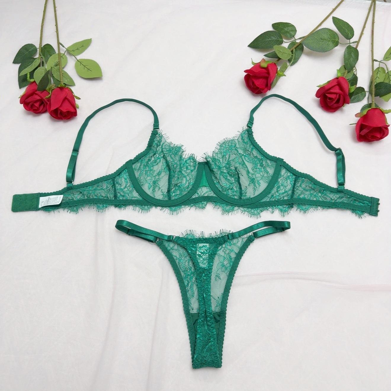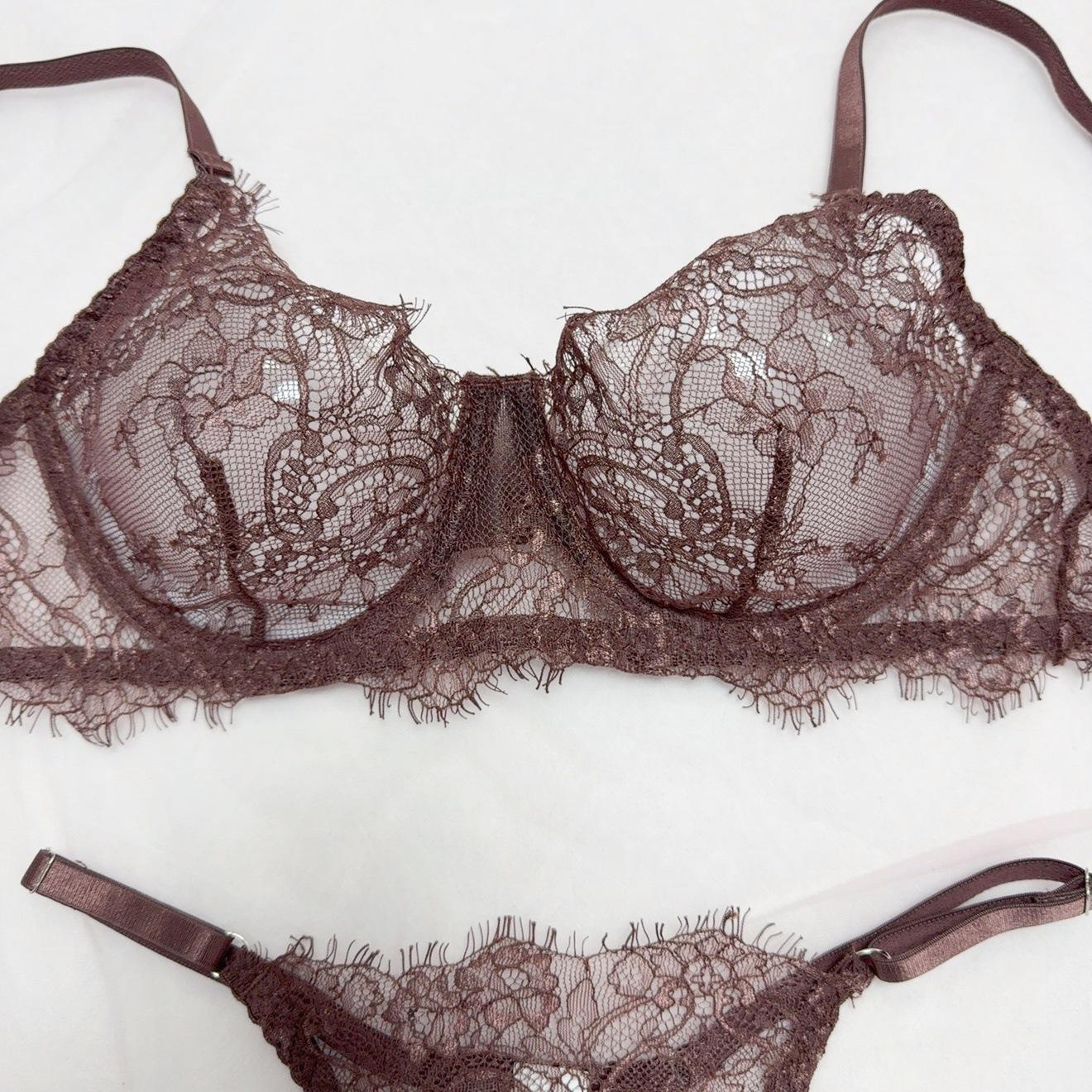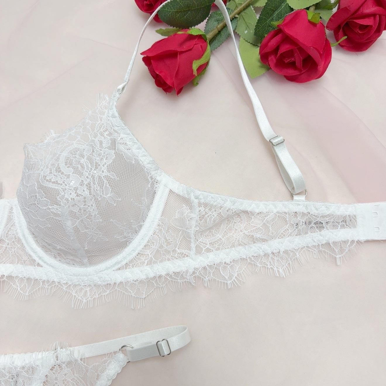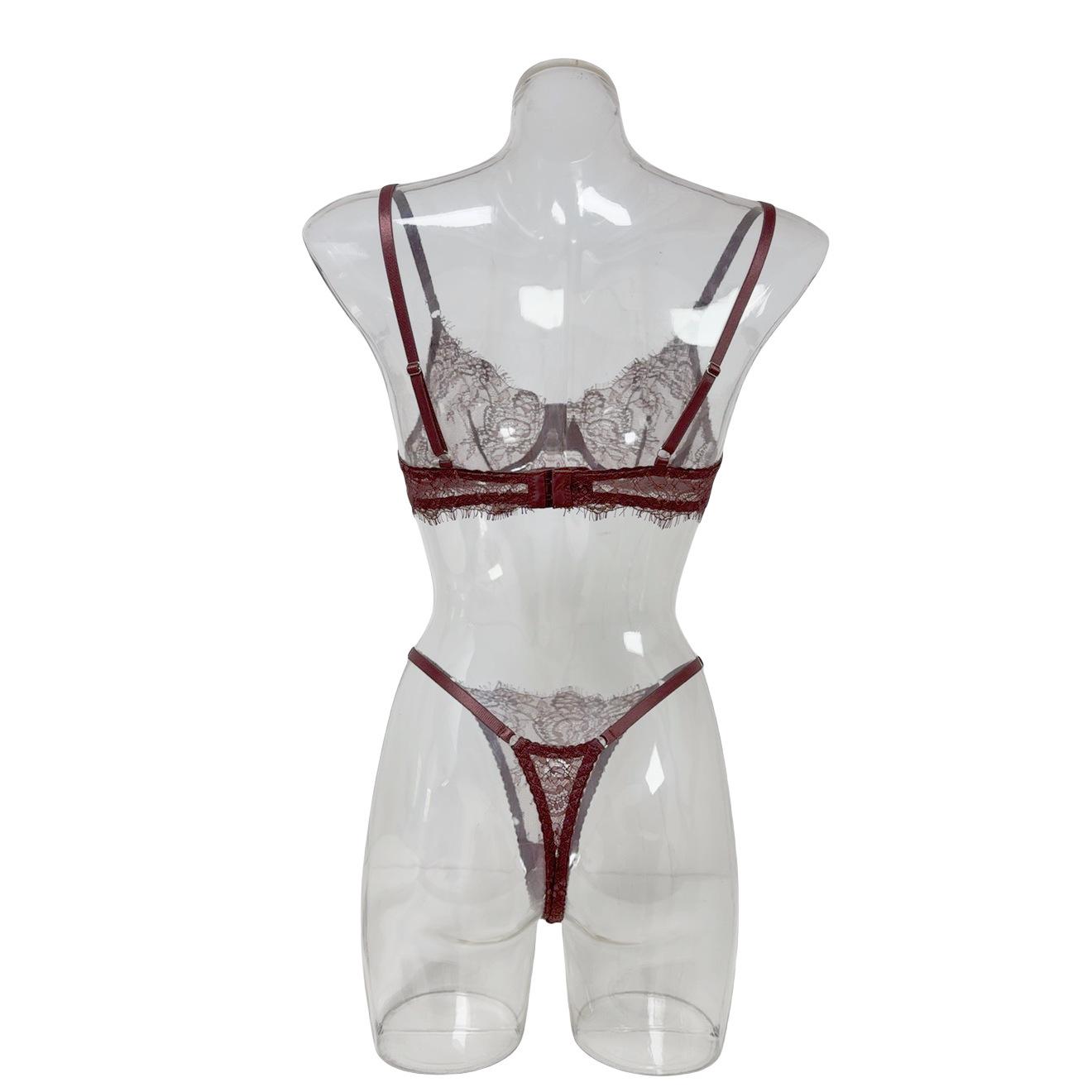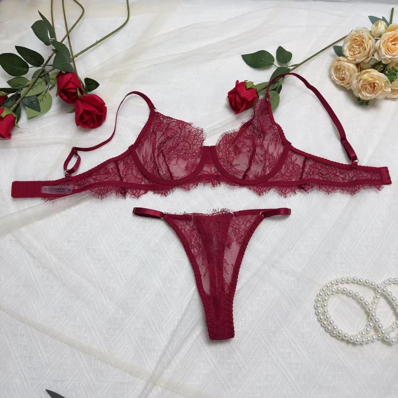 Ropa interior de encaje transfronteriza europea y americana para mujer, sexy, bordada, ultradelgada, transparente, tentación, con aro de acero, conjunto de brasier sexy, venta al por mayor