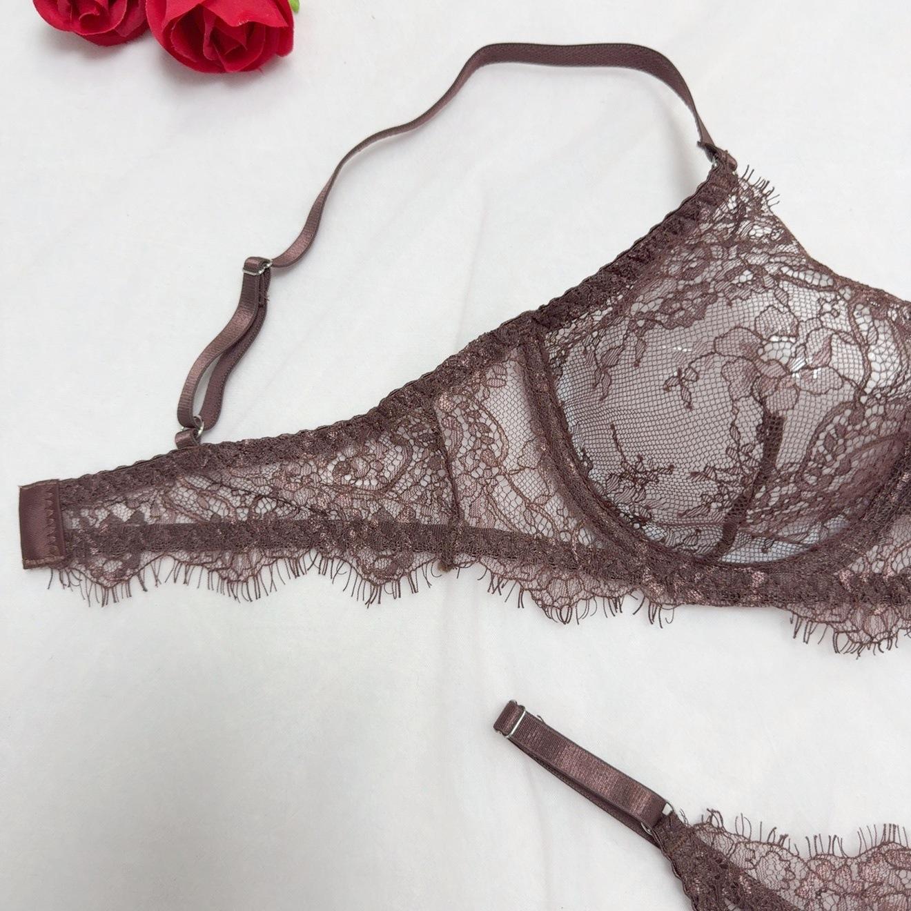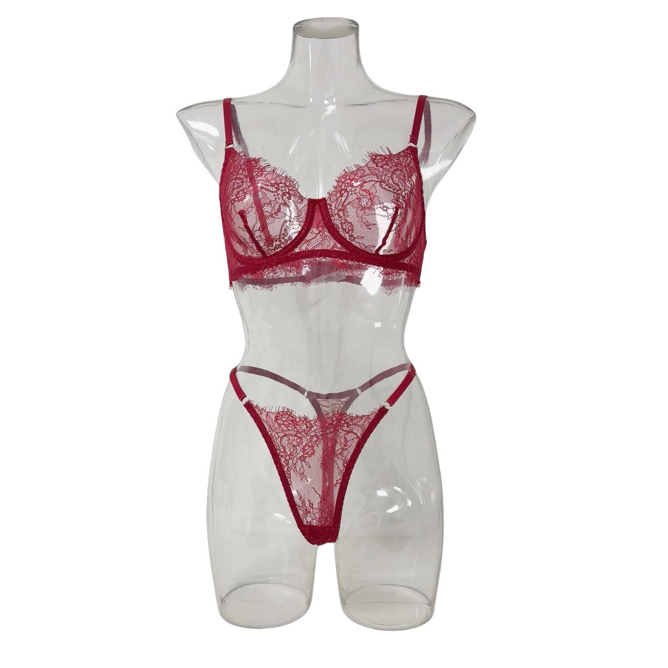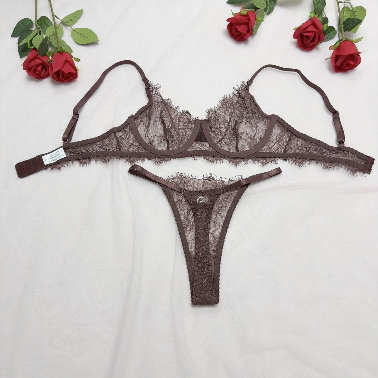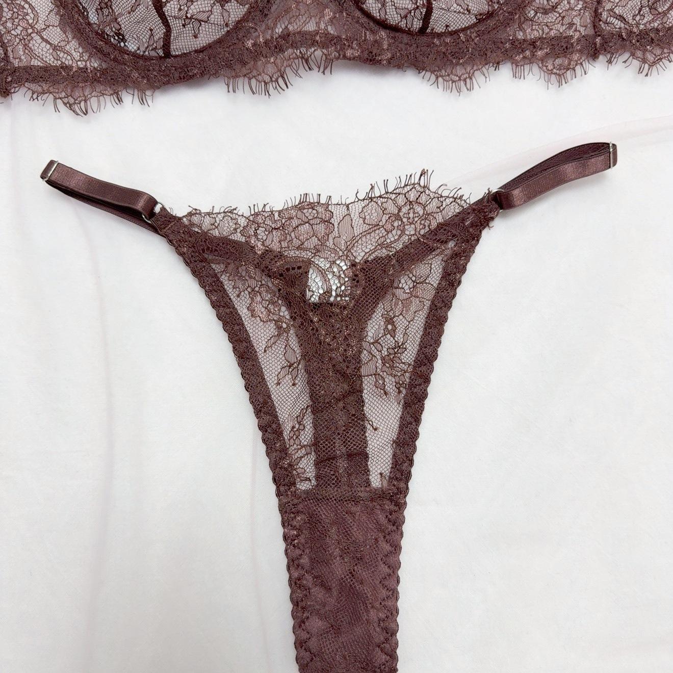 Ropa interior de encaje transfronteriza europea y americana para mujer, sexy, bordada, ultradelgada, transparente, tentación, con aro de acero, conjunto de brasier sexy, venta al por mayor
