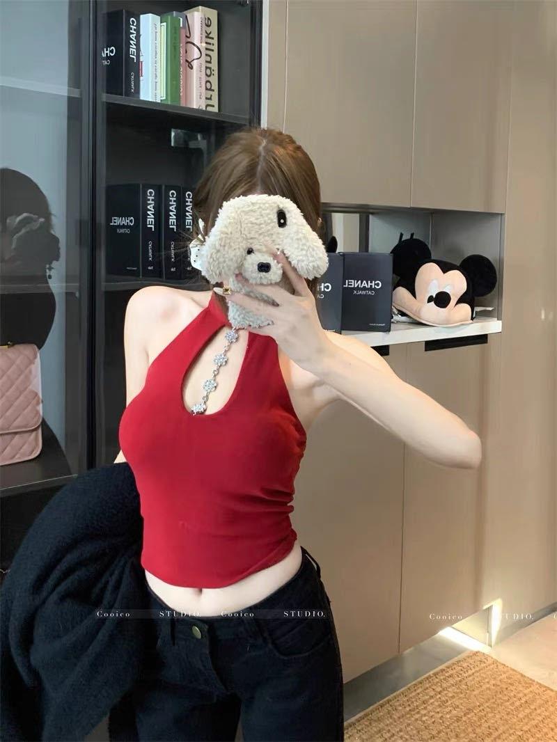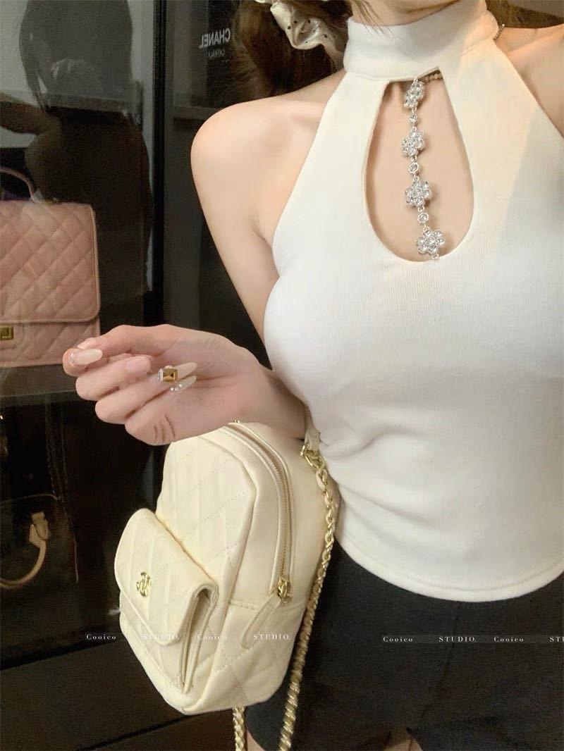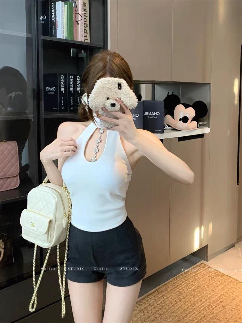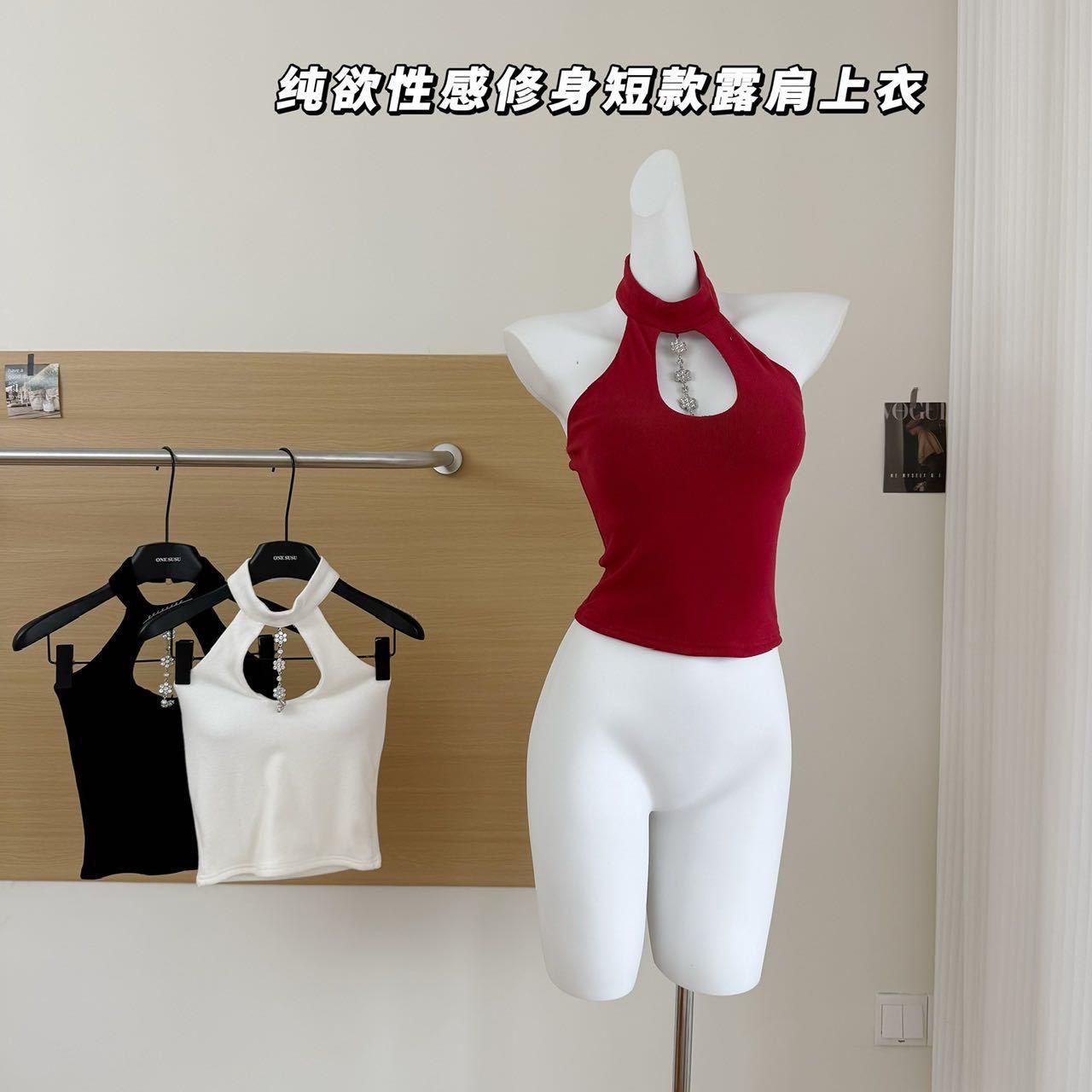 850 Rayón Estilo Deseo Puro Camisola Halter para Mujer Hermoso Top Tubo de Espalda Corto Ropa Exterior para Fondo Sexy Dulce
