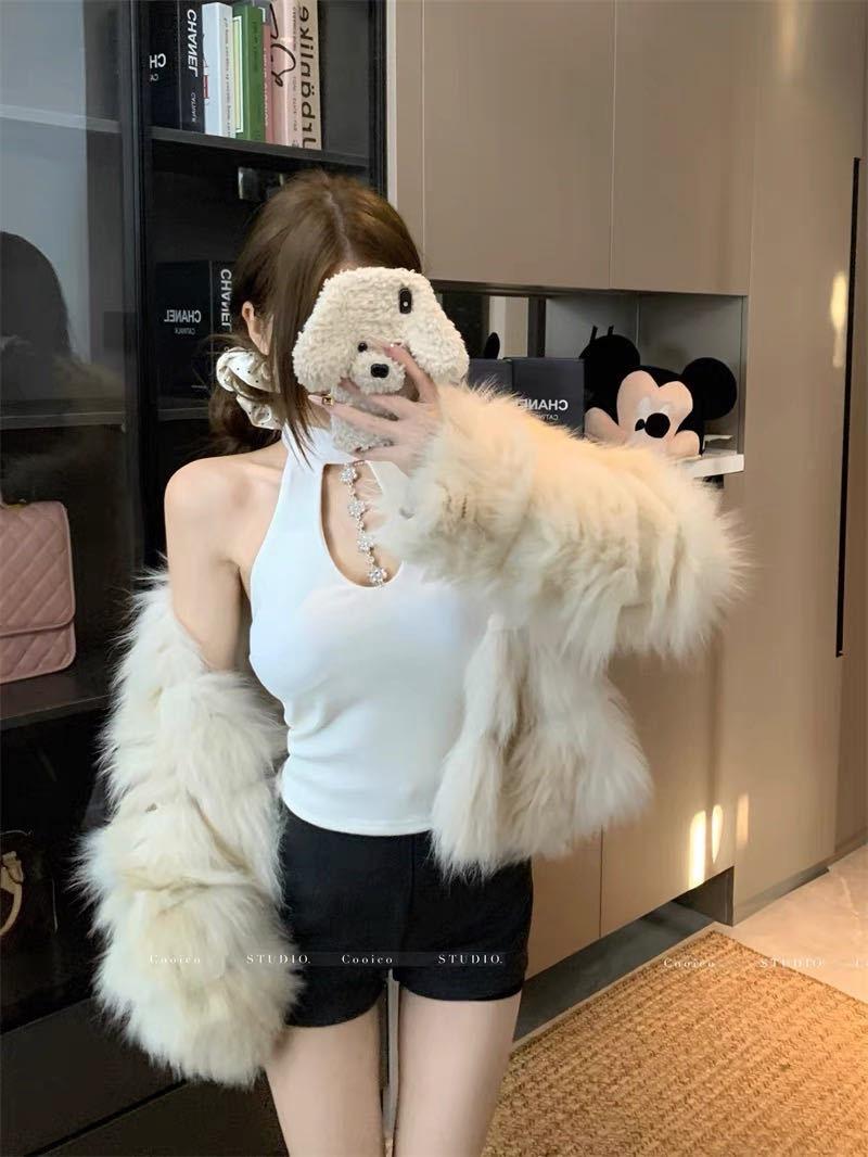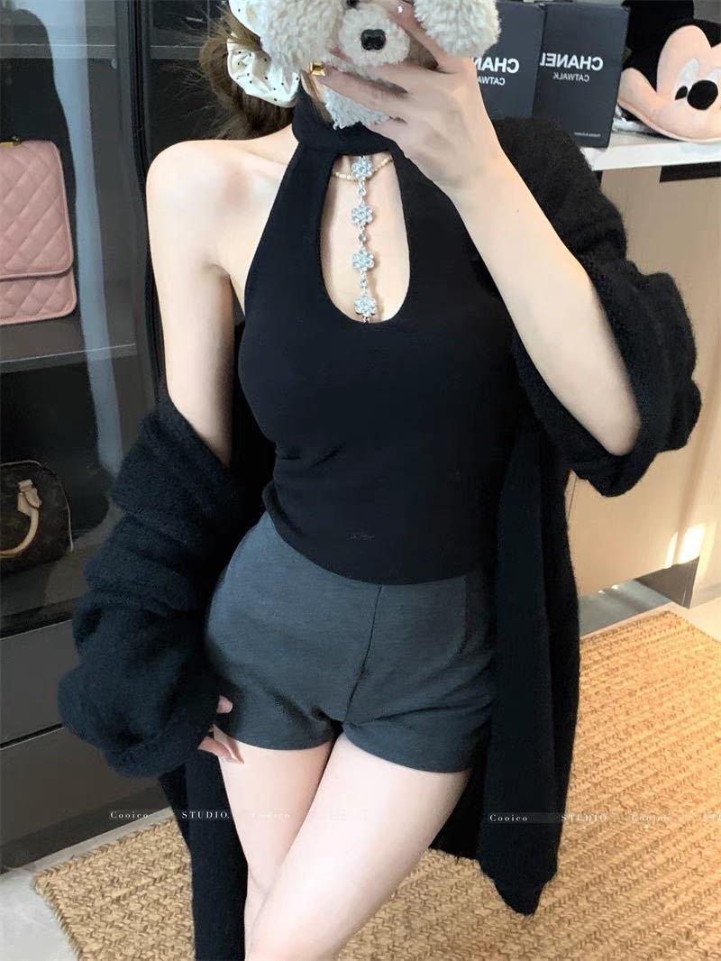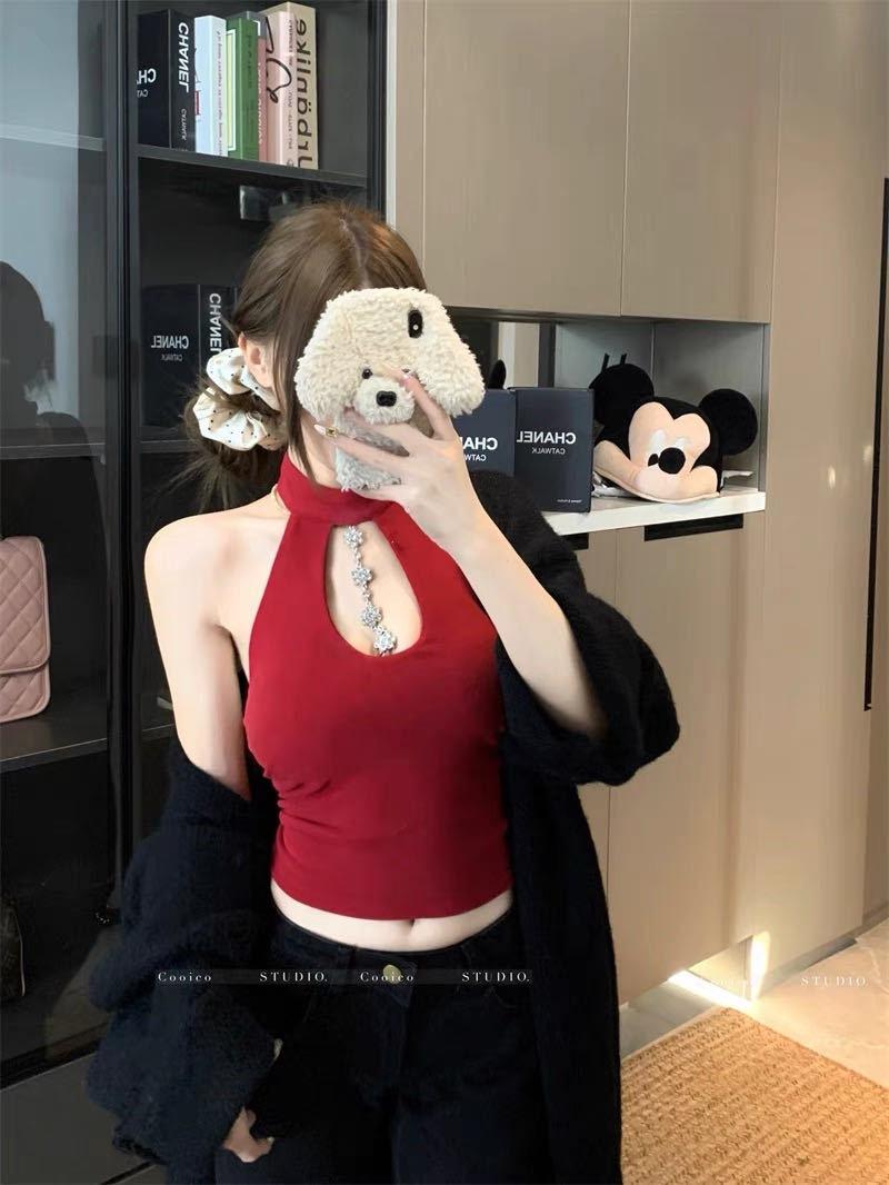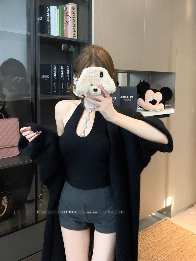 850 Rayón Estilo Deseo Puro Camisola Halter para Mujer Hermoso Top Tubo de Espalda Corto Ropa Exterior para Fondo Sexy Dulce
