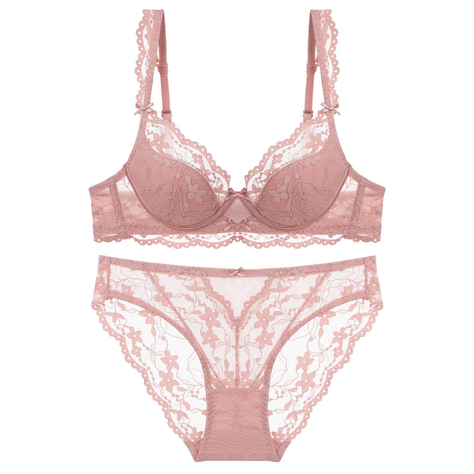 Nueva Ropa Interior Sexy de Encaje Deseo Puro Delgada Suave Aro de Acero Ropa Interior Francesa Set de Brasier Push-Up para Busto Pequeño