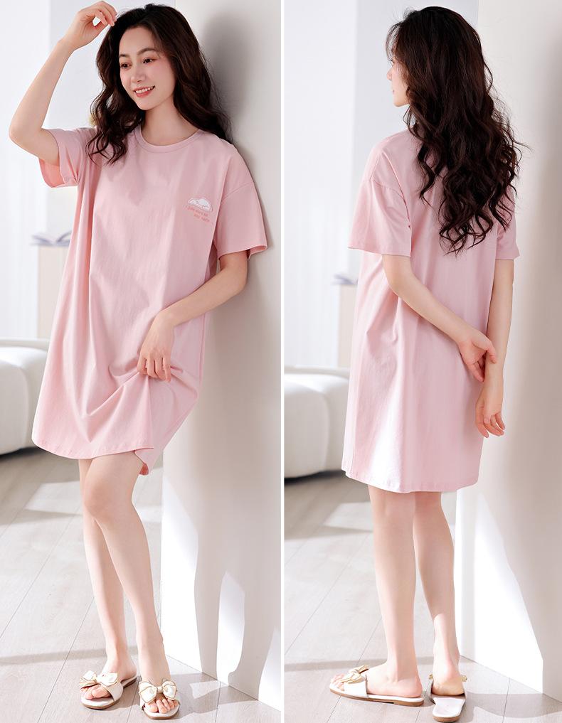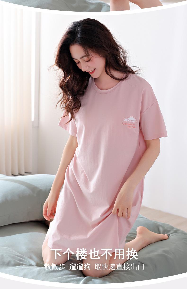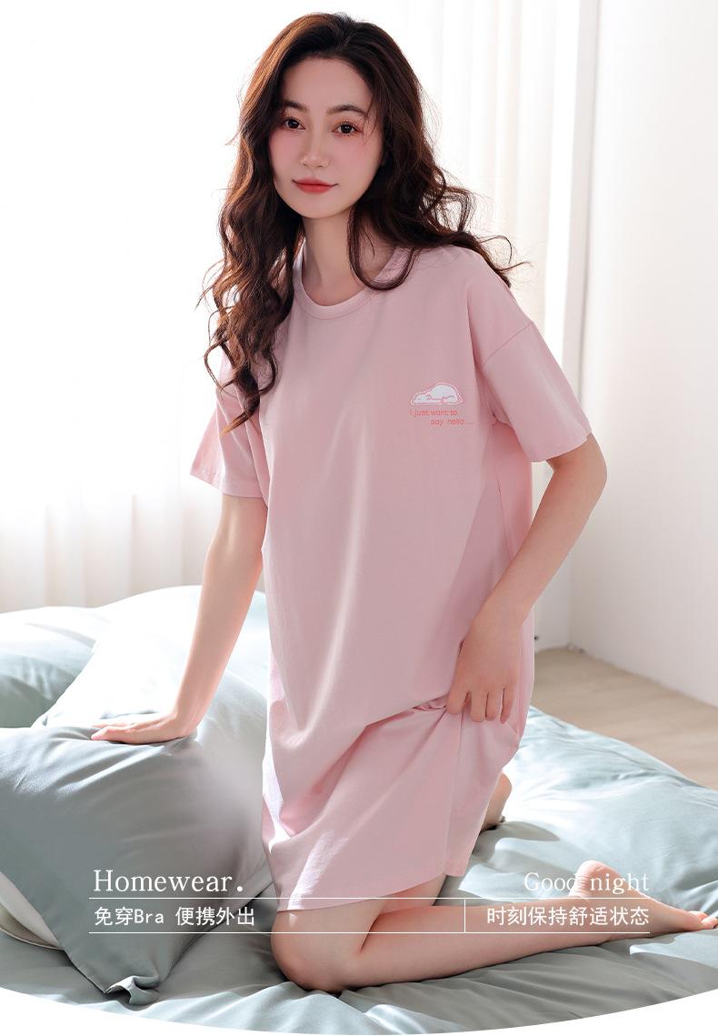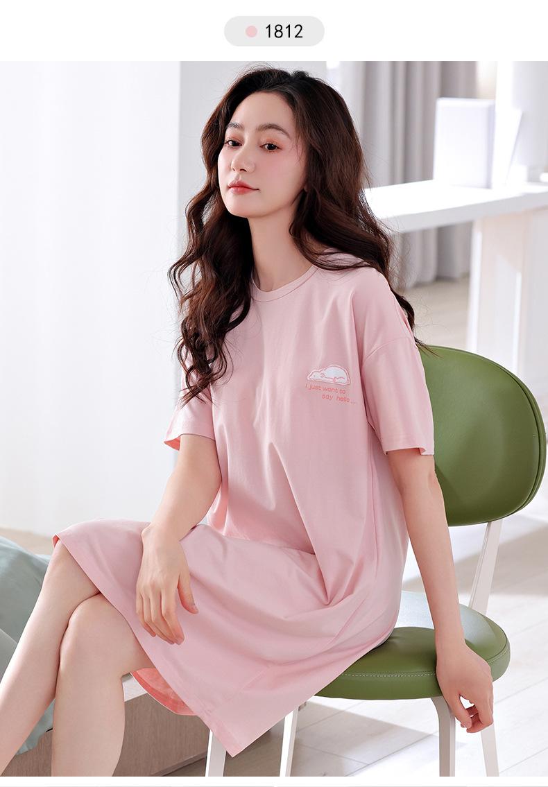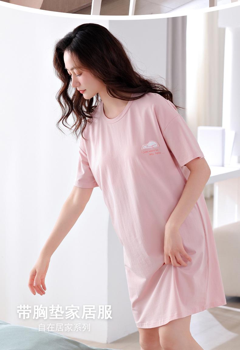 Camisón de Verano de Algodón Puro con Almohadillas para el Busto, Camisón de Manga Corta y Largo Medio para Mujer, Delgado, Cómodo y Sencillo para Estar en Casa que se Puede Usar Afuera