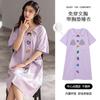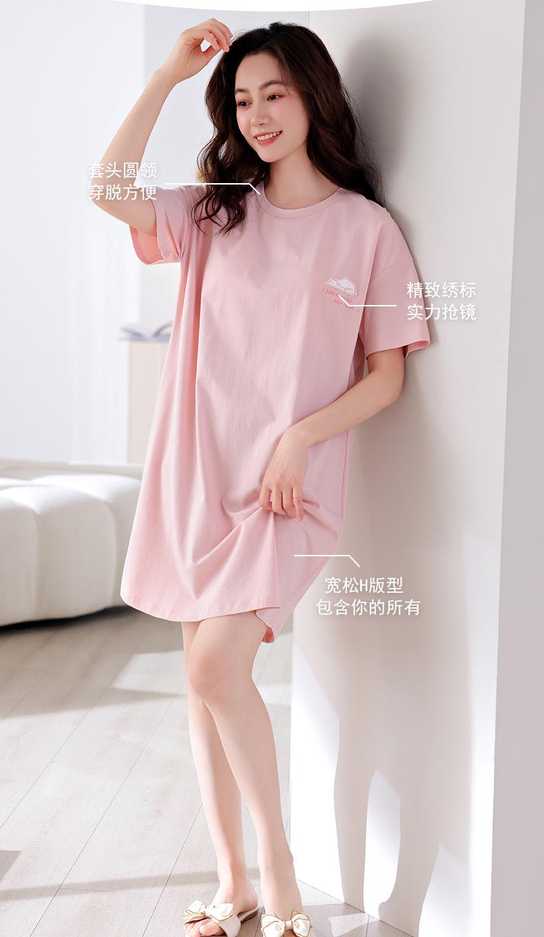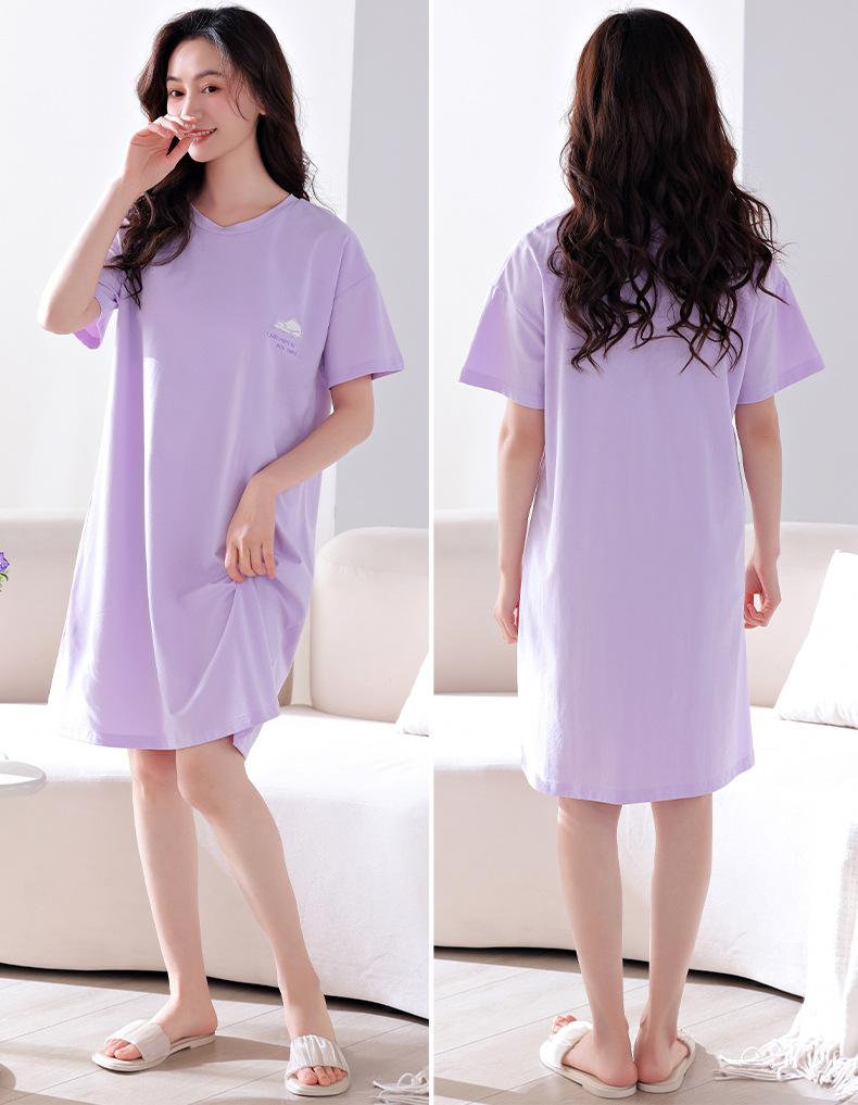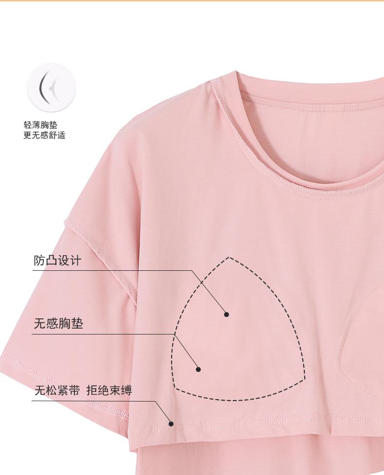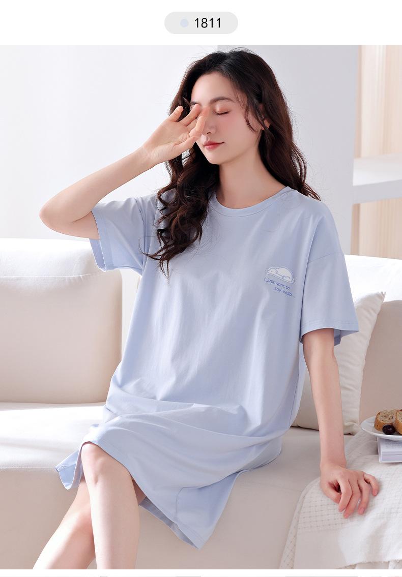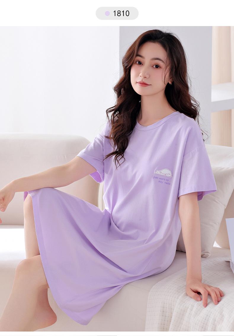Camisón de Verano de Algodón Puro con Almohadillas para el Busto, Camisón de Manga Corta y Largo Medio para Mujer, Delgado, Cómodo y Sencillo para Estar en Casa que se Puede Usar Afuera