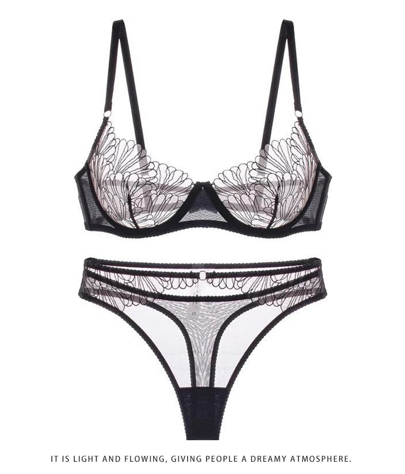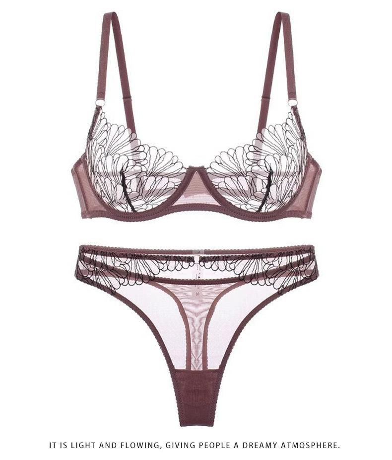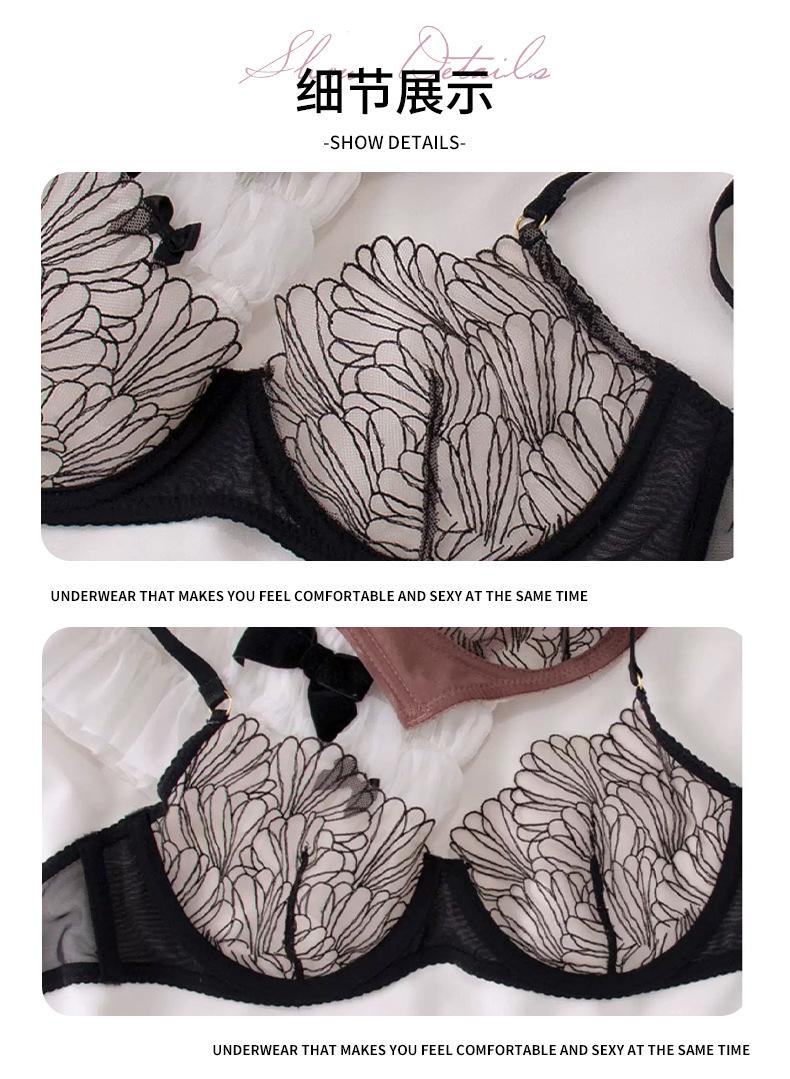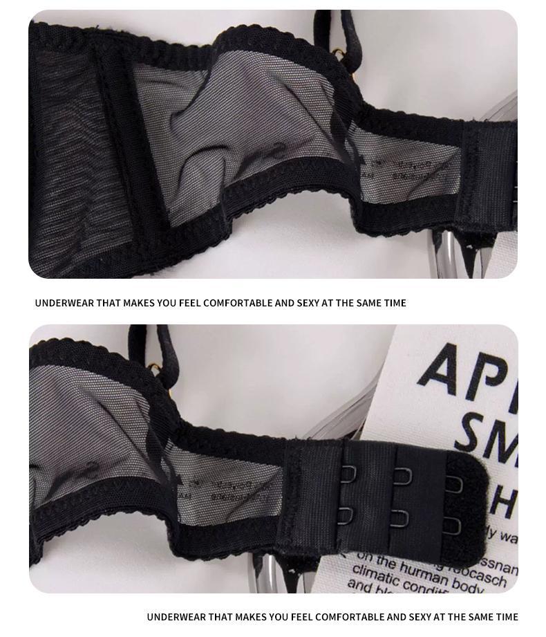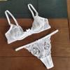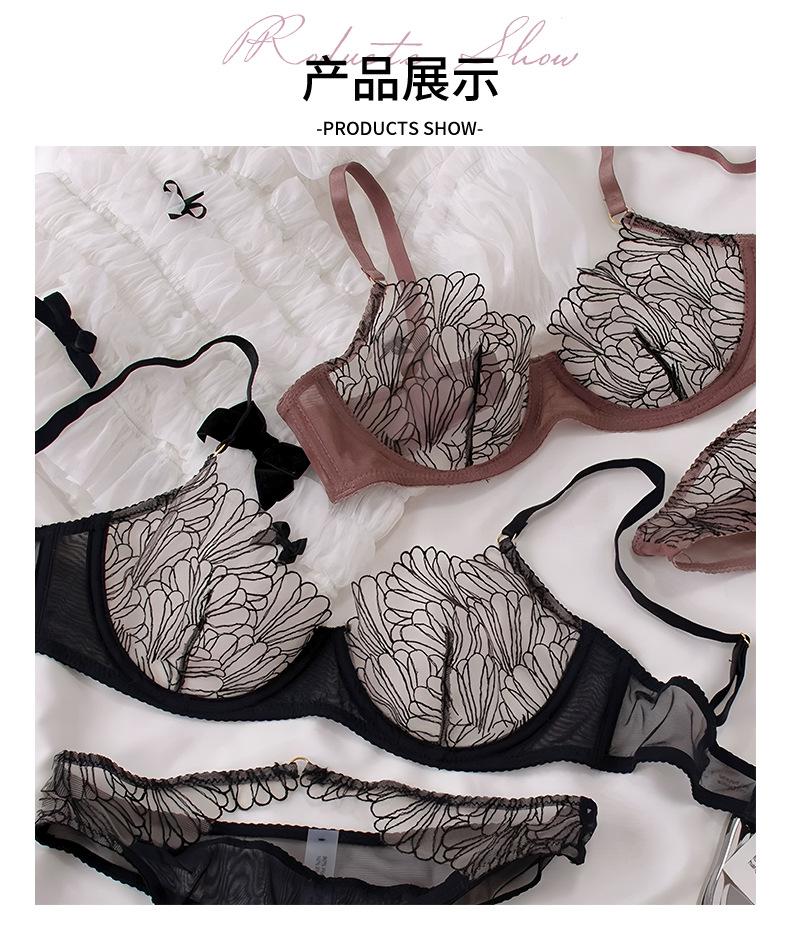 Lencería Sexy Francesa Europea y Americana, Malla Femenina, Ultrafina Transparente para Busto Grande, Conjunto de Brasier de Encaje Anticaída