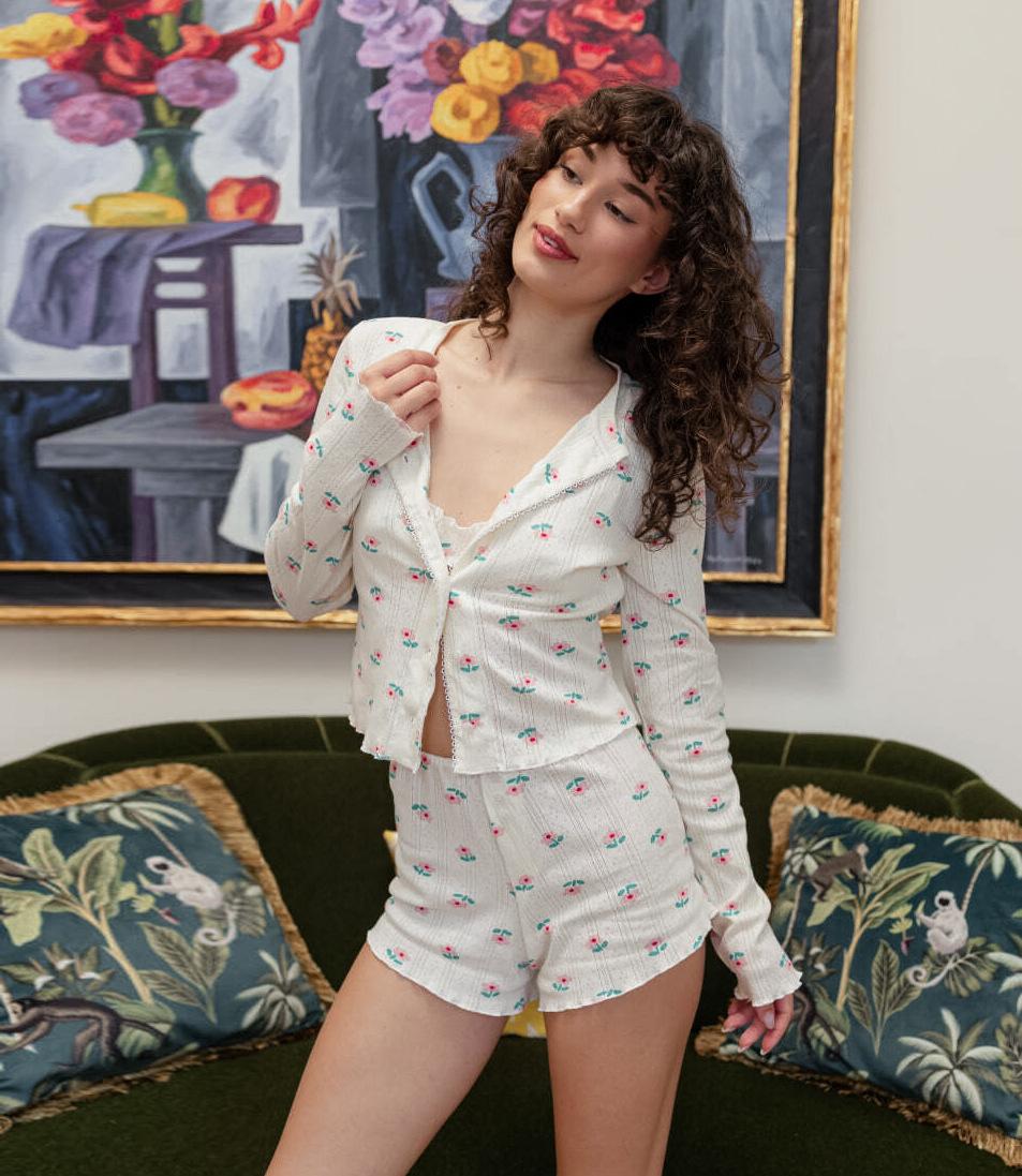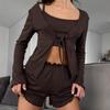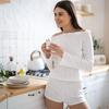 2025 tejido jacquard manga larga shorts encaje pijama cómodo dos piezas verano transfronterizo mayoreo ropa nueva para el hogar