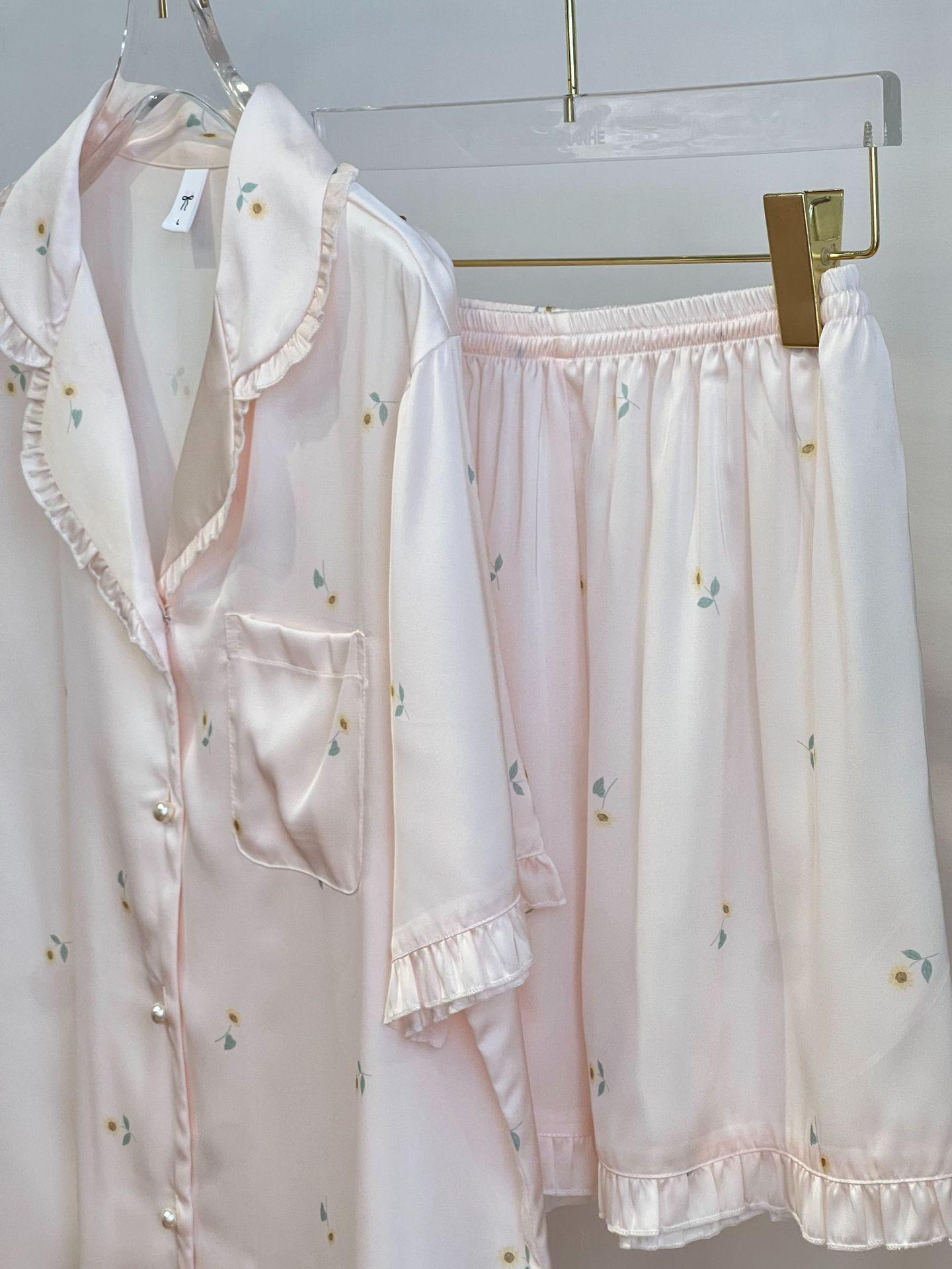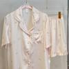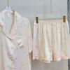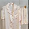 Pijama de Seda de Hielo 2025 para Mujer Verano Delgada Foto Real Seda de Hielo Rosa Alta Calidad Ropa para el Hogar Conjunto de Pantalones Cortos de Manga Corta