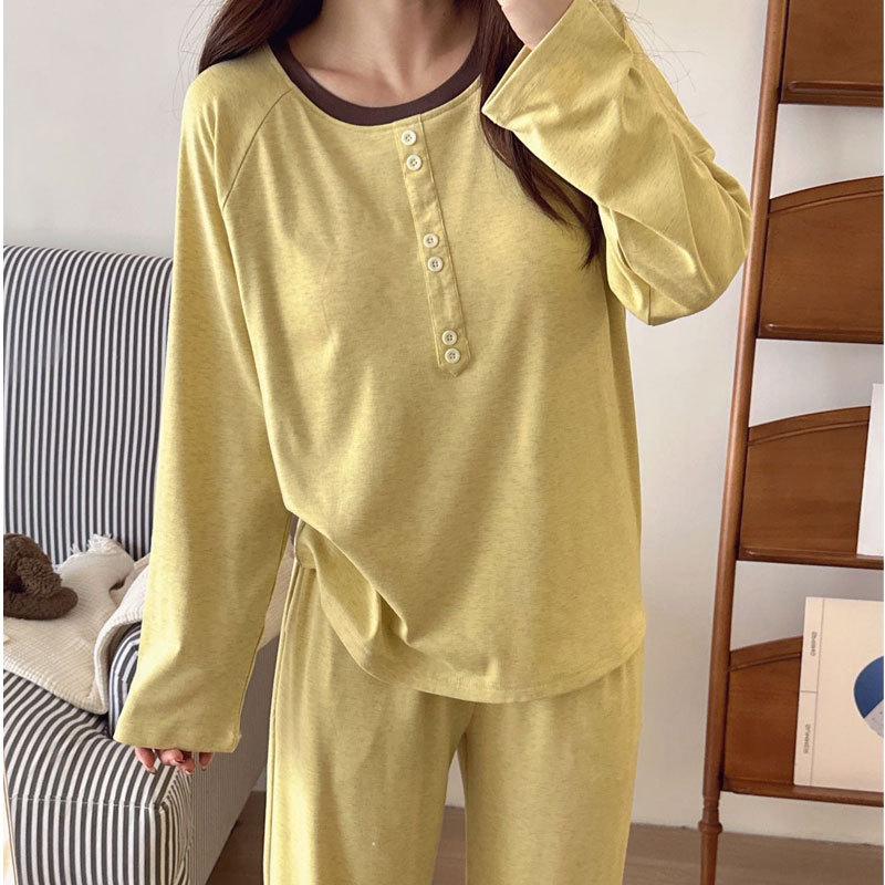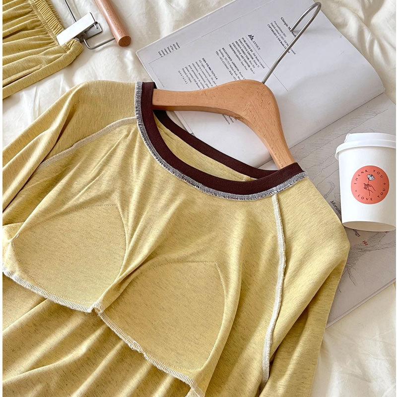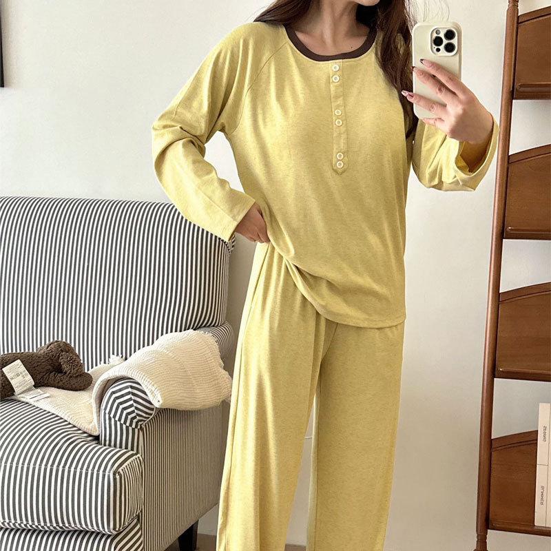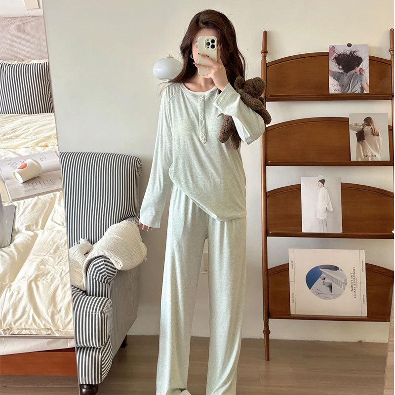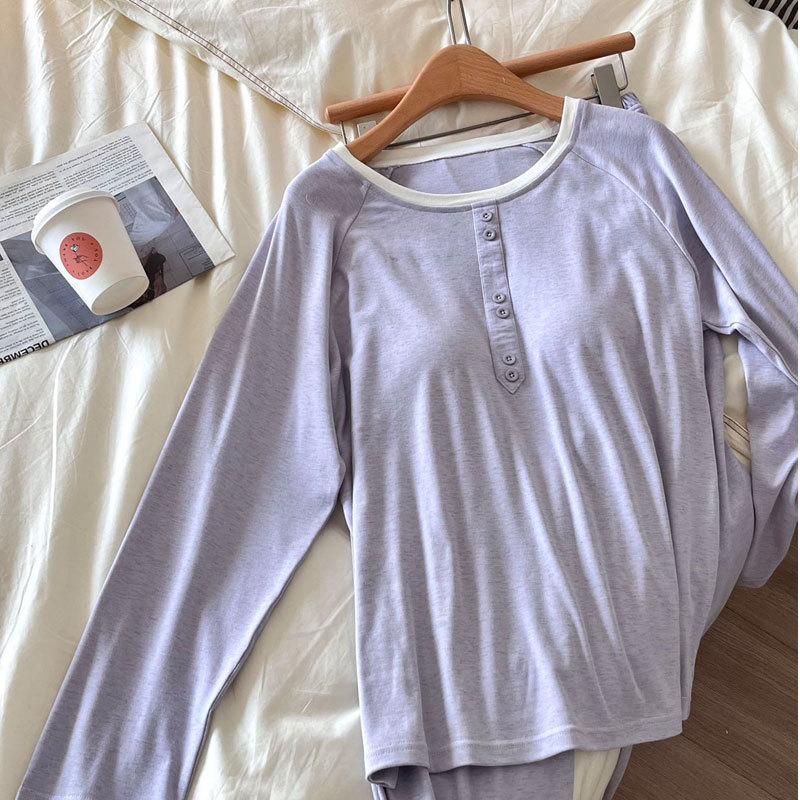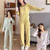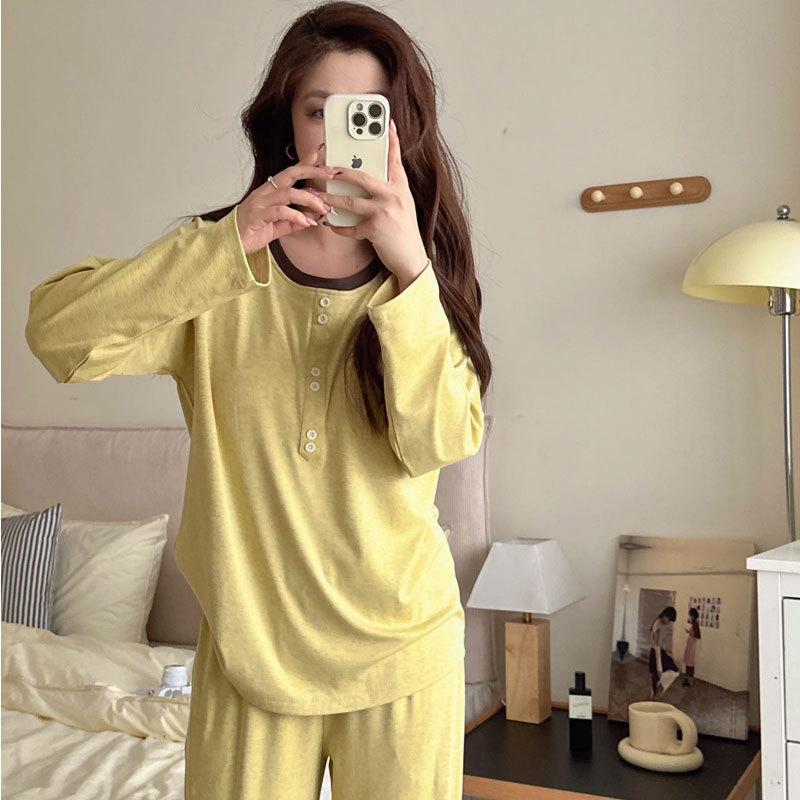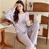 Pijama Nuevo de Primavera y Otoño con Almohadilla en el Pecho para Mujer de Manga Larga Casual de Dos Piezas Ropa para el Hogar para Exterior Jersey de Cuello Redondo