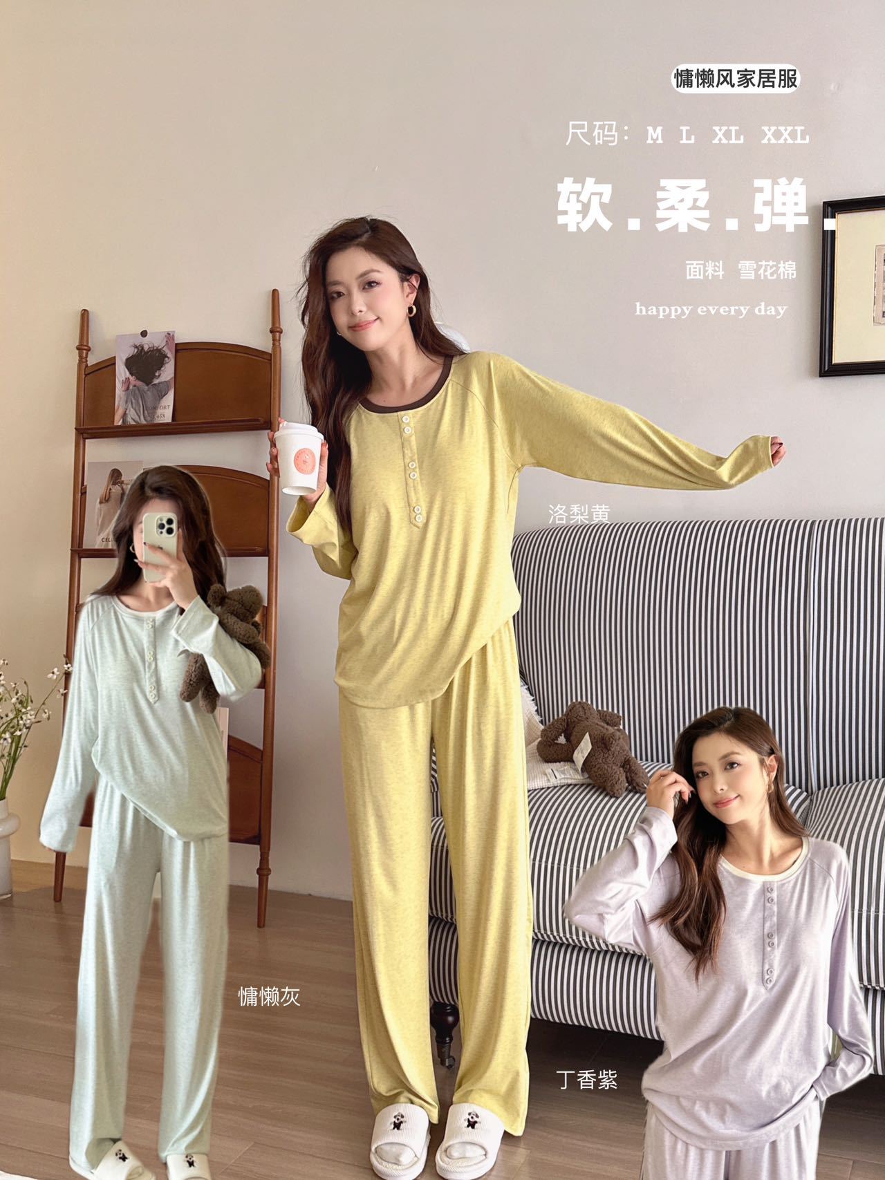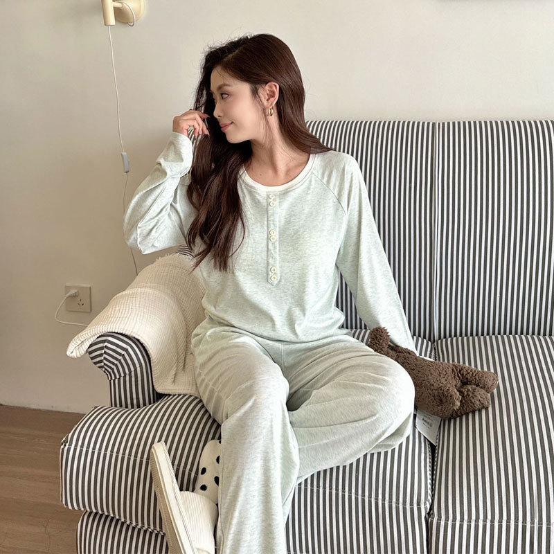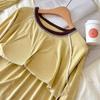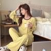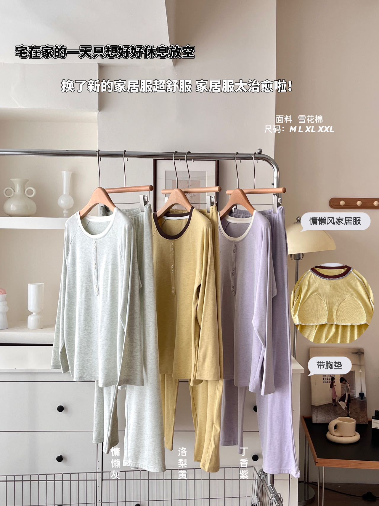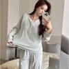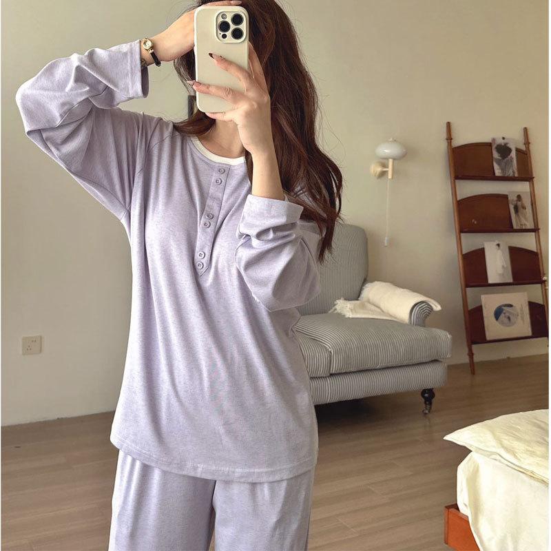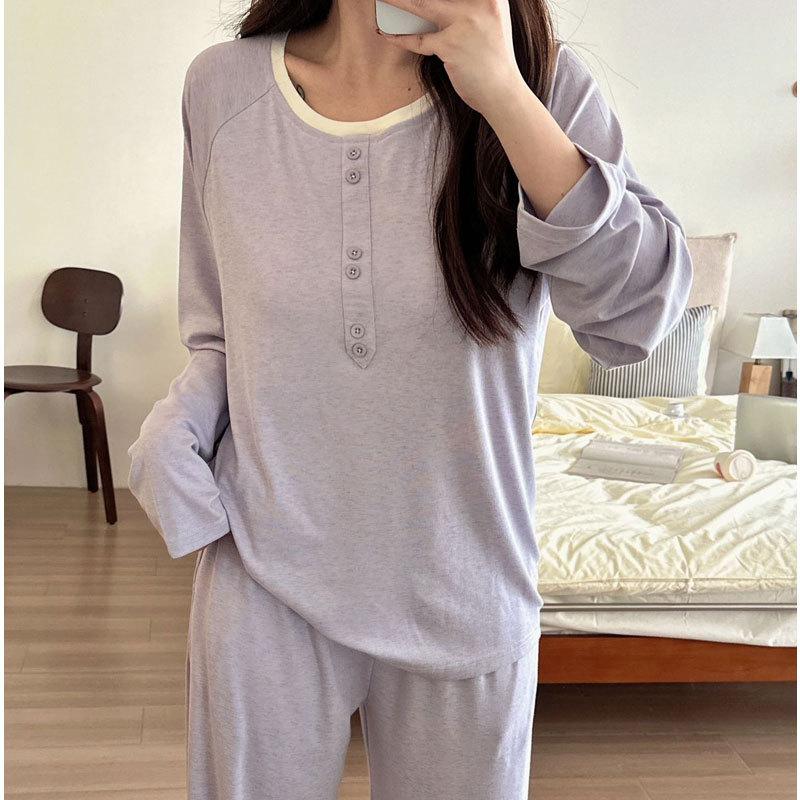 Pijama Nuevo de Primavera y Otoño con Almohadilla en el Pecho para Mujer de Manga Larga Casual de Dos Piezas Ropa para el Hogar para Exterior Jersey de Cuello Redondo