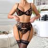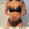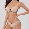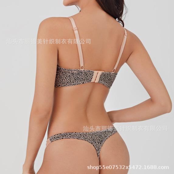 Conjunto de sujetador de leopardo sexy al por mayor transfronterizo de comercio exterior europeo y americano, conjunto de sujetador ajustable de encaje con aro de acero estampado