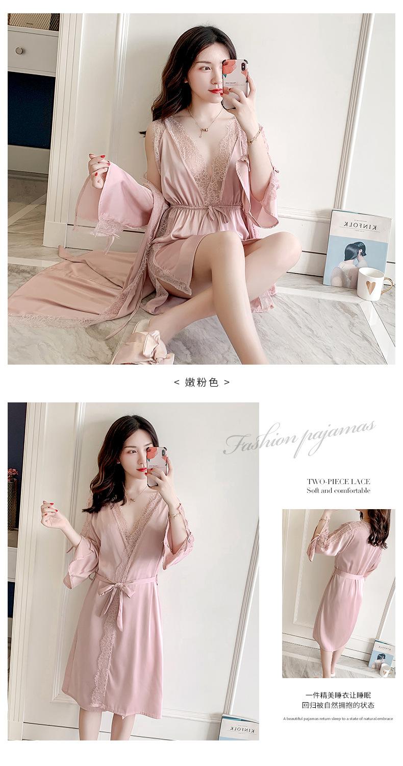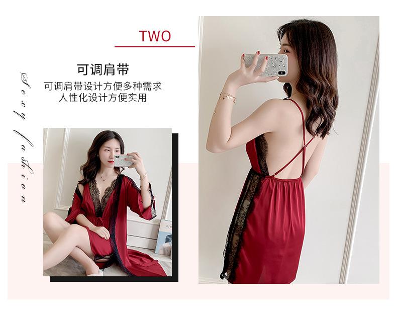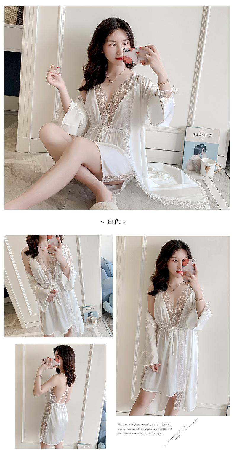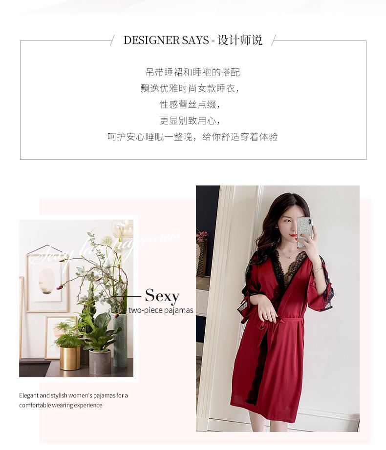 Primavera y Verano Nuevo Camisón Sexy de Tirantes de Dos Piezas Satén Gasa Ropa para el Hogar Cómodo Transpirable Delgado Pijama para Mujer