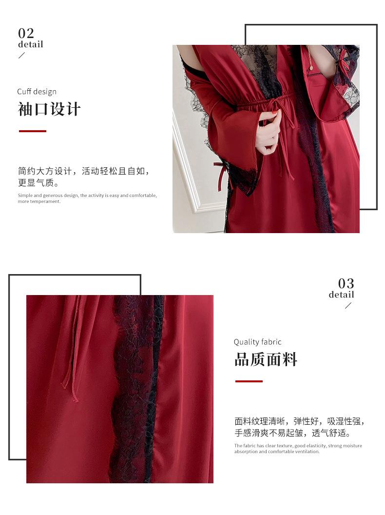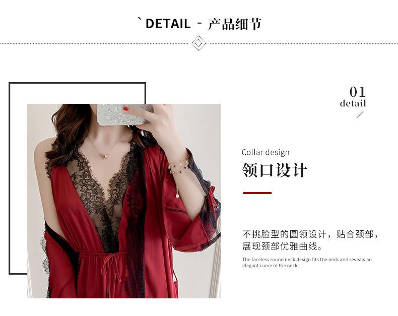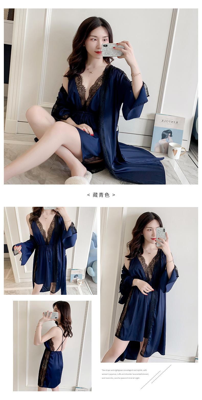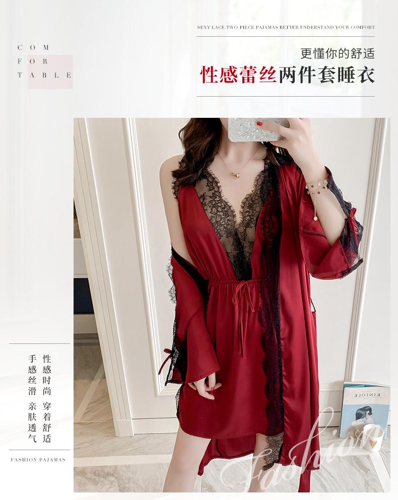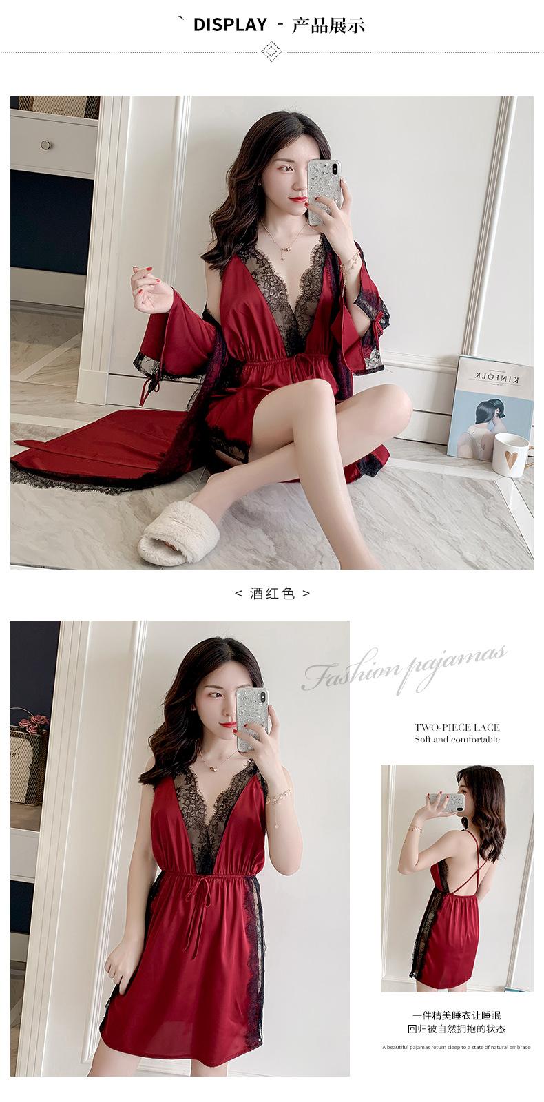 Primavera y Verano Nuevo Camisón Sexy de Tirantes de Dos Piezas Satén Gasa Ropa para el Hogar Cómodo Transpirable Delgado Pijama para Mujer